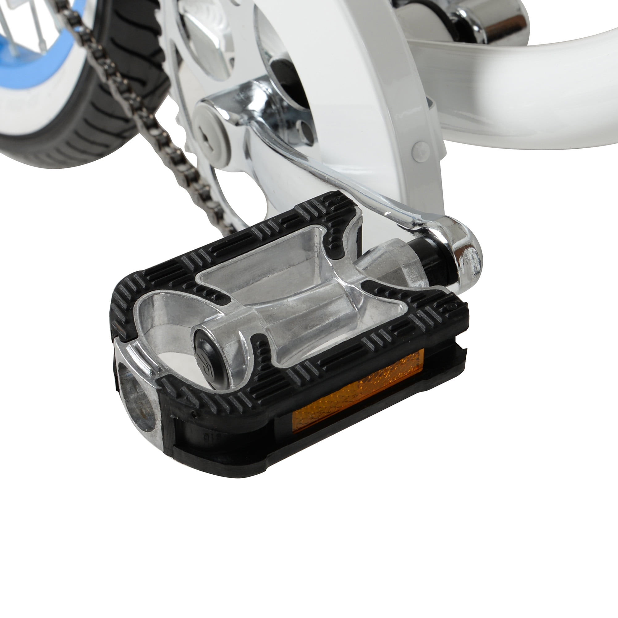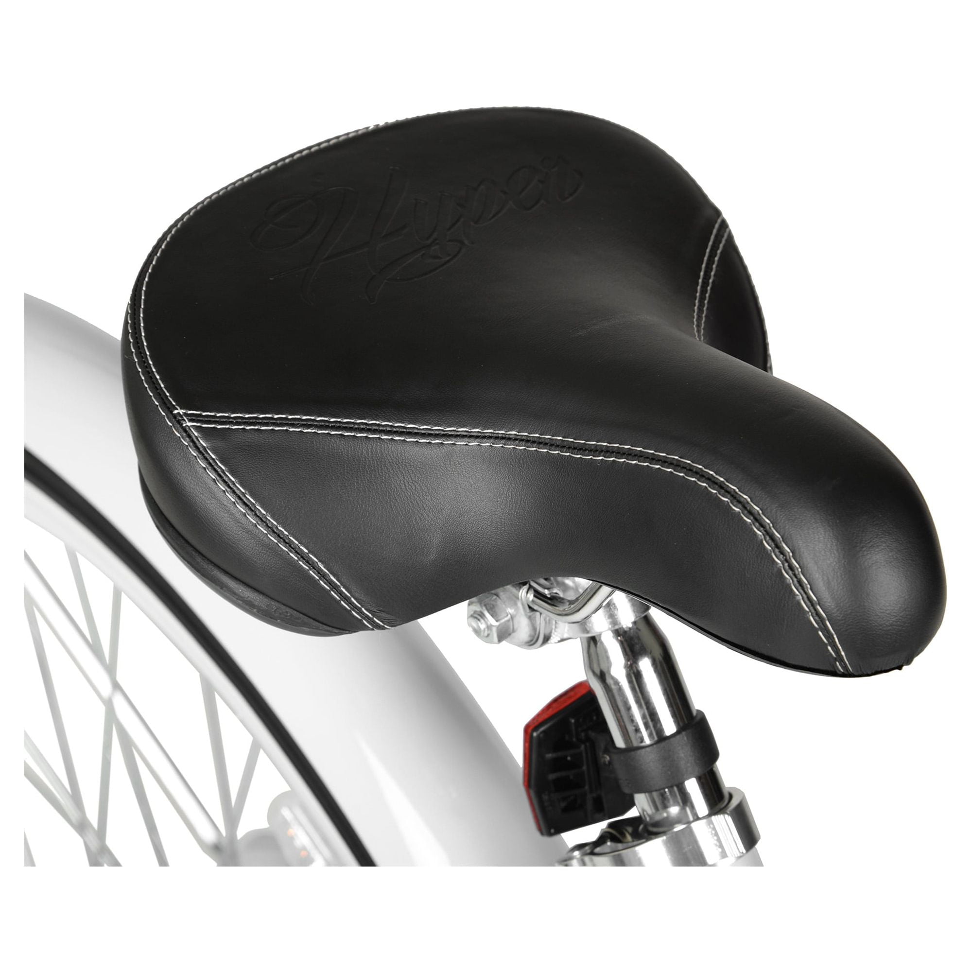 Ride in style with Hyper Bicycles women’s beach cruiser with a 26″ frame in white and Blue rim. This bicycle has a lightweight aluminum frame with easy-to-use pedal backward coaster braking. For your comfort, this bike includes platform cruiser pedals, lightweight alloy wheels, and a padded spring comfort seat. Full wrap fenders create protection for your tires. Large upright handlebars help put the rider in an upright comfortable riding position. Perfect for your daily commutes or weekend leisurely rides, the Hyper Bicycles woman’s beach cruiser bike will help make your trips more enjoyable.