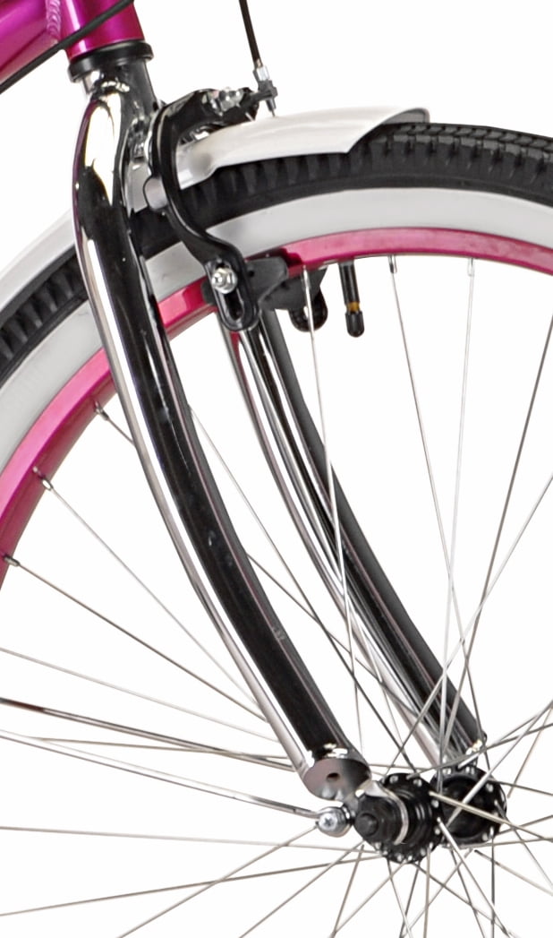 Lightweight aluminum frame Hi-Tensile steel fork Front & rear alloy caliper brakes 26″ cruiser tires Adjustable seat post with quick release Adjustable stem & handlebar Deluxe padded saddle Lightweight alloy wheels Soft rubber grips front & rear fenders 7 speed drivetrain Easy to use Microshift twist shifter Microshift derailleur 3 piece crank