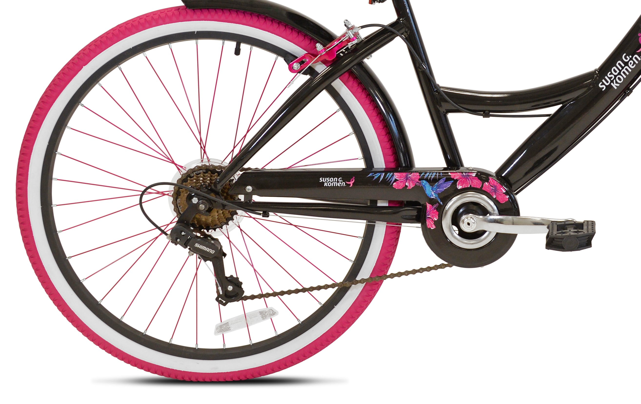 26″ Susan G. Komen Cruiser Bike, Adult, Ages 12+, Black and Pink