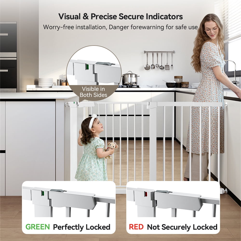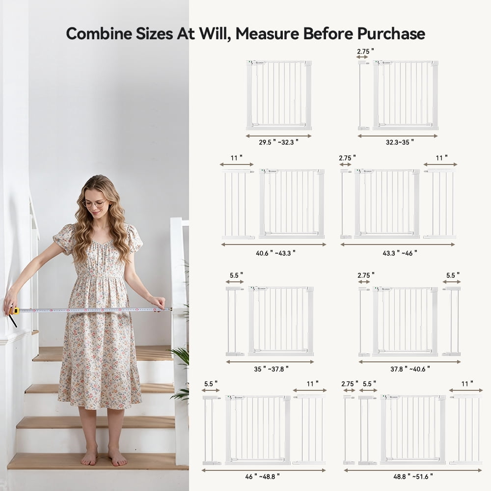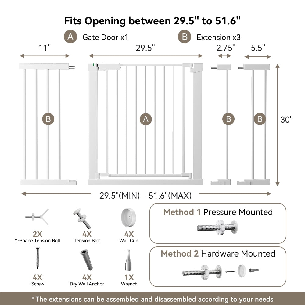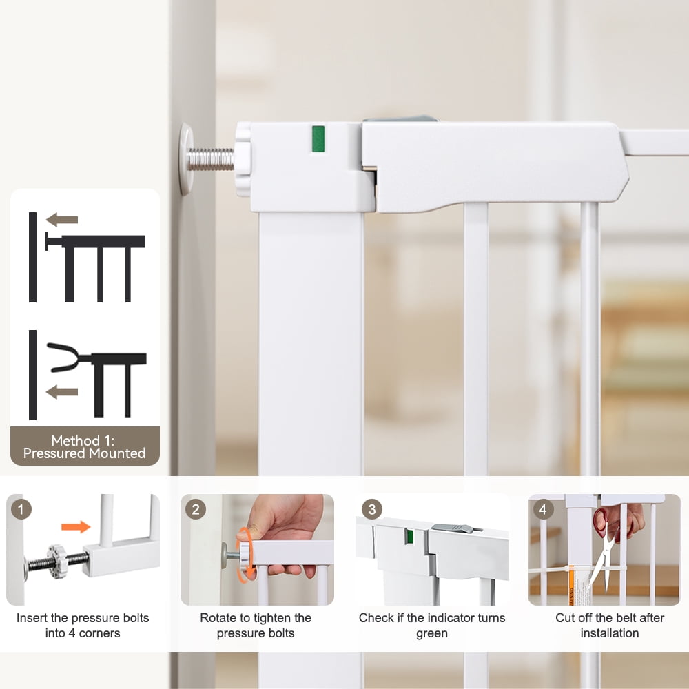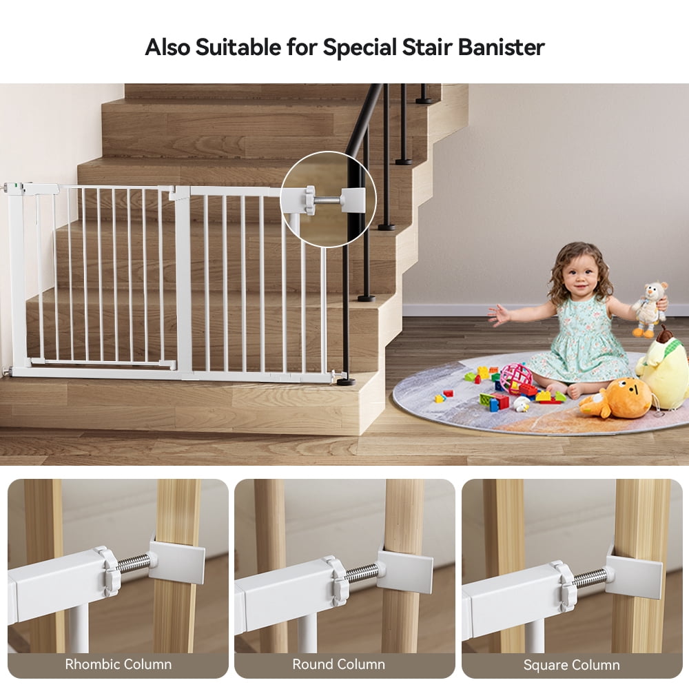 29.5-51.6” Extra Wide Baby Gate, Caveen 30”H Safety Doorway Gates Pressure Mounted,White