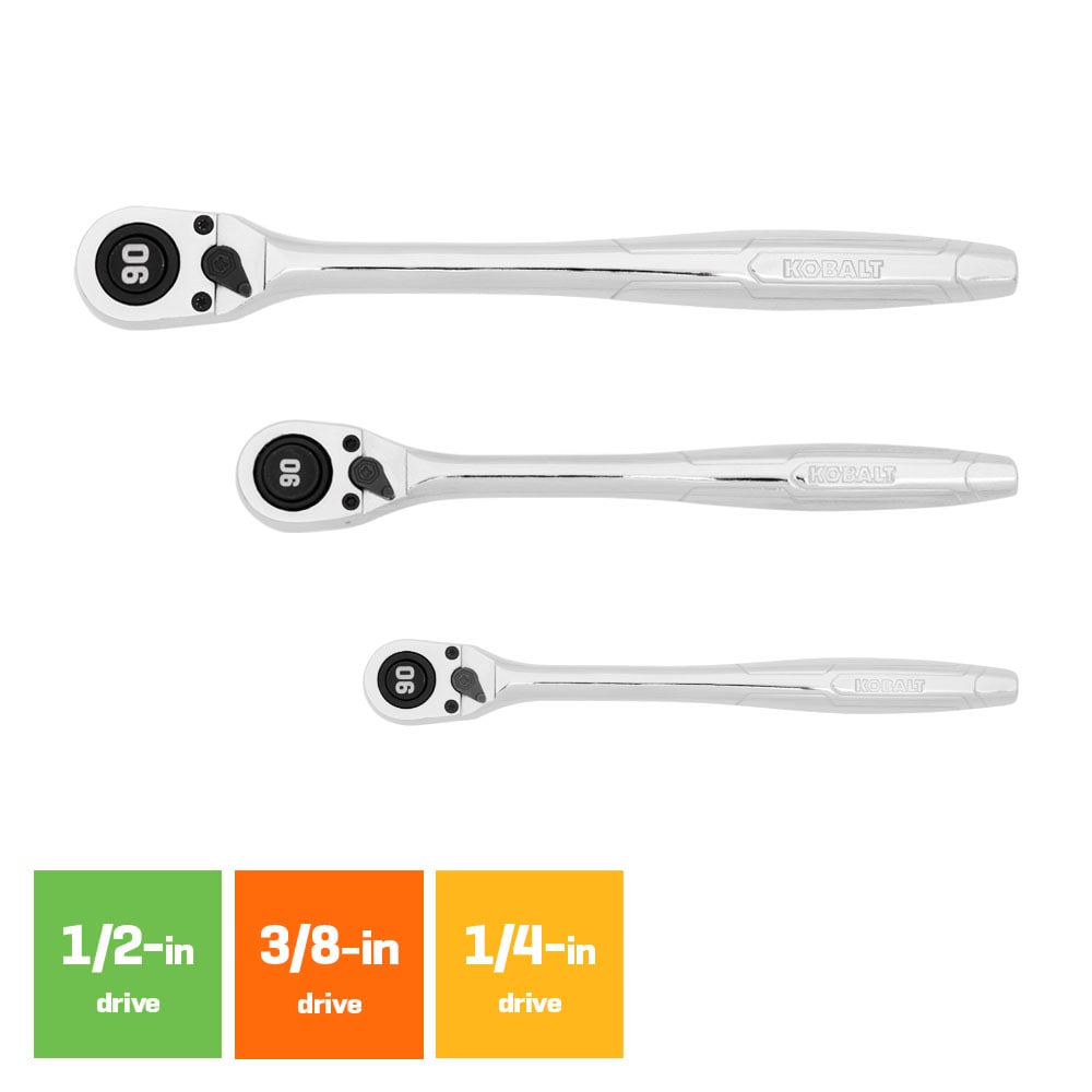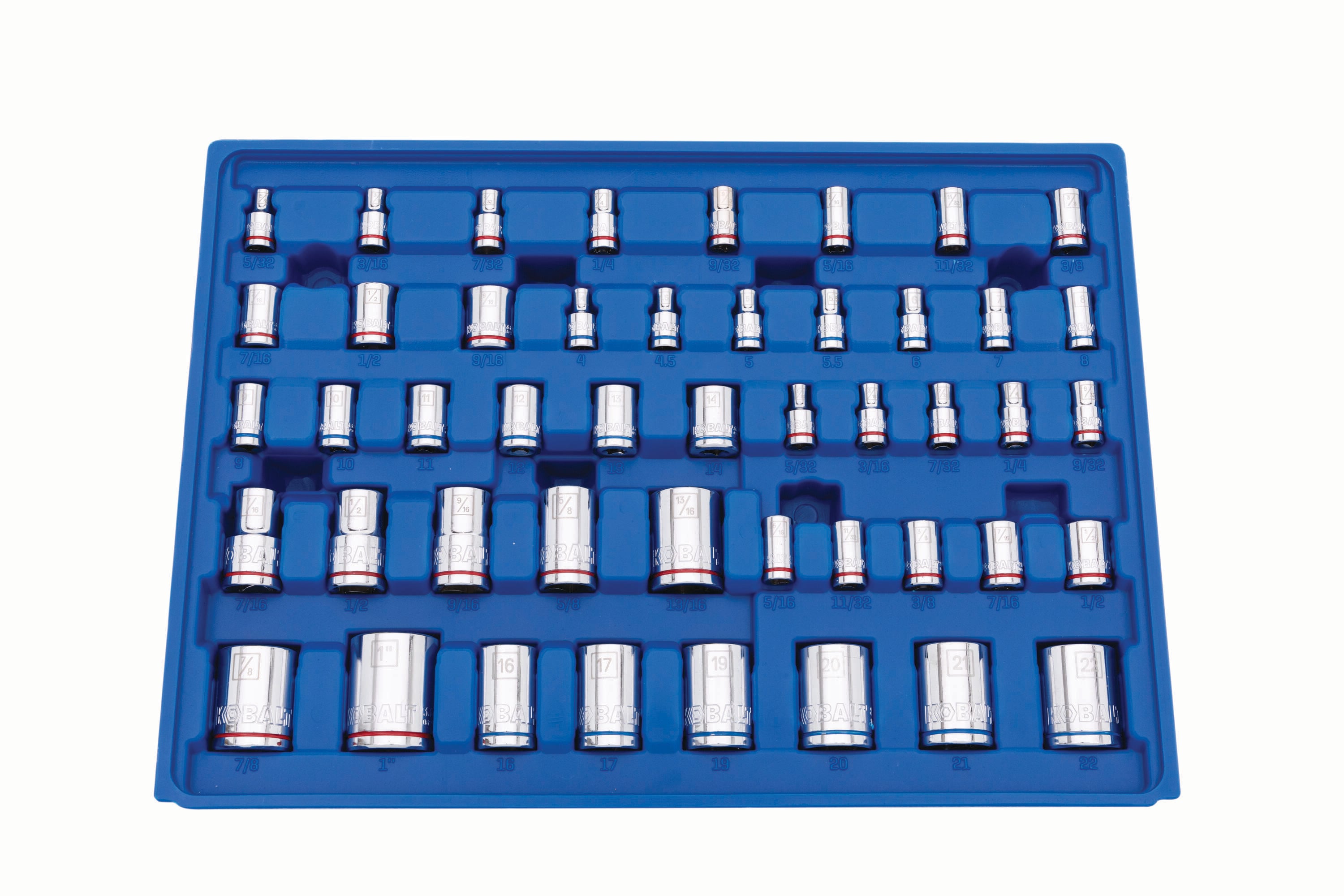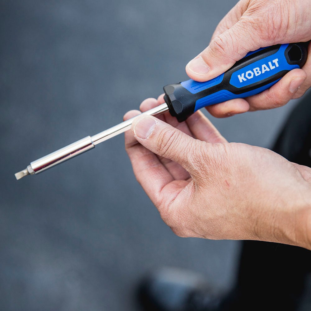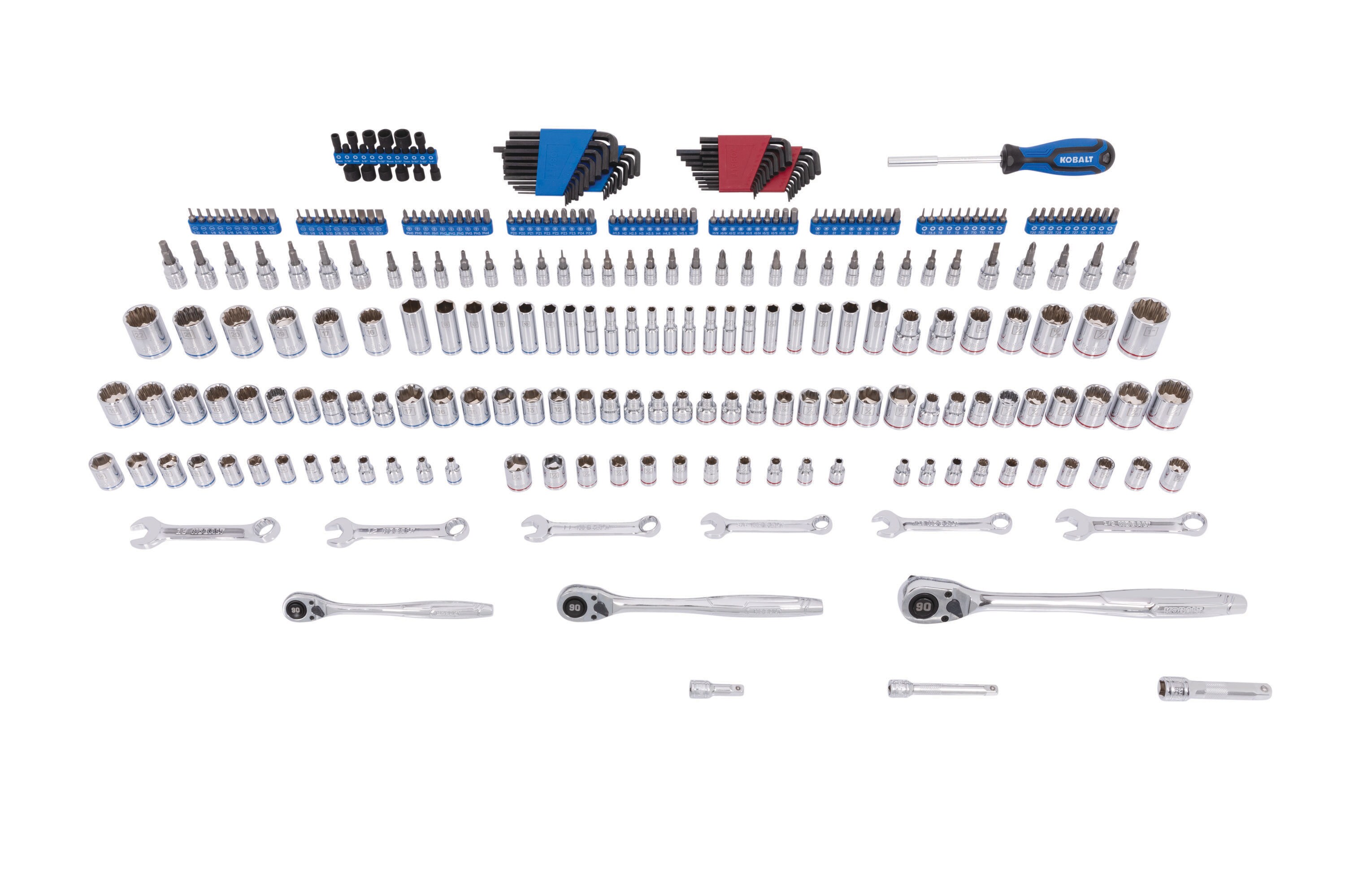 Kobalt’s 297-piece mechanic’s tool set features a wide assortment of tools housed in a two-drawer blow-molded case. Reinforced joints help the case withstand the rigors of day-to-day use. Larger drawer detents have been added to ensure the drawers stay closed during transportation. Metal clasps secure the case top and a rubber inlay has been added to the top handle for improved grip in wet conditions. The inside of the lid and both drawers feature individual compartments that securely hold all of the tools in a specific place. Every compartment has a stamped size callout that indicates what tool belongs there, helping keep things highly organized. As a skilled, do-it-all type of person, we wanted to provide you with high-quality tools to help you conquer a number of jobs. Whether you’re working on the go, in the garage or at home, you’ll truly be able to do it all.