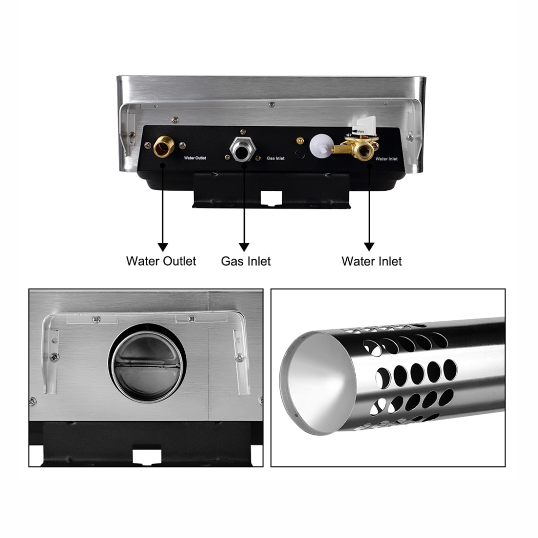Camplux indoor thermostatic tankless water heaters, are compact, easy to install, and operate using natural gas and designed. We are energy-efficient and offer a continuous supply of hot water, which is a significant advantage. This high-capacity heater features sleek black tempered glass panel, fully automatic temperature controls for precision, and a touch screen with an LED temperature display that shows output temperature and GPM flow. With child locking technology and with innovative combustion technology and advanced multiple protection systems, making it perfect for whole house use, apartment, and small homes where you need more than one hot water application at the same time.