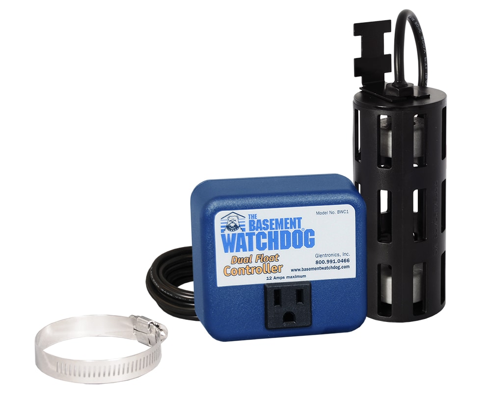 Package Contents: BWT075 pump, dual float switch with protective cage and controller, hose clamp, instruction manual