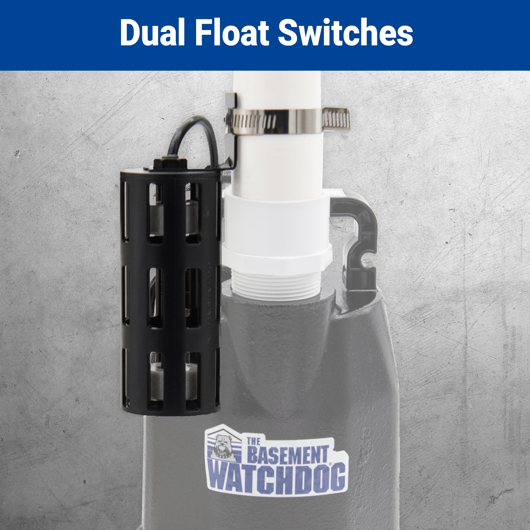 Shield your home from high water levels during severe storms with this Basement Watchdog submersible sump pump. It pumps 3,630-GPH at 10-ft lift and 5,300-GPH at 0-ft lift to ensure all unwanted water is removed and your basement stays dry. The dual float switch with a protective cage and controller provide double the protection, prevent debris or wires from interfering with float operation and activates the pump when water lifts the float switch. The heavy-duty cast-iron and cast-aluminum construction provides durability, allowing for use in ponds or fountains. The water-cooled motor means no oil leaks, while the two carbon ceramic shaft seals provide long motor life. Safeguard your home’s possessions with this Basement Watchdog sump pump.
