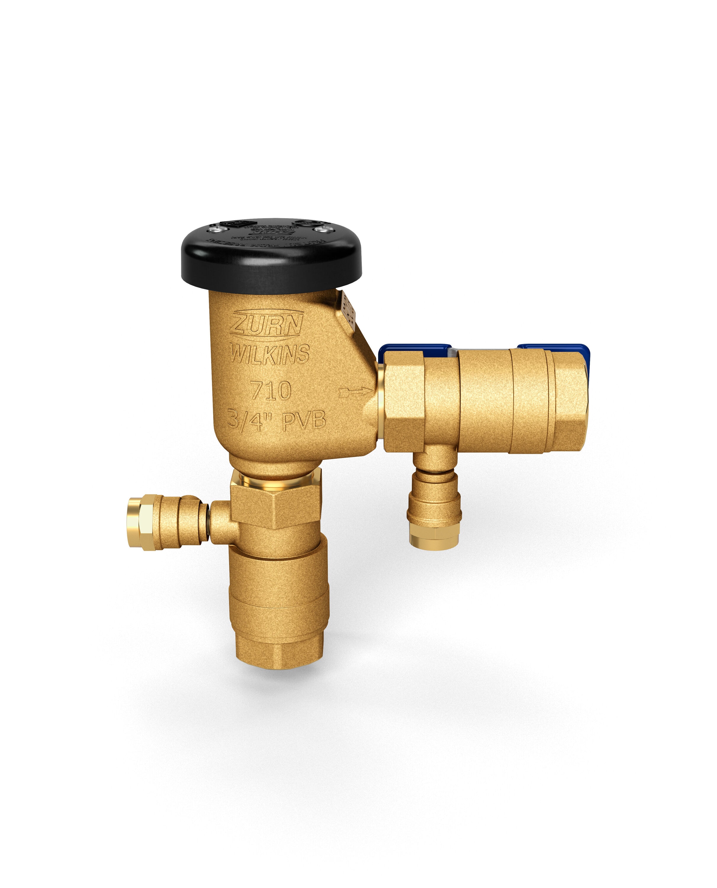 The 3/4 in. Zurn Wilkins 710 Pressure Vacuum Breaker Assembly is one of the most economical and compact PVBs on the market, bringing effortless performance to any residential or commercial irrigation system. It has fewer parts and a lightweight body that’s up to 2 in. shorter than other PVBs, with shared internals between sizes that make contractors’ lives easier. Genuine original manufacturer repair parts ensure your valves maintain certification after repairs.The corrosion-resistant valve and stainless steel shutoff handles make it durable in any weather. Suitable for high-hazard backflow prevention including irrigation. Features a maximum pressure of 150 psi and temperature range of 33°F to 140°F.