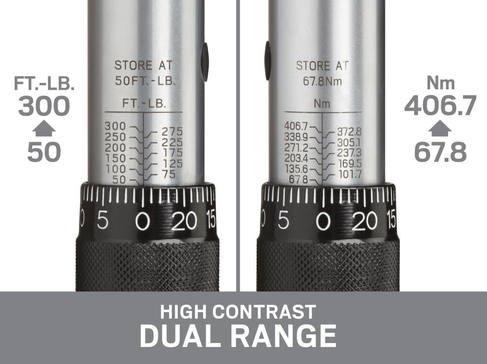 Sized for heavy trucks, tractors, and other large equipment, the dual-range 50-300 ft.-lb. (67.8-406.7 Nm) TEKTON 3/4 in. Drive Click Torque Wrench lets you confidently tighten fasteners to precise specifications, ensuring parts are properly secured without being damaged.