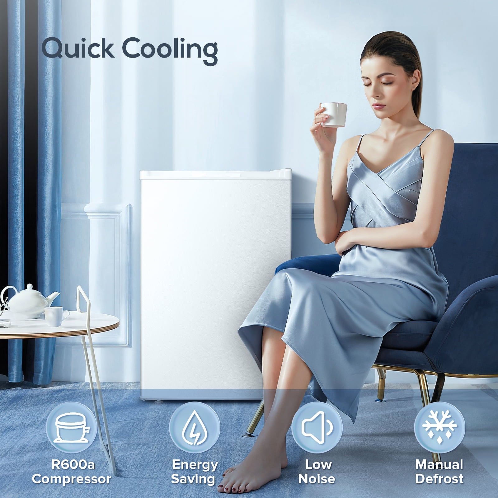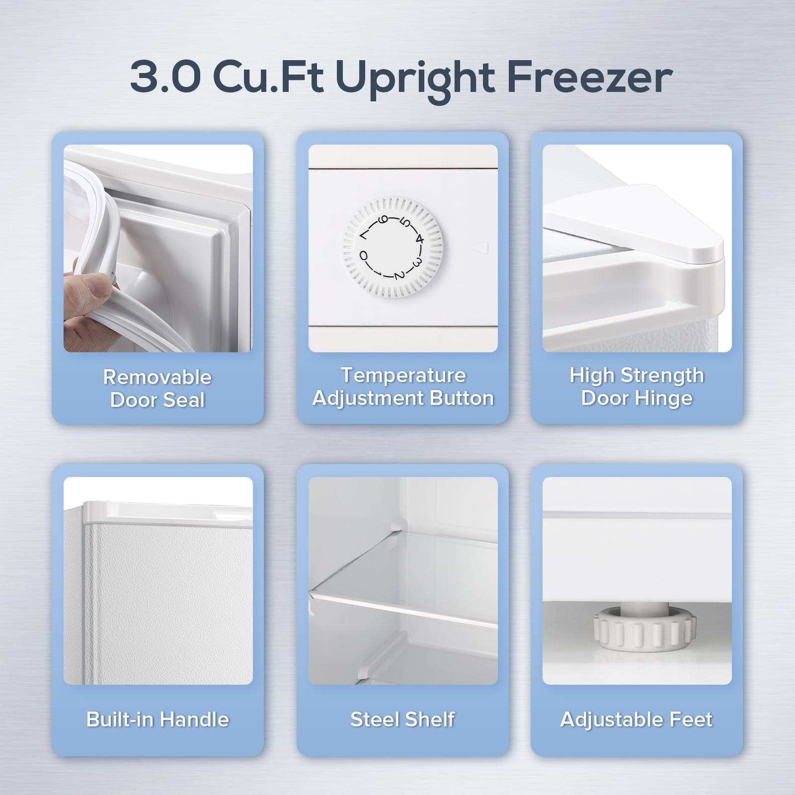 Stock up on your family’s frozen favorites with a this COWSAR 3.0 CU.FT. upright freezer, ideal for a basement, kitchen, or garage. This unit features an abundance of space for food organization with 2 storage shelves. It can be used garage ready and can perform in temperatures from -7.6°F to 6.8°F. Boasting 3 cu. ft. of freezer space for long term storage of meats and seafood, frozen vegetables, fruits and chilled foods, we are committed to keeping your food fresh and flavorful so you can enjoy the endless possibilities of food!