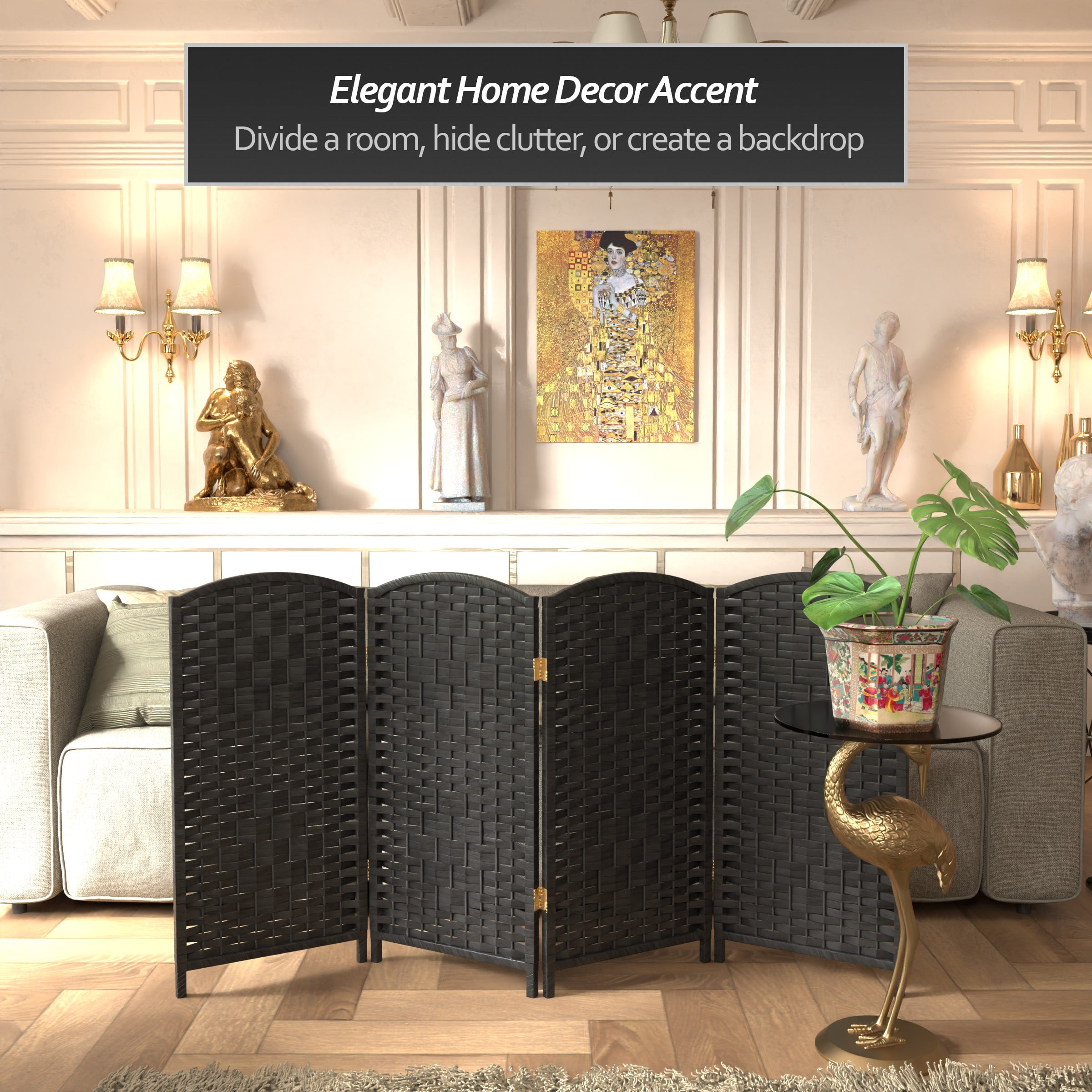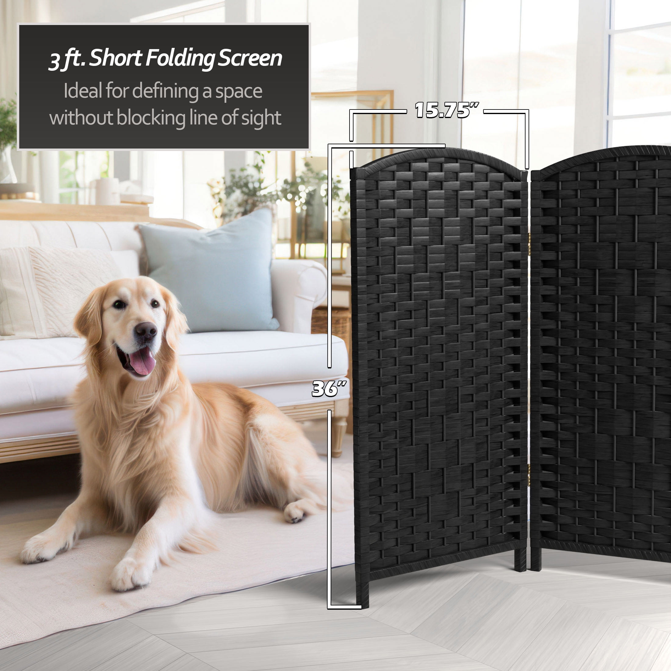 Red Lantern 3 ft. Short Diamond Weave Fiber Folding Screen – Black – 4 Panel