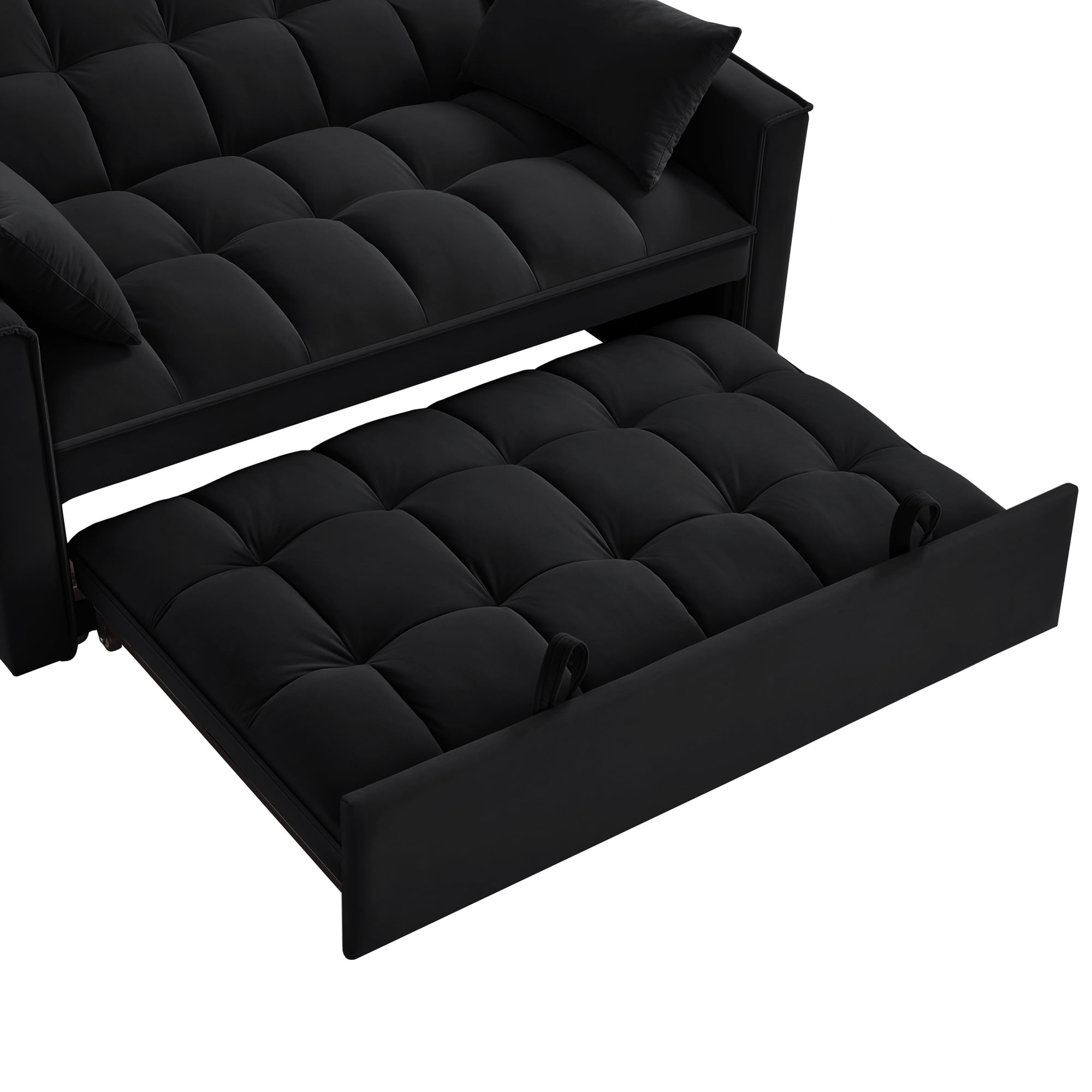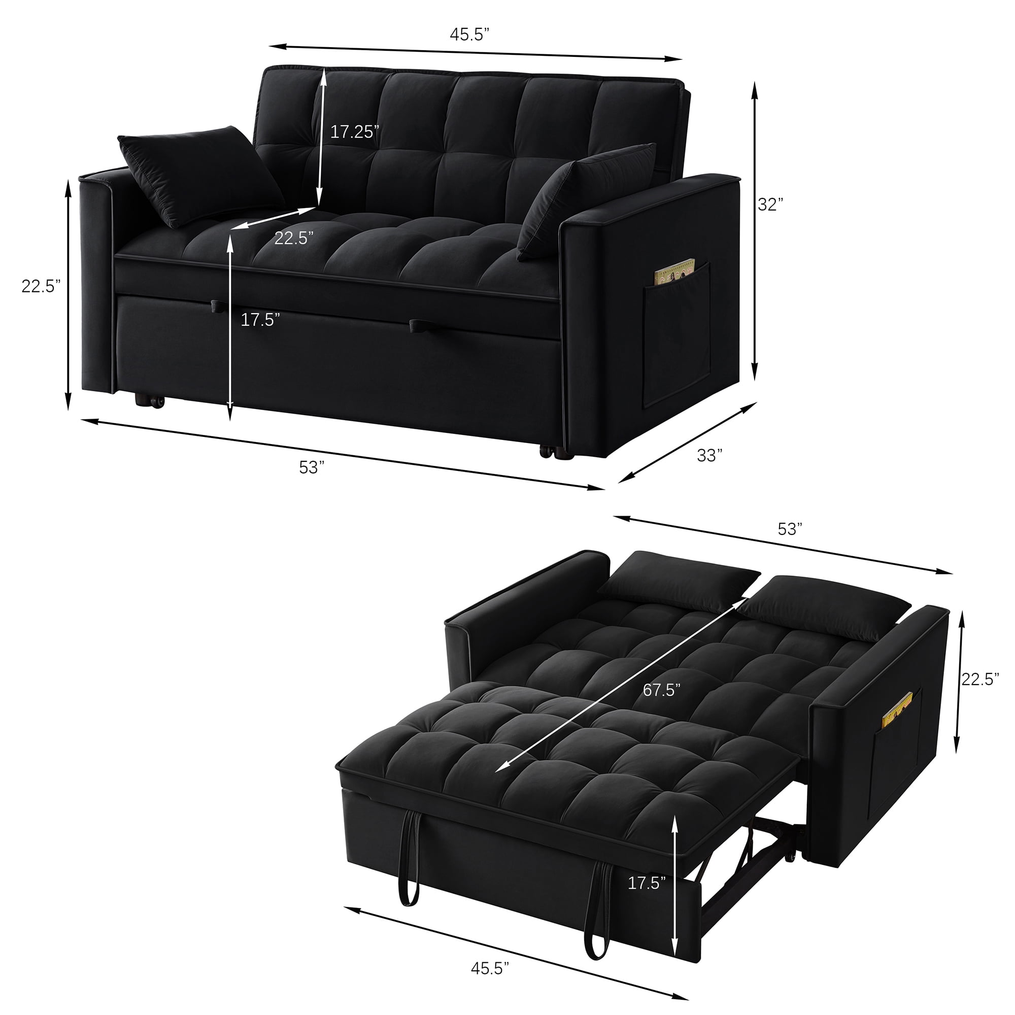 3 in 1 Convertible Sleeper Sofa Bed, 53″ Modern Convertible Sofa Bed with 2 Detachable Arm Pockets,Velvet Pull Out Couch with Pull Out Bed for Living Room Furniture,Black