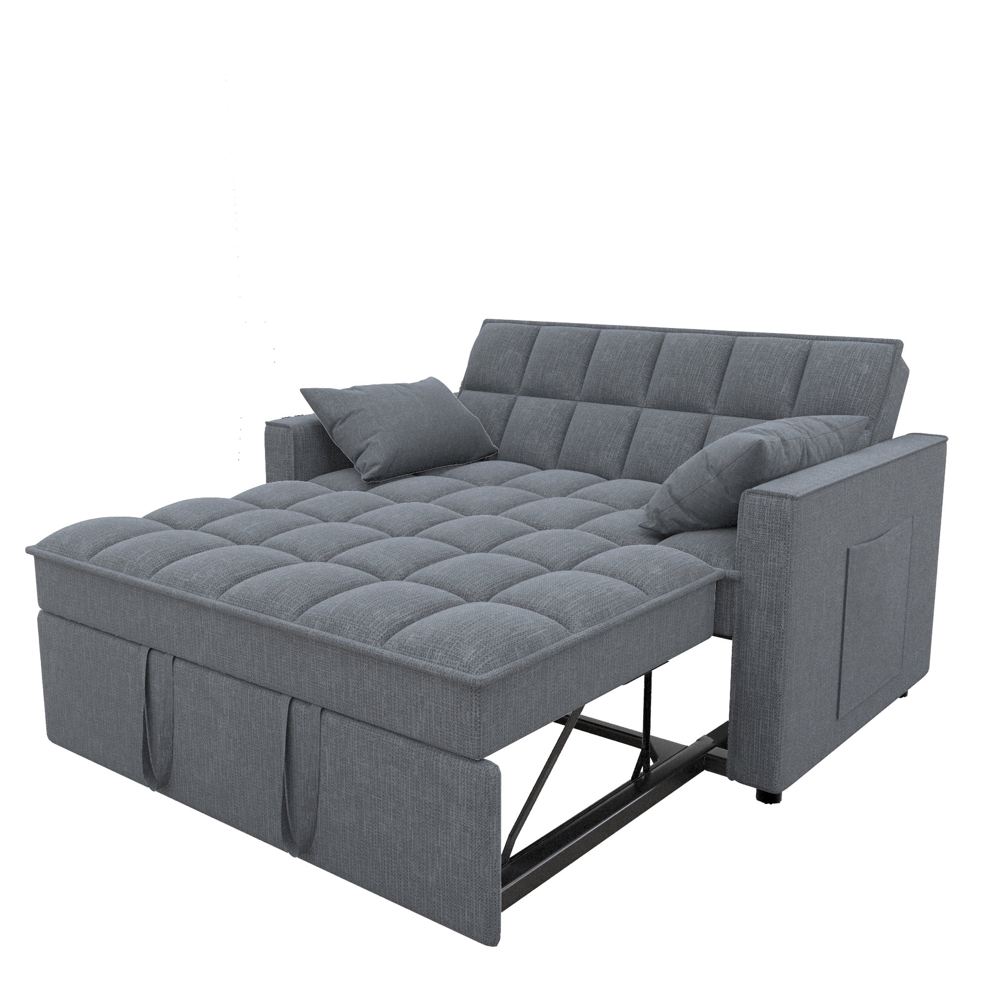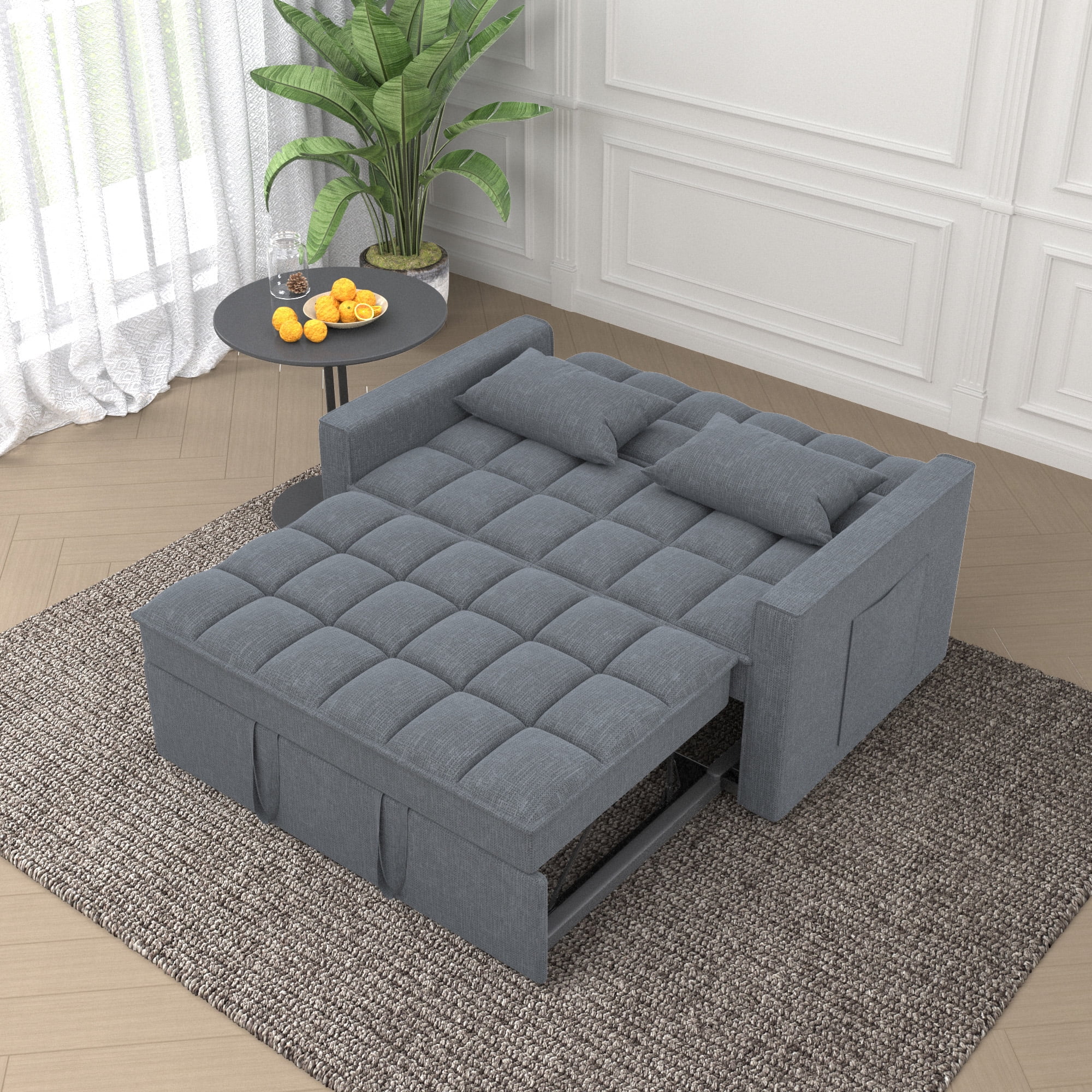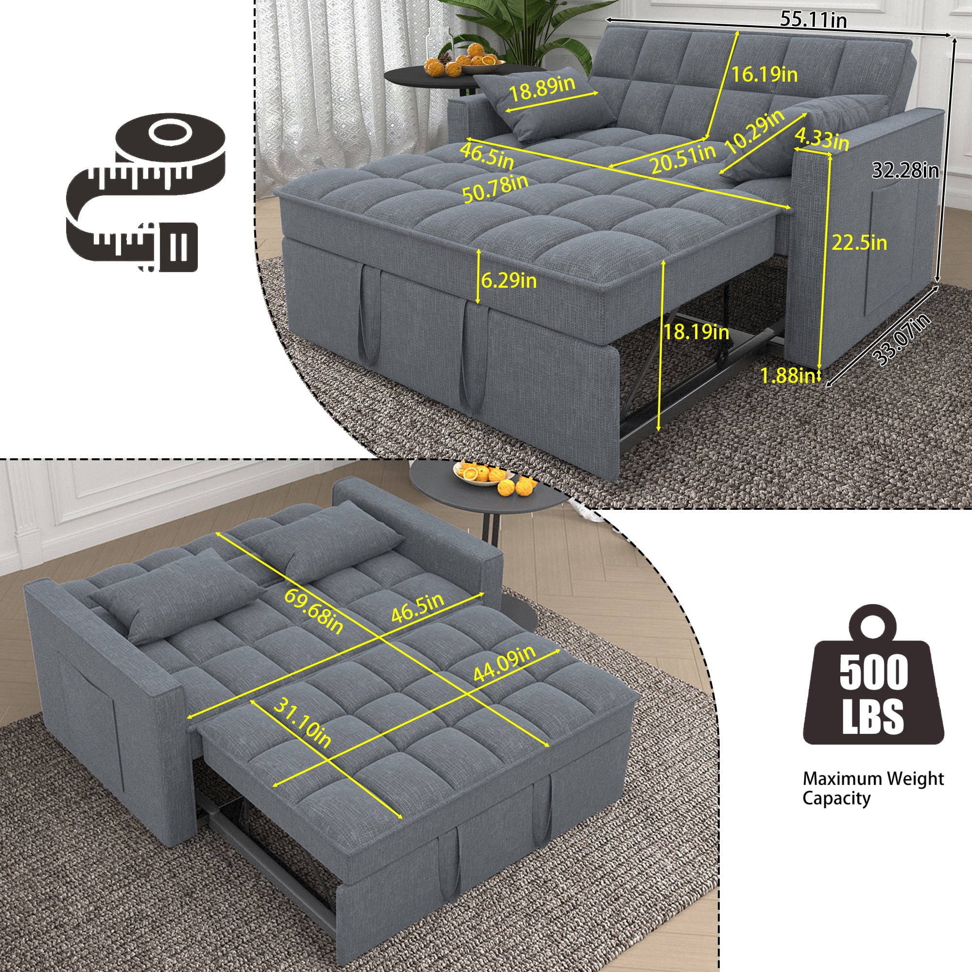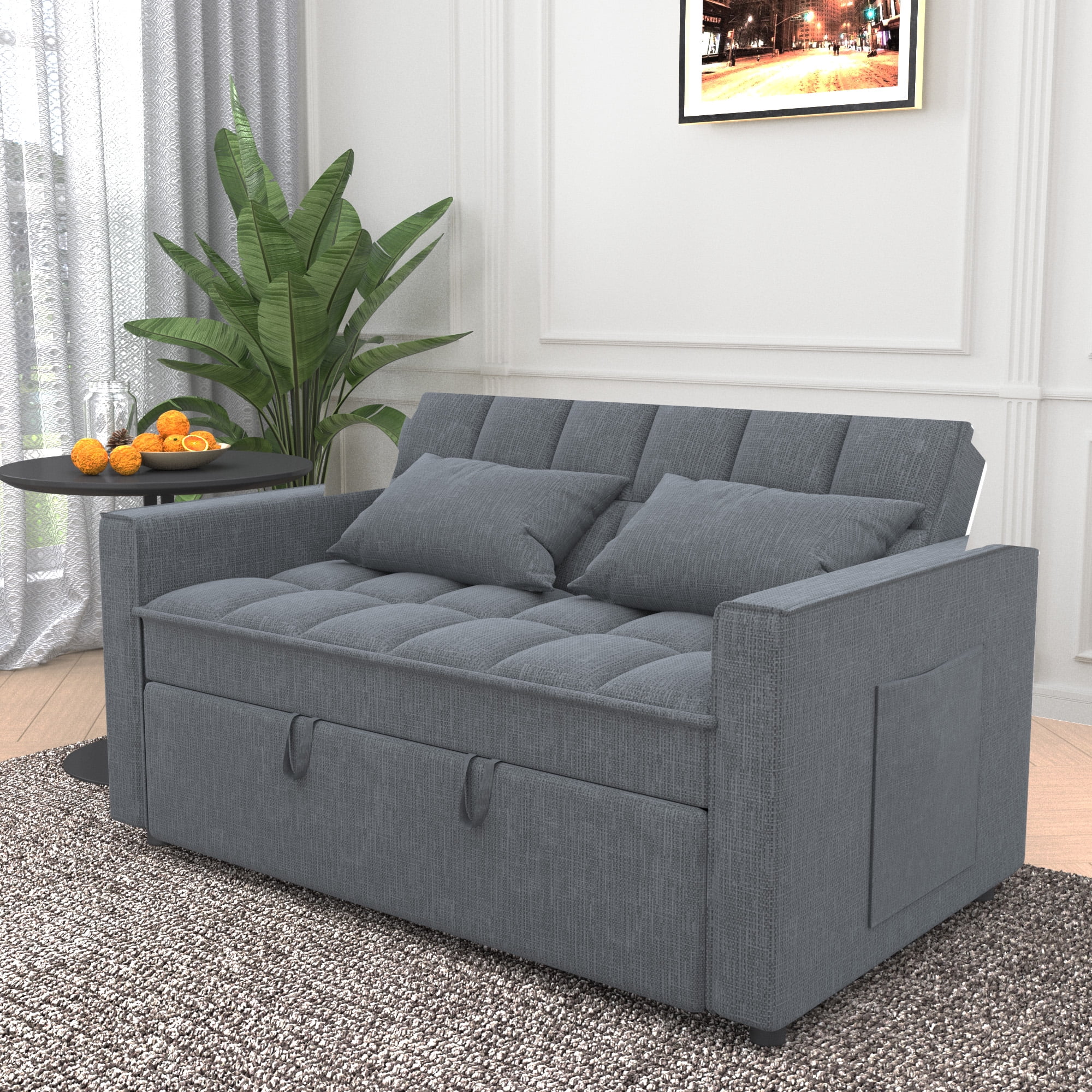 3 in 1 Convertible Sofa Bed,Modern Linen Fabric Sleeper Sofa with Pull Out Bed,Loveseat Couch with Adjustable Backrest for Living Room,Dark Gray