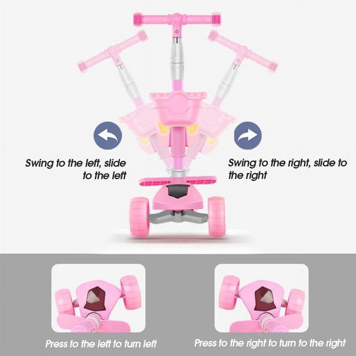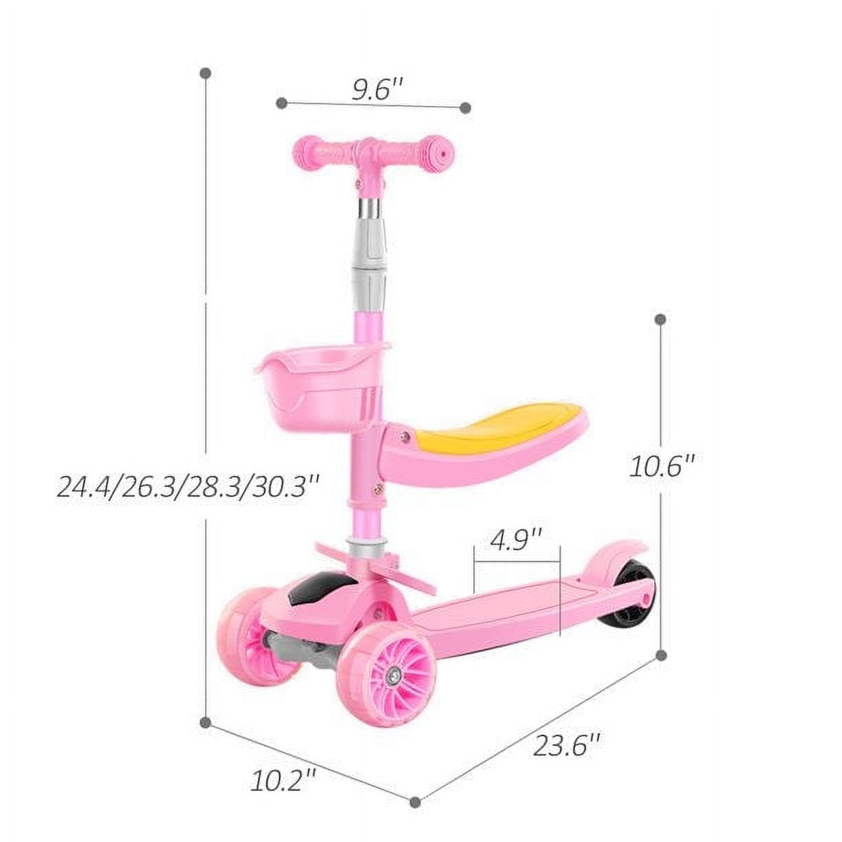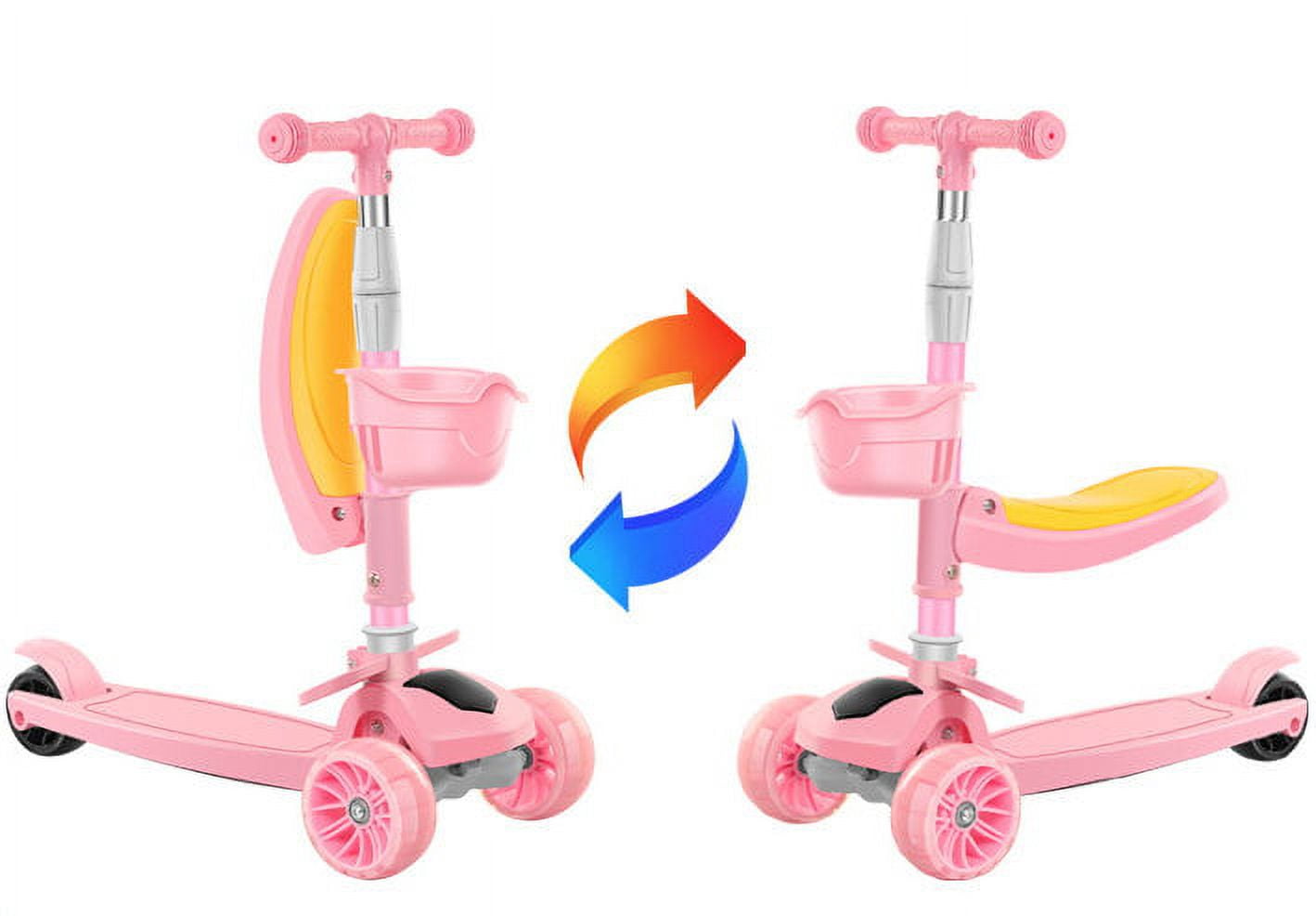 3 in 1 Kids Kick Scooter,3 LED Flashing Wheels Children Walkers Toddler Scooters with Removable Seat,Adjustable Handle T-Bar for Kids Birthday Gifts