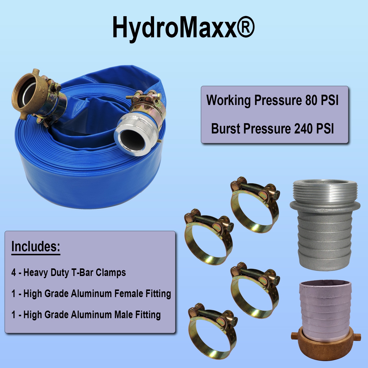 3-in ID x 100-ft PVC Blue Flat discharge hose