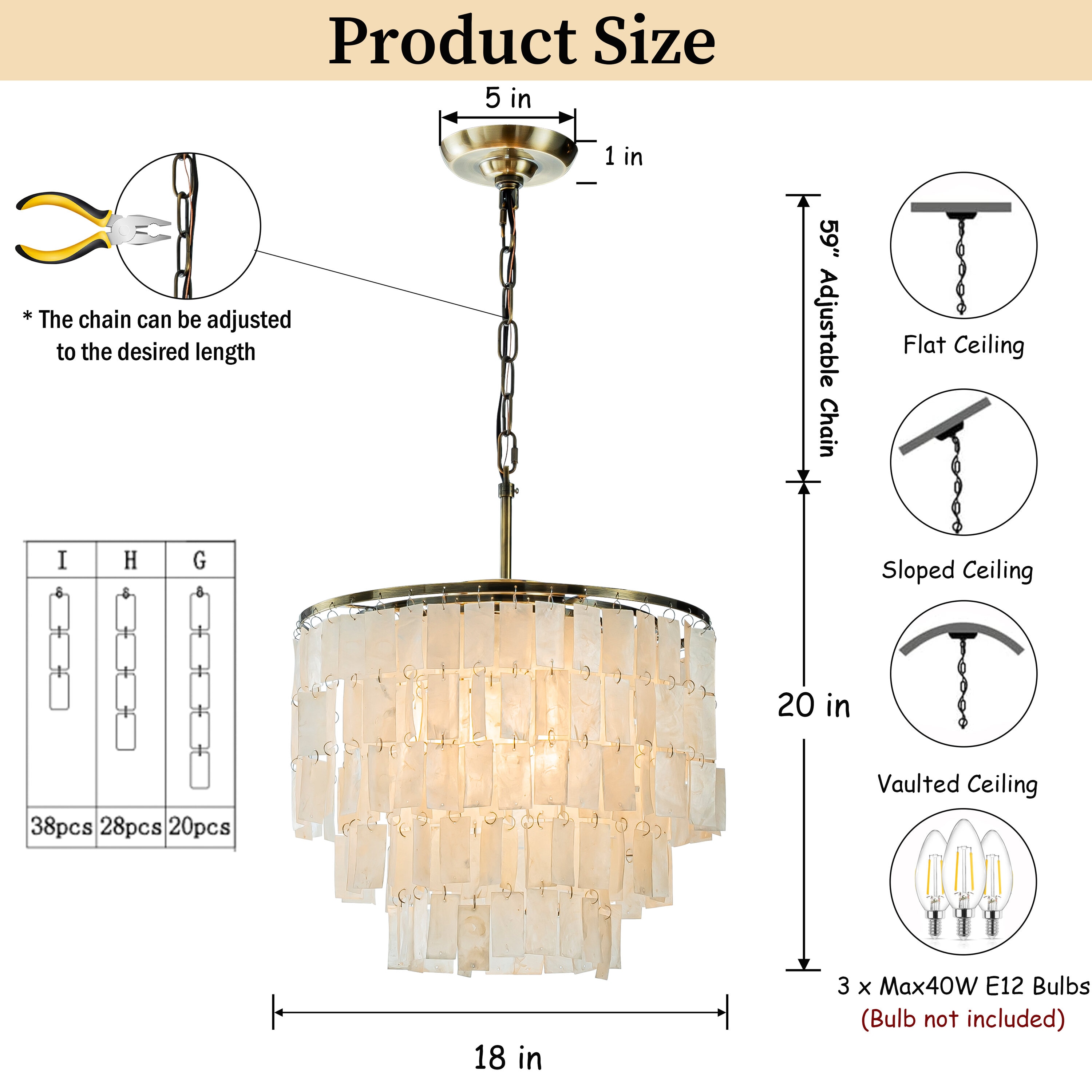 Indulge in the timeless elegance of our Antique Bronze Capiz Chandelier, a stunning blend of nature and sophistication. This 3-light pendant chandelier features exquisite natural capiz shells delicately suspended from an antique bronze frame, creating a captivating visual harmony.