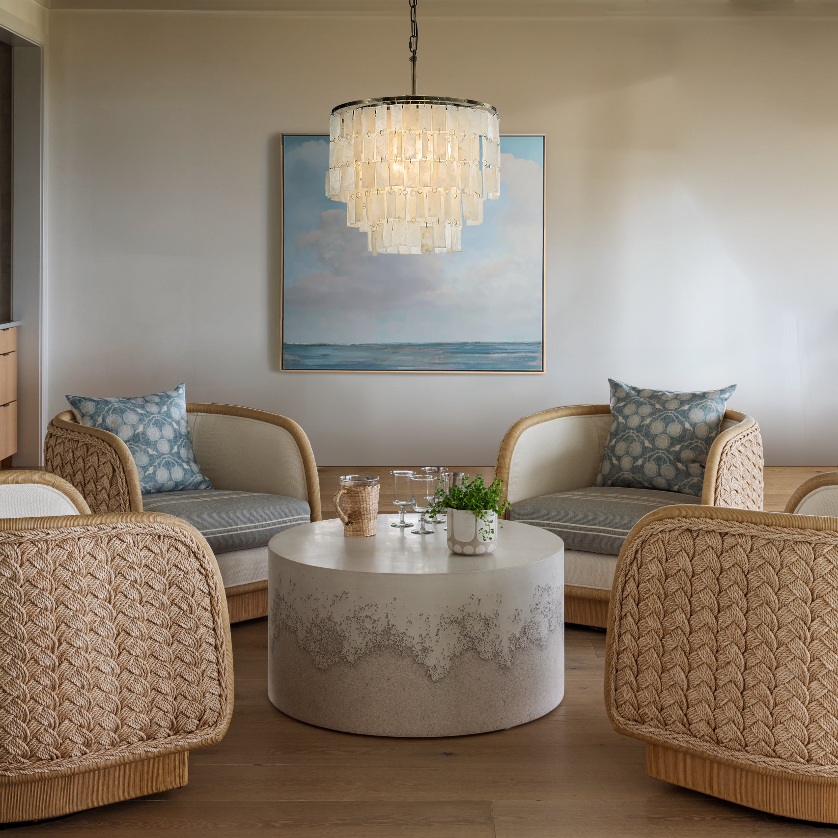 Transform your space with the laid-back luxury of coastal living and the chic allure of glamorous style. Our Antique Bronze Capiz Chandelier is not just a lighting fixture; it is a statement of sophisticated charm and timeless beauty. Order now and elevate your home decor.