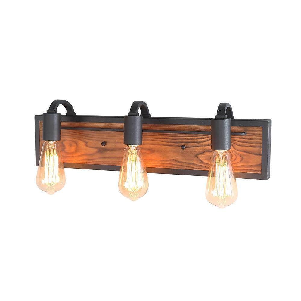 LNC 3-Light Black and Brown Wood Dimmable LED Vanity Light Bulb Type: E26 Type A Max Wattage: 60W Color: Black, Brown Location: Damp and Dry Dimmable: Yes Mount Type: Wall mounts Light Direction: Up and Down Application: Ideal for vanity, powder room, bathroom, dressing room, bedroom, dining room, and anywhere you want a beautiful glow of bright light Style: Perfect for traditional and farmhouse style settings Finish: Matte black finish with natural mango wood Material: Constructed from metal and natural mango wood for durability and visual interest Bulbs: For ideal illumination, use 3 medium base E26 bulbs (sold separately, 60W max LED/CFL/incandescent). Compatible with dimmable bulbs Dimensions: Measures 21″ length x 4″ depth x 6″ height; backplate size: 21″ width x 6″ height Certifications: UL Damp location listed Pairs With: Pairs with LNC Home Lighting fixtures from other categories to refresh your home look