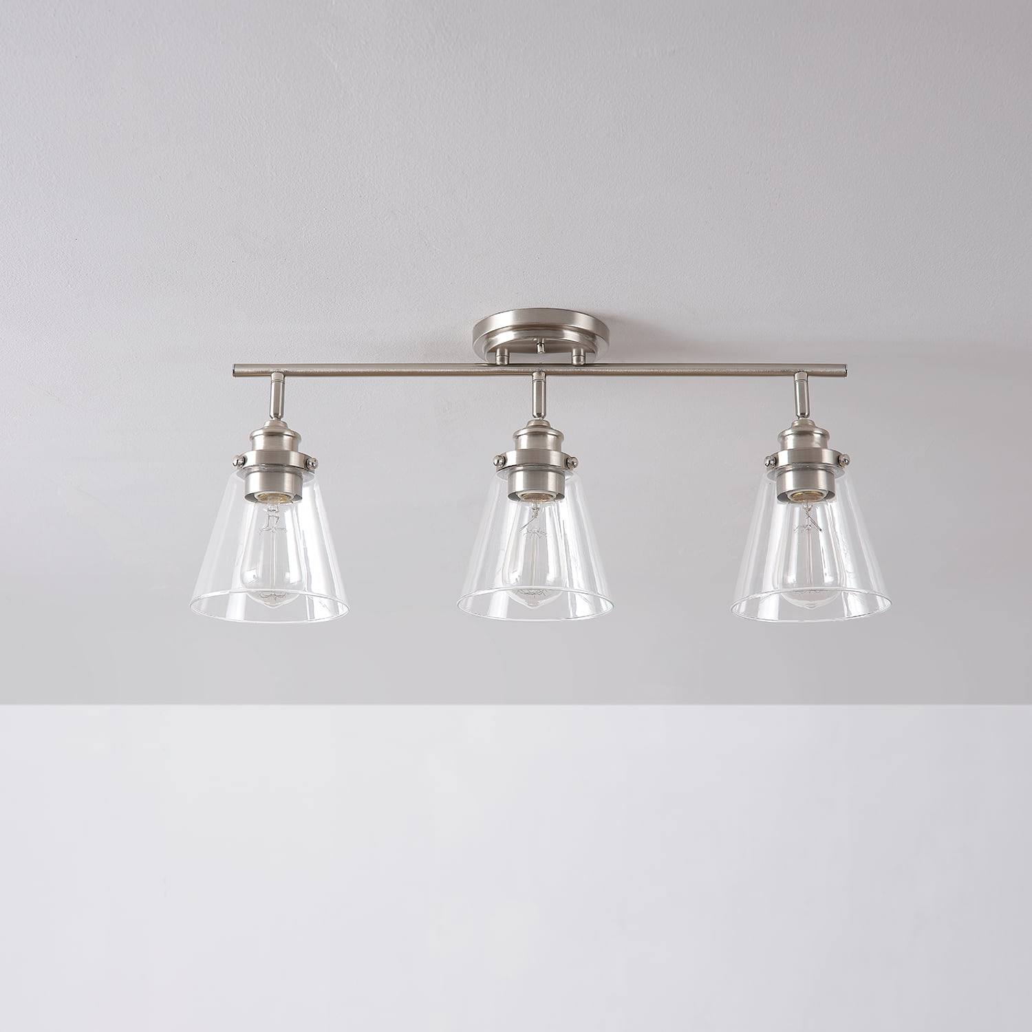 3-Light Brushed Nickel Track Lighting with Clear Glass Shades