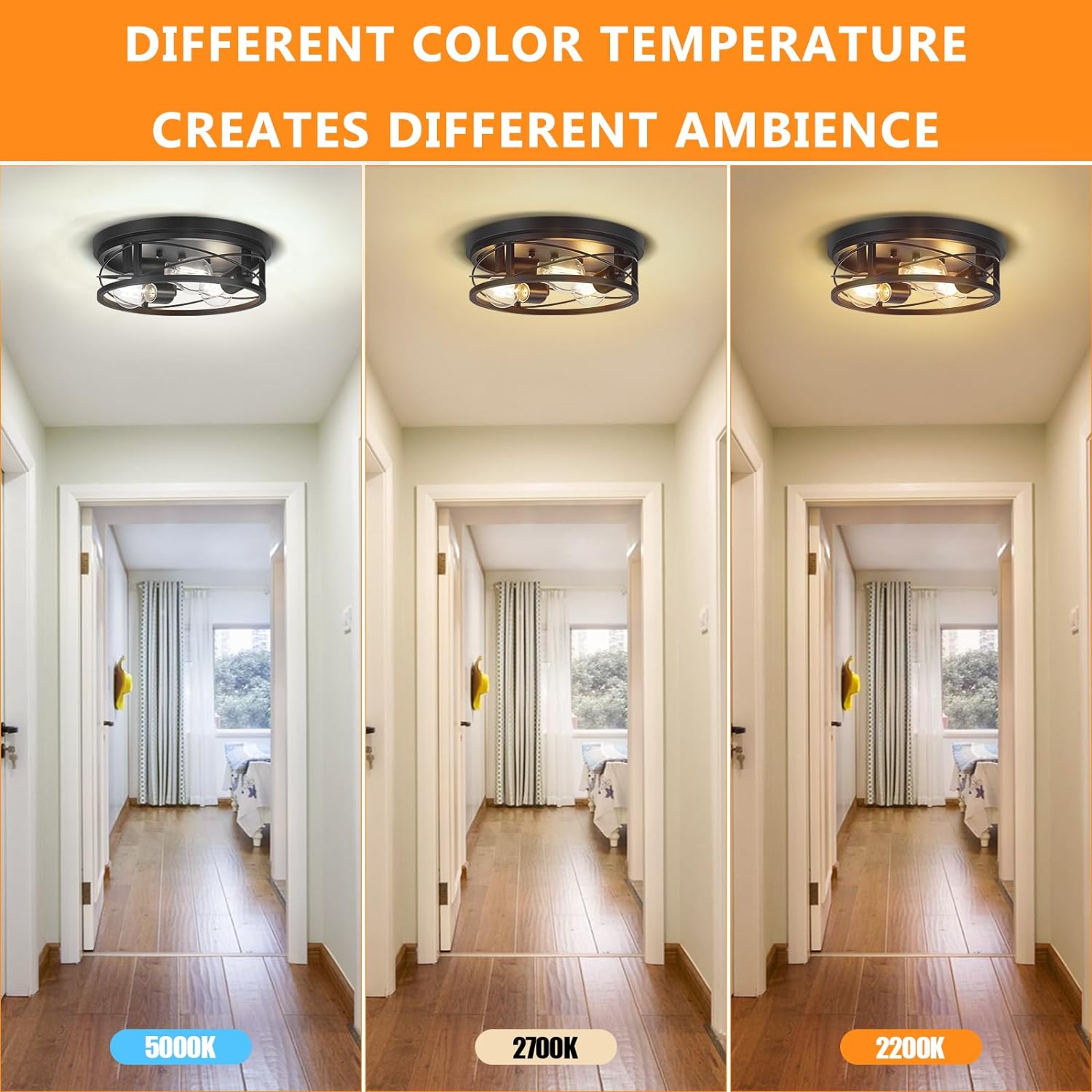 【6 Free A19 LED Bulbs Included】These 3-light close to ceiling lights are packaged with 6pcs A19 Edison Light Bulbs, no second purchase hassle! Free but in high quality. The E26 base provides stable lighting, also the black hallway modern ceiling light is fully dimmable when used in a dimmable bulb and compatible dimmer switch.