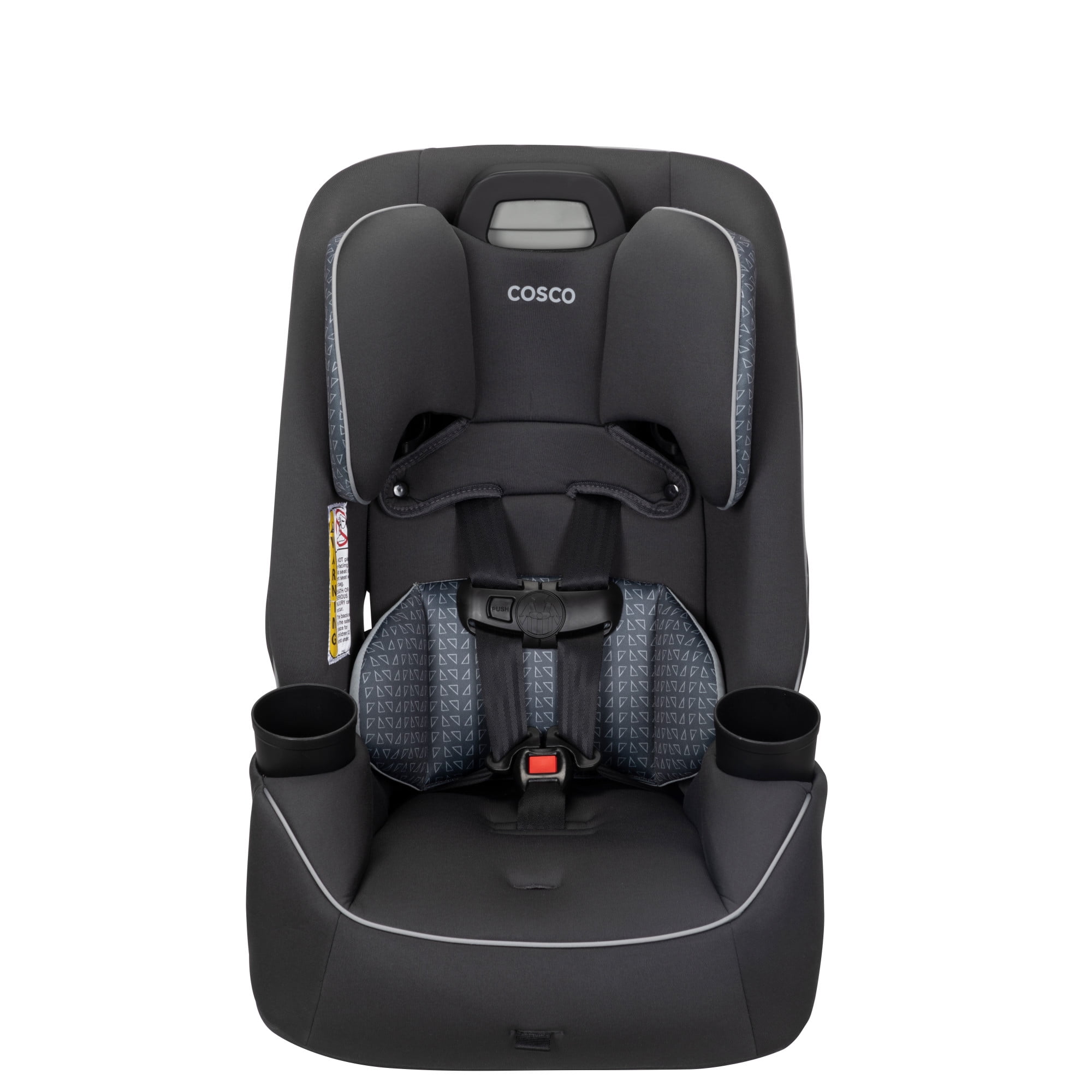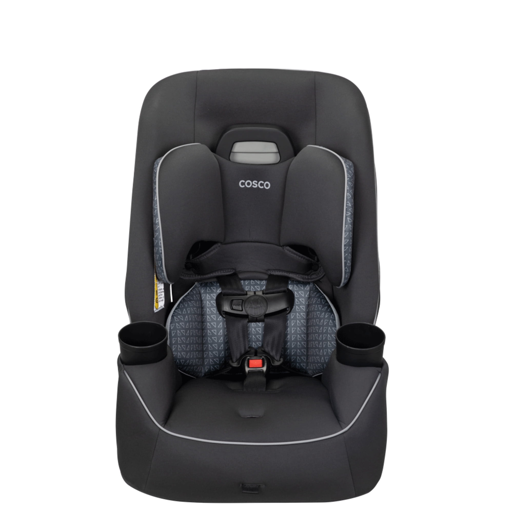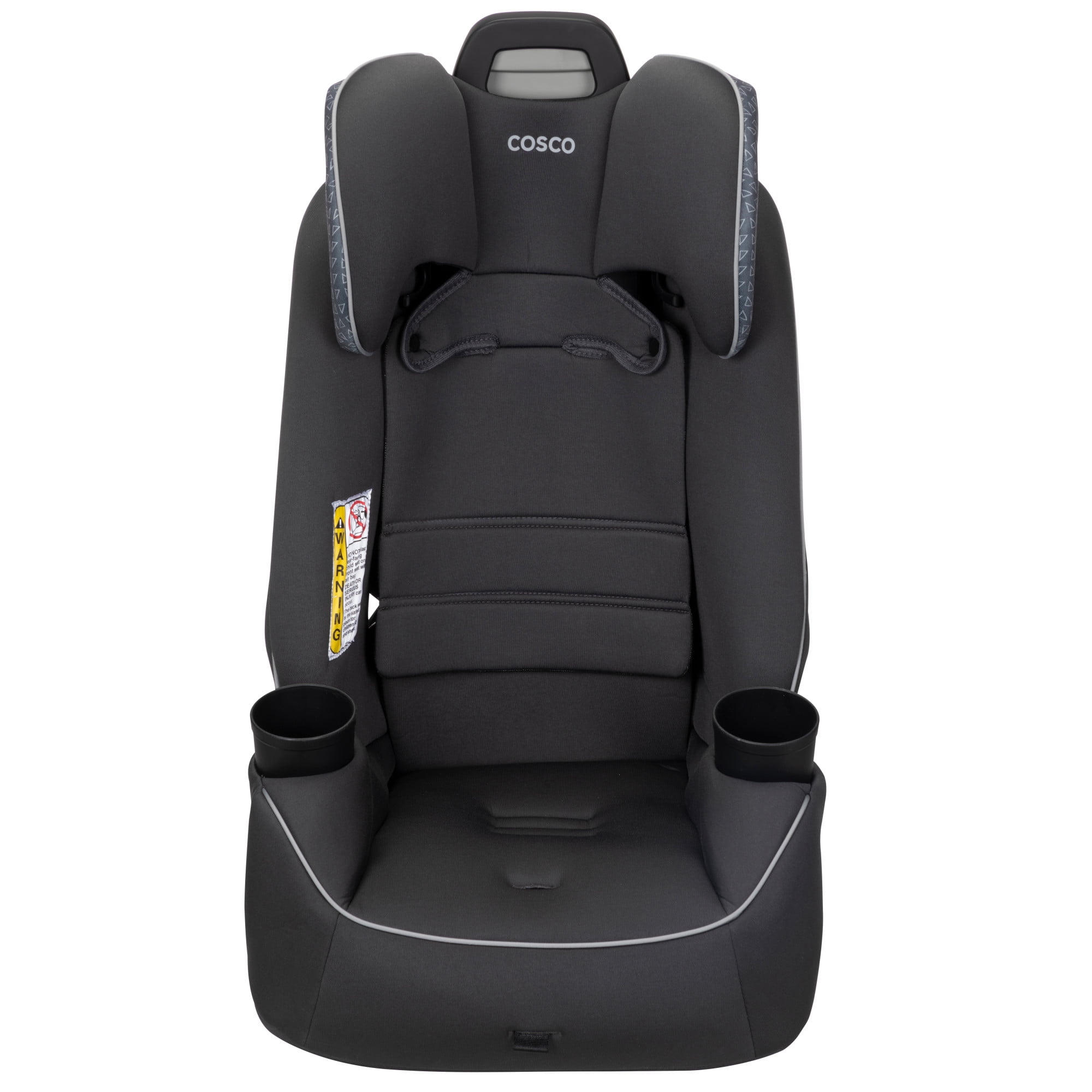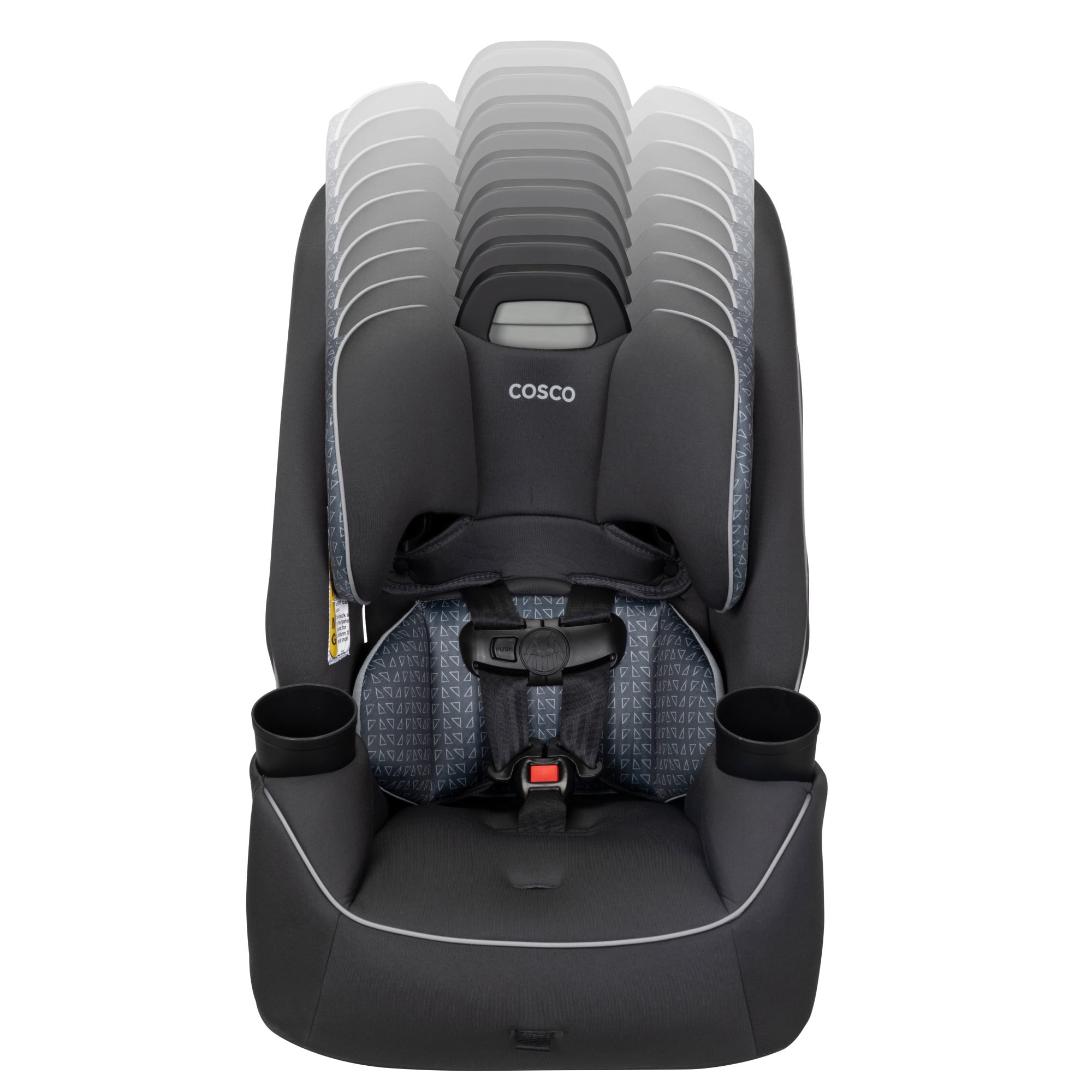 The Cosco Kids Easy Elite Slim All-in-One Convertible Car Seat in Grey Glyphs is a versatile solution designed to grow with your child. This all-in-one car seat is suitable from infant car seats to toddlers and big kids, making it a dynamic choice for your growing family. The car seat transitions from rear-facing for babies 5-40 lbs, 19-40″ to a forward-facing car seat for toddler, accommodating toddlers from 22–65 lbs, 29-49″. Additionally, it serves as a belt-positioning backed booster seat for kids weighing 40-100 pounds, 43-52″. This 3 in 1 car seat features a 5-point harness system with an easy up-front adjustment, providing a snug fit through each stage. Notably, it is a rear facing car seat for infants and also a forward facing car seat for toddlers and complements the journey of children up to the booster seat stage. The car seat’s compact design fits 3 across in most cars, making it ideal for families with multiple car seats. The headrest and harness adjust easily with one hand. Simple care is offered with its machine-washable seat pad and removable, dishwasher-safe cup holders. Actual fit may vary. Not all children will comfortably fit in the seat for the full weight and height ranges listed.
