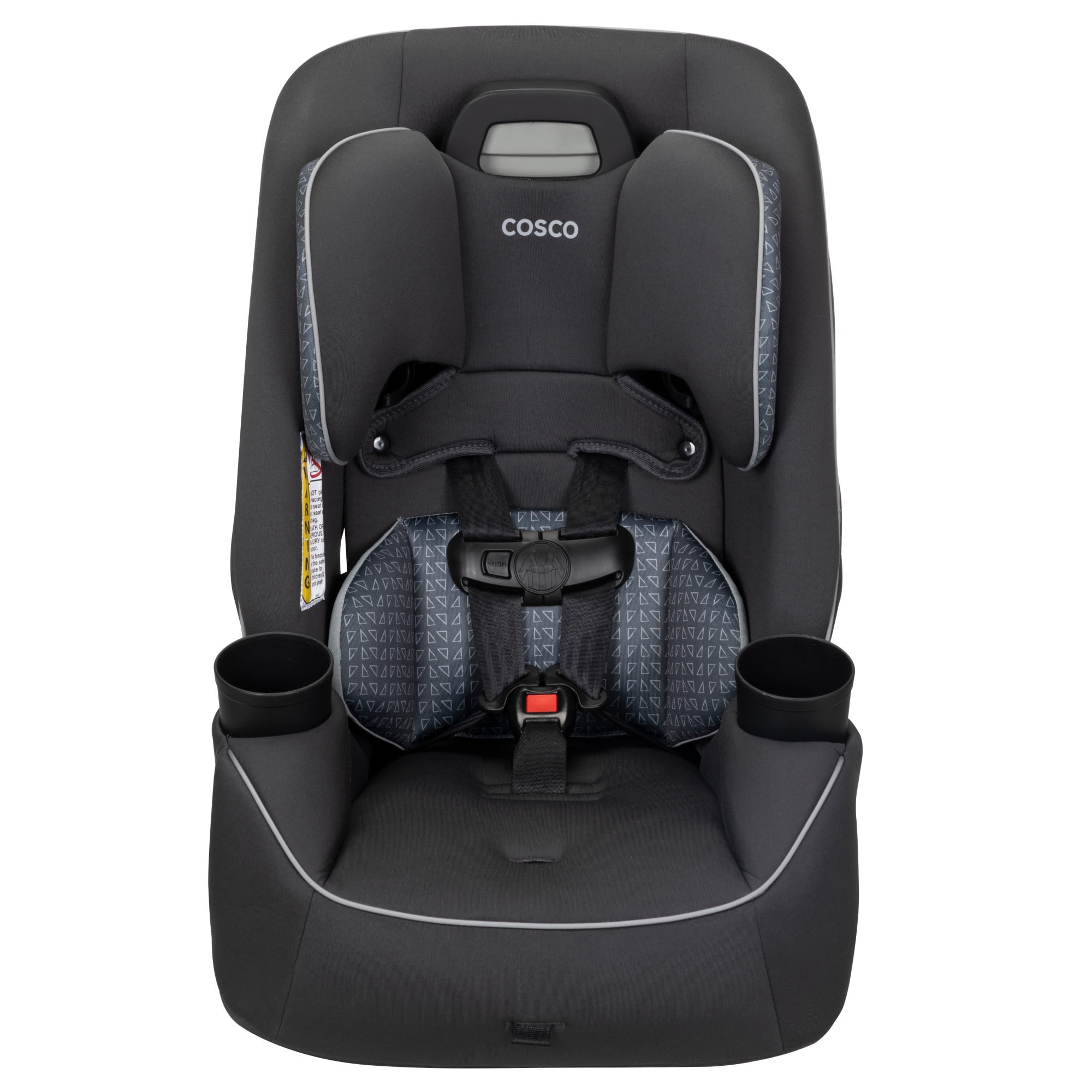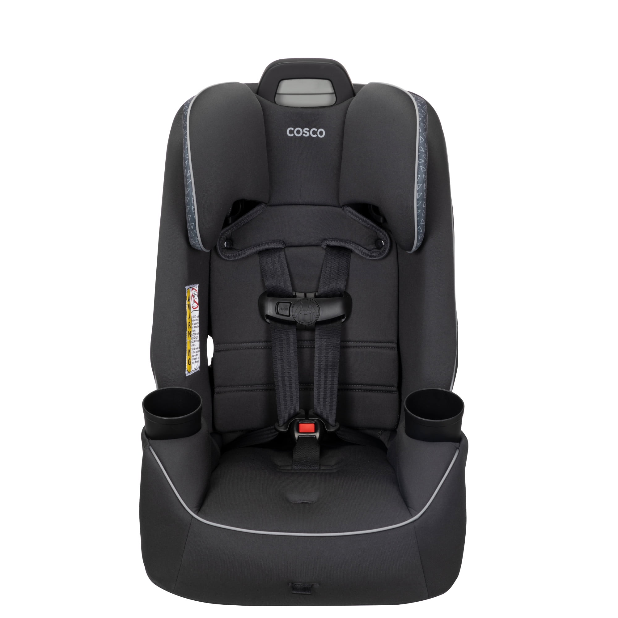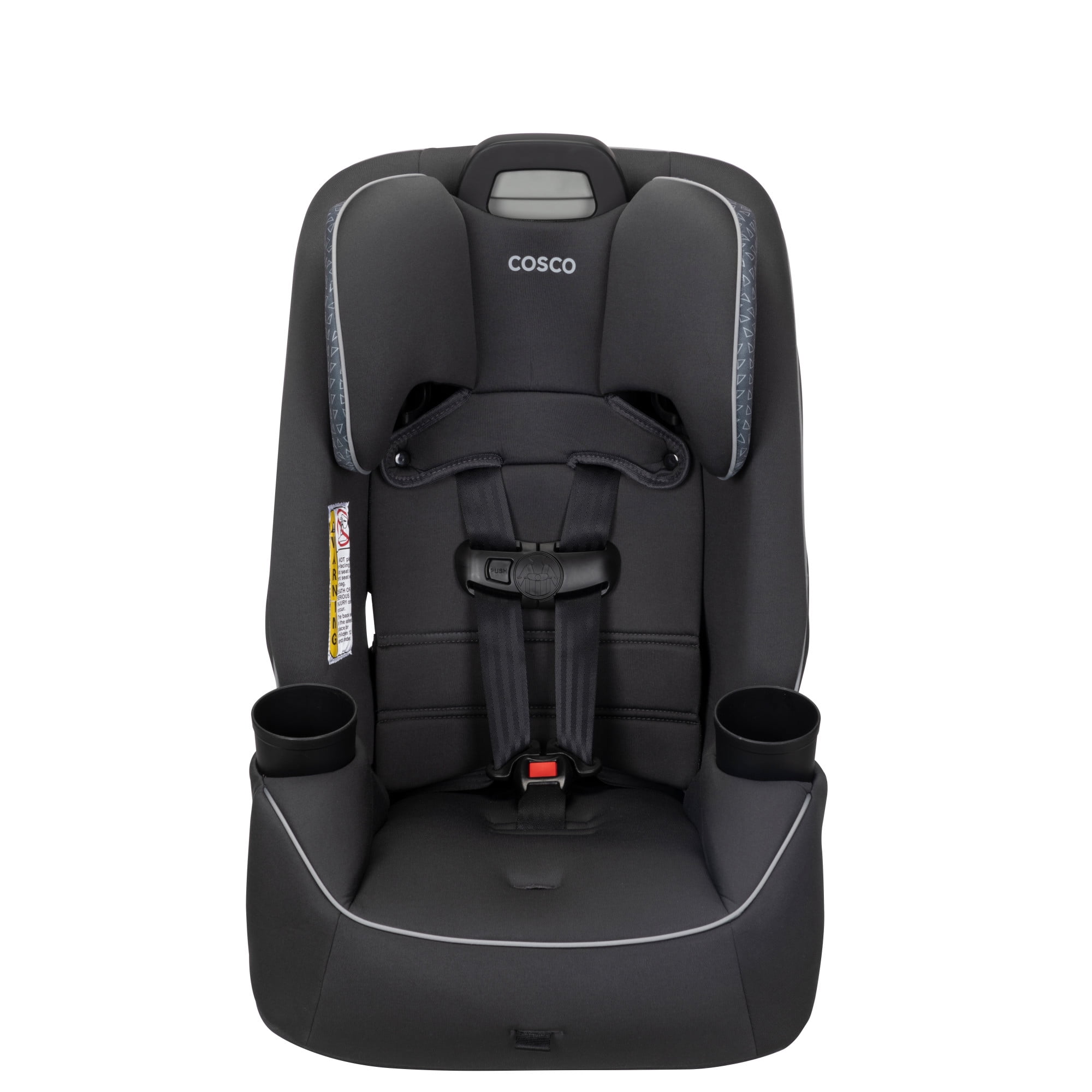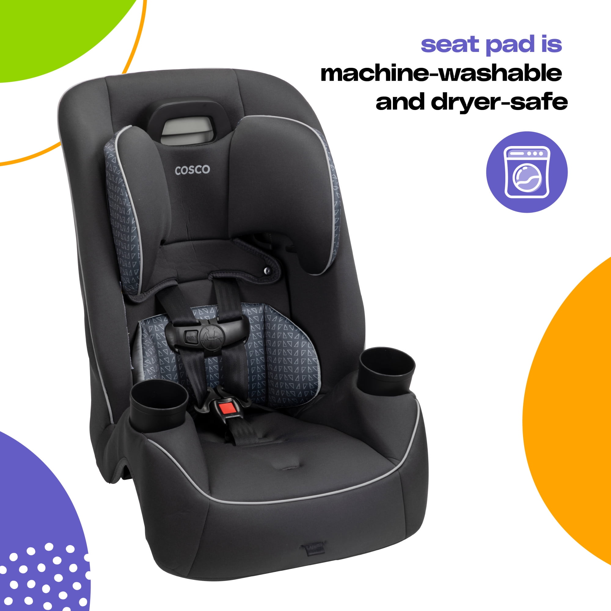 The Cosco Kids Easy Elite Slim All-in-One Convertible Car Seat in Grey Glyphs is a versatile solution designed to grow with your child. This all-in-one car seat is suitable from infant car seats to toddlers and big kids, making it a dynamic choice for your growing family. The car seat transitions from rear-facing for babies 5-40 lbs, 19-40″ to a forward-facing car seat for toddler, accommodating toddlers from 22–65 lbs, 29-49″. Additionally, it serves as a belt-positioning backed booster seat for kids weighing 40-100 pounds, 43-52″. This 3 in 1 car seat features a 5-point harness system with an easy up-front adjustment, providing a snug fit through each stage. Notably, it is a rear facing car seat for infants and also a forward facing car seat for toddlers and complements the journey of children up to the booster seat stage. The car seat’s compact design fits 3 across in most cars, making it ideal for families with multiple car seats. The headrest and harness adjust easily with one hand. Simple care is offered with its machine-washable seat pad and removable, dishwasher-safe cup holders. Actual fit may vary. Not all children will comfortably fit in the seat for the full weight and height ranges listed.