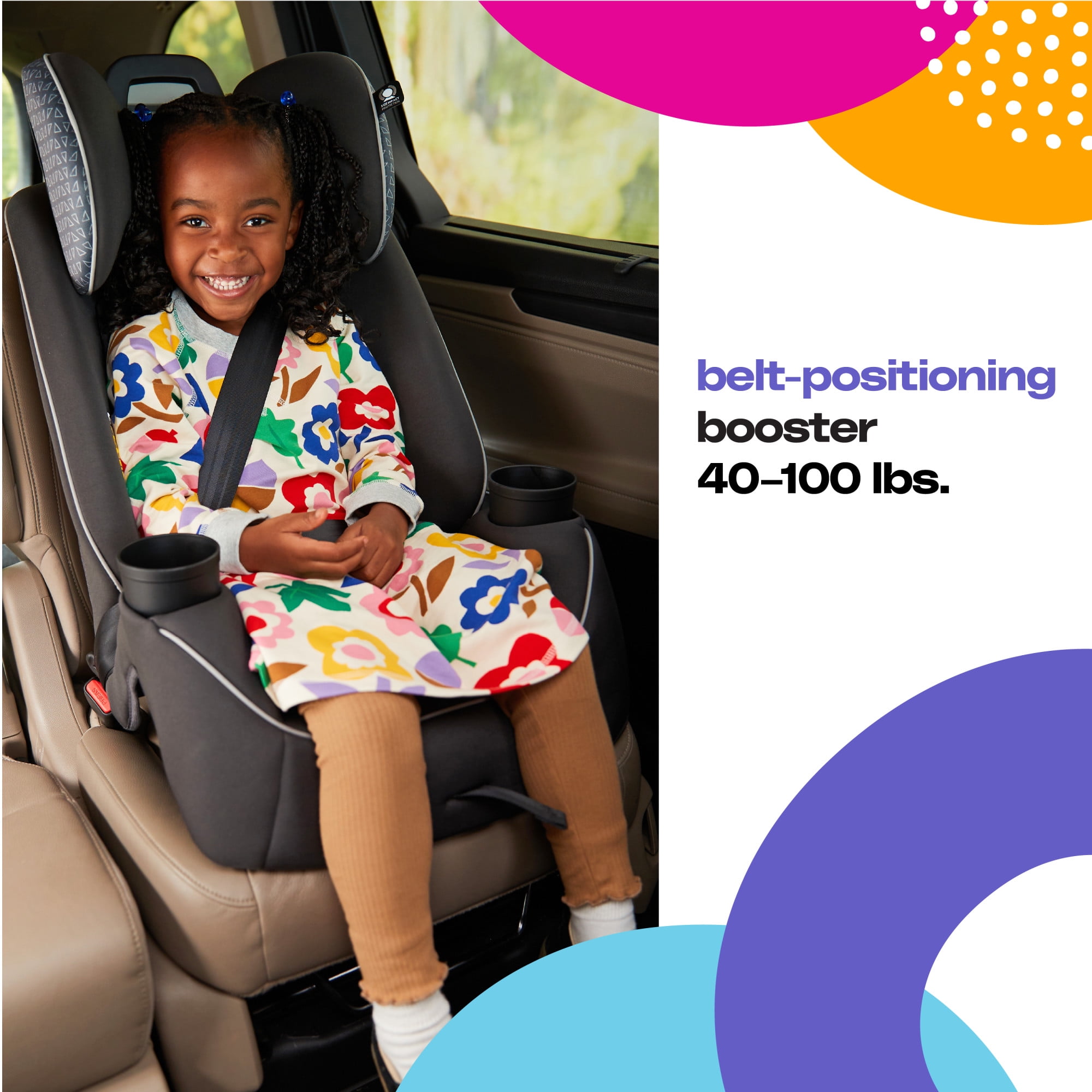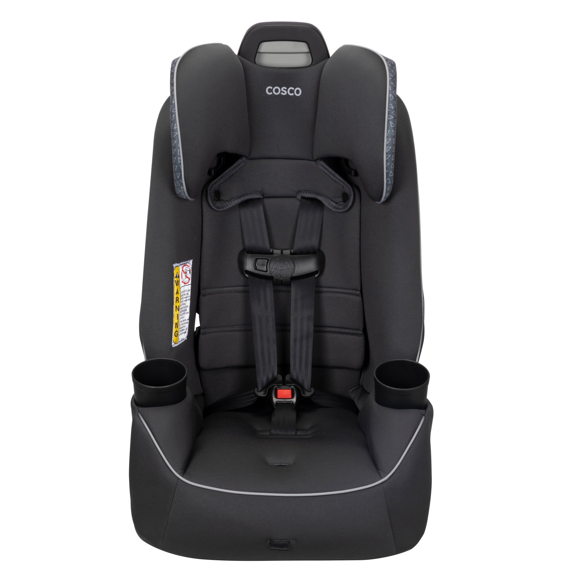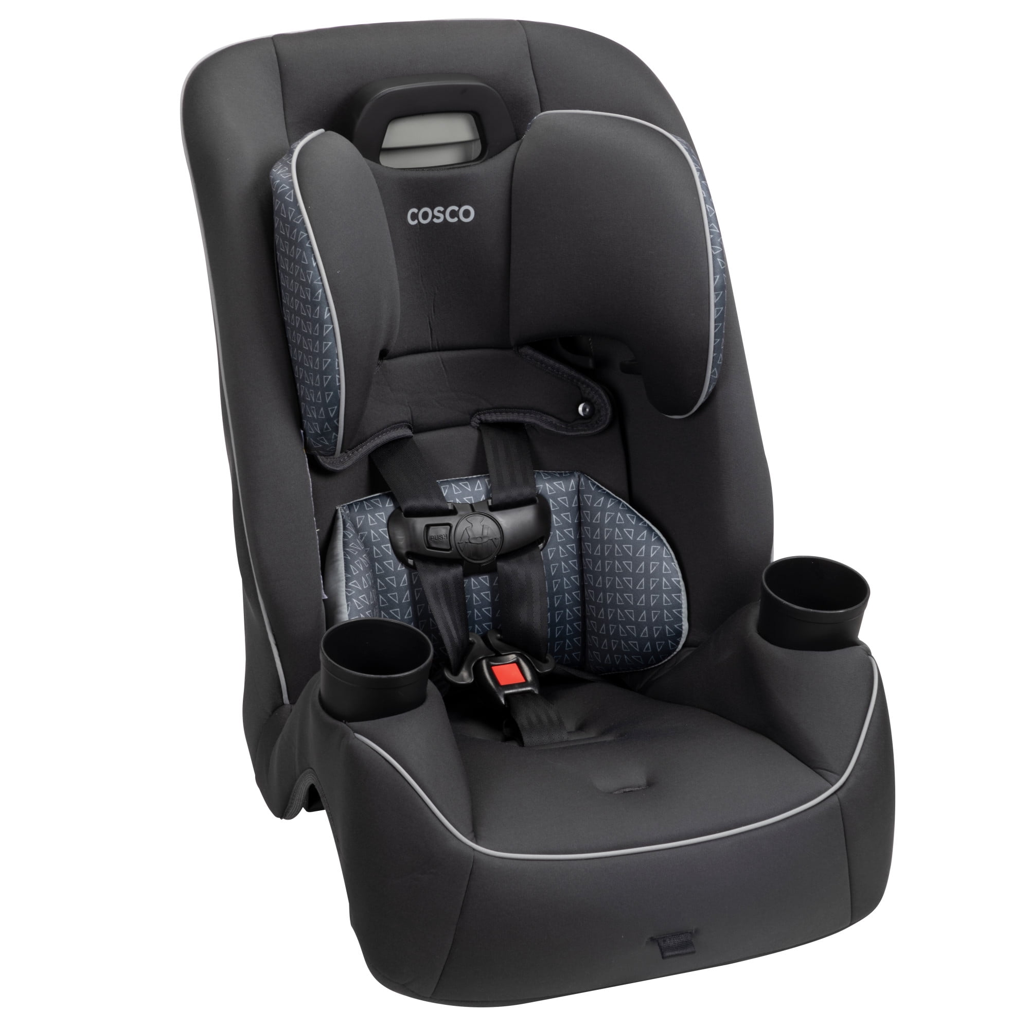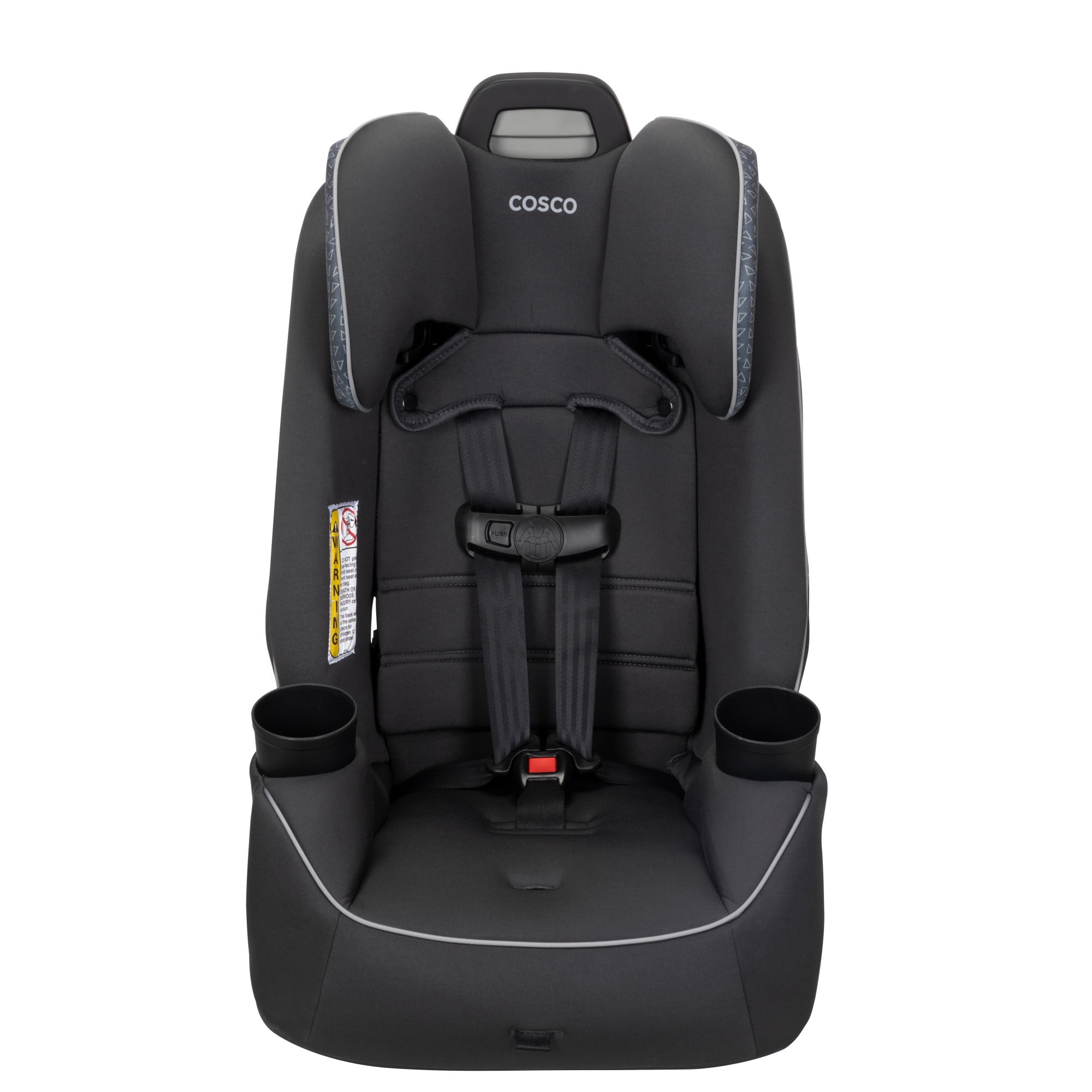 The Cosco Kids Easy Elite Slim All-in-One Convertible Car Seat in Grey Glyphs is a versatile solution designed to grow with your child. This all-in-one car seat is suitable from infant car seats to toddlers and big kids, making it a dynamic choice for your growing family. The car seat transitions from rear-facing for babies 5-40 lbs, 19-40″ to a forward-facing car seat for toddler, accommodating toddlers from 22–65 lbs, 29-49″. Additionally, it serves as a belt-positioning backed booster seat for kids weighing 40-100 pounds, 43-52″. This 3 in 1 car seat features a 5-point harness system with an easy up-front adjustment, providing a snug fit through each stage. Notably, it is a rear facing car seat for infants and also a forward facing car seat for toddlers and complements the journey of children up to the booster seat stage. The car seat’s compact design fits 3 across in most cars, making it ideal for families with multiple car seats. The headrest and harness adjust easily with one hand. Simple care is offered with its machine-washable seat pad and removable, dishwasher-safe cup holders. Actual fit may vary. Not all children will comfortably fit in the seat for the full weight and height ranges listed.