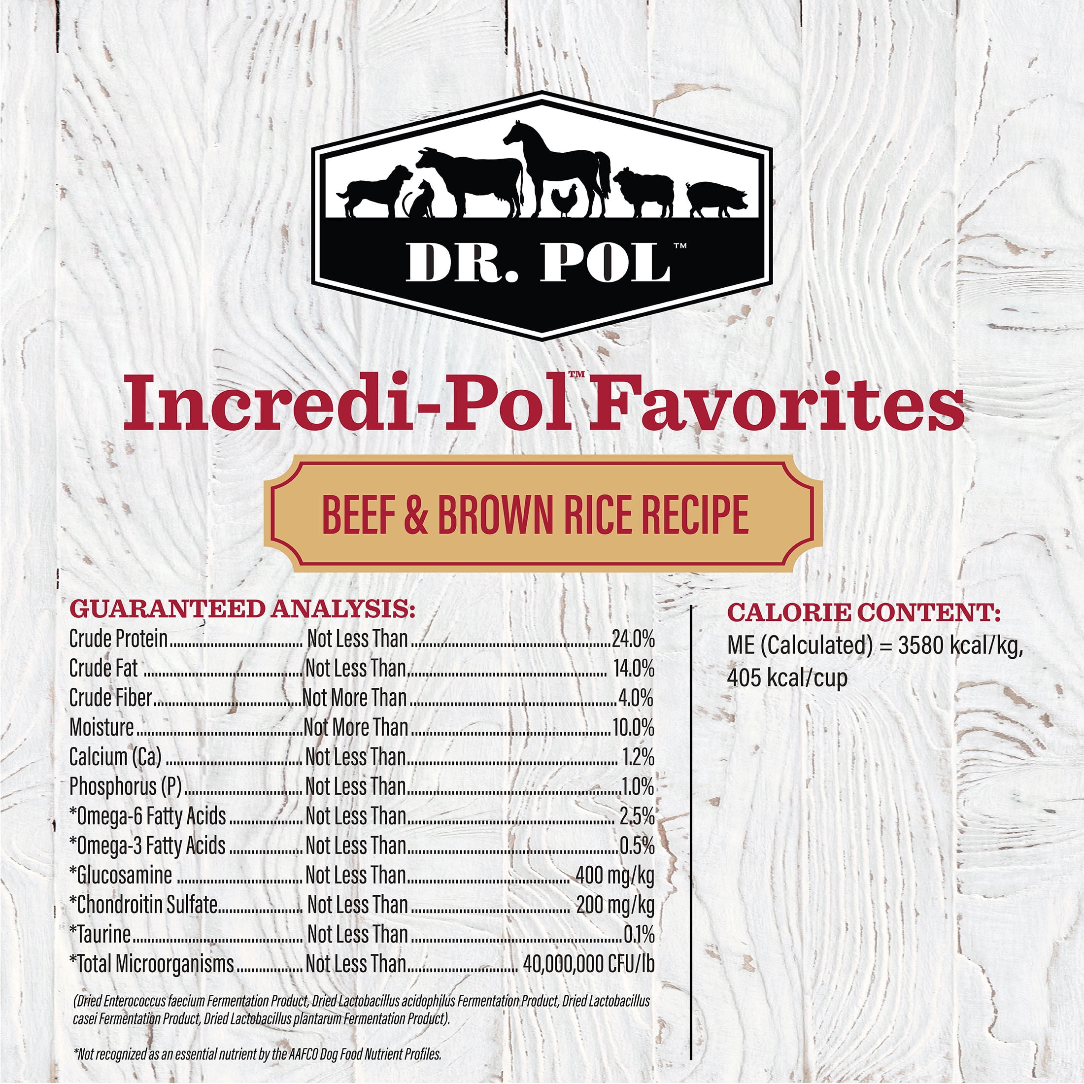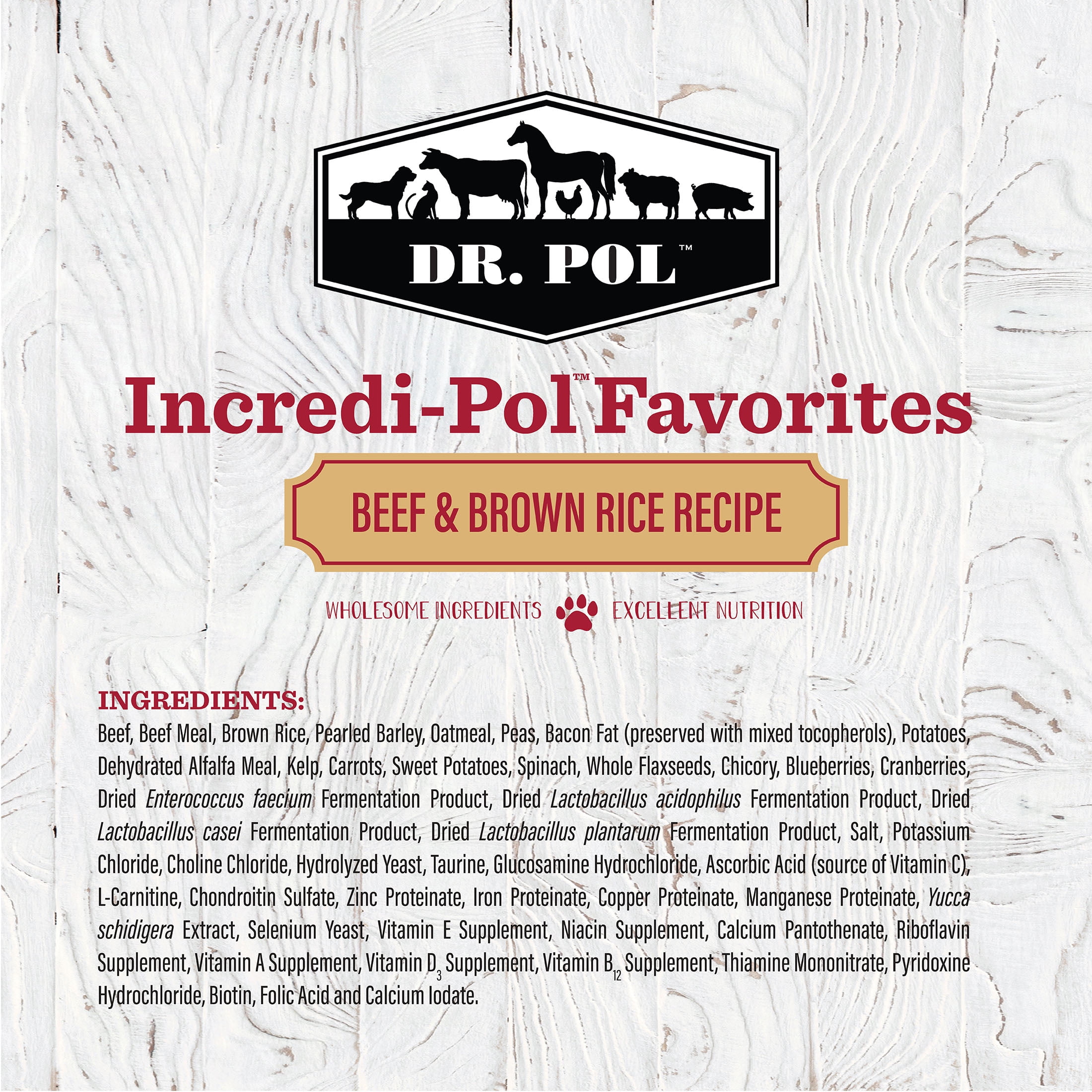 Dr. Pol Incredi-Pol Favorites Beef and Brown Rice Recipe Dog Food is an irresistibly tasty, nutritionally complete kibble your pup will love! Real beef is the #1 ingredient, offering a high-quality source of protein to maintain muscle function. Every bite is packed full of vitamins and minerals, with brown rice to support digestion and vegetables to strengthen your dog’s immune system. Complete with natural ingredients, you can feel confident that you are giving your dog a balanced, healthy food that will keep them running back for more! With more than 50 years of experience, compassion and love for animals, Dr. Pol’s favorite animal is still a healthy animal. That’s why Dr. Pol Incredi-Pol Favorites are incredible foods – they’re veterinarian formulated with real ingredients for incredible pets.