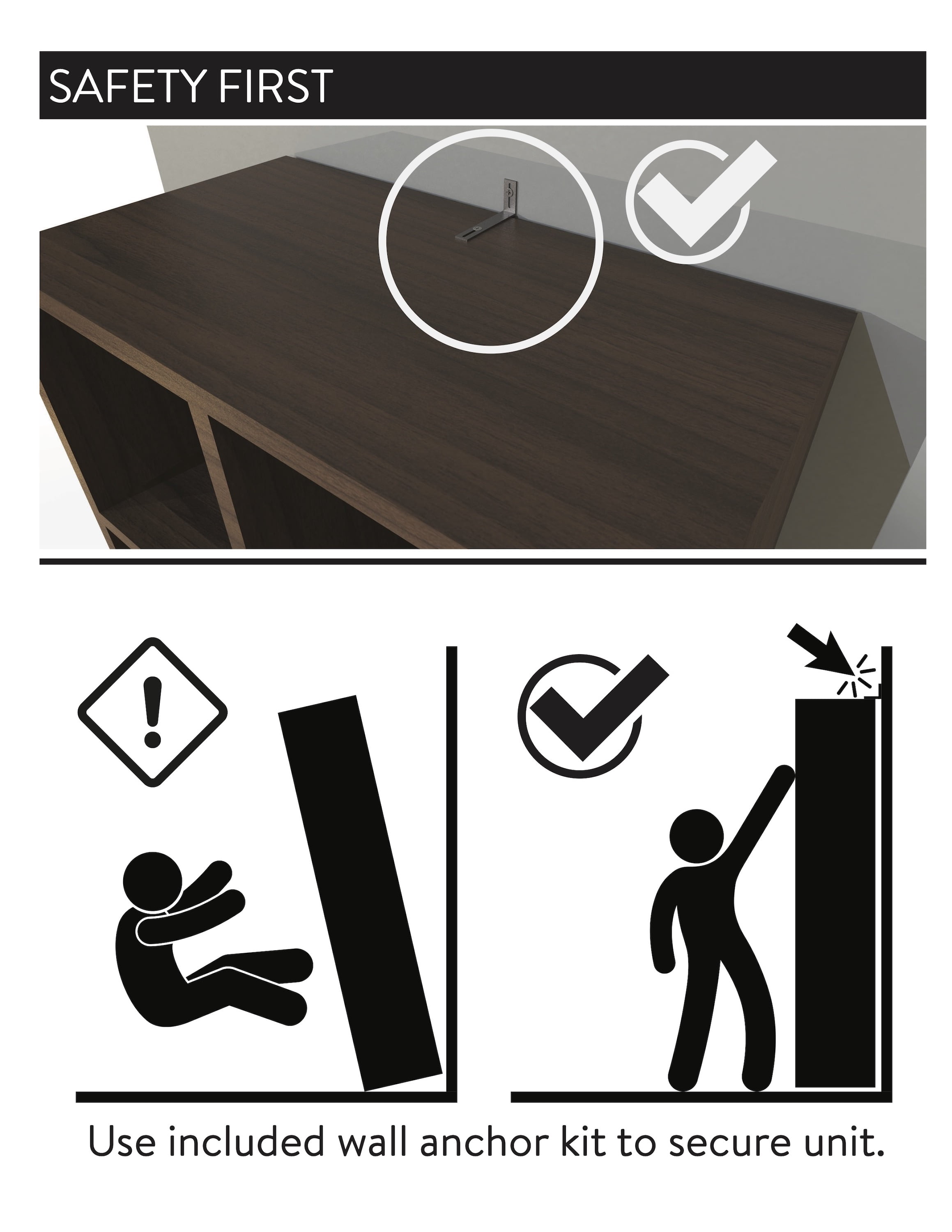 Stylish 6-cube organizer bookcase Features six 11″ x 11″ x 11″ open storage compartments Can be used vertically or horizontally to fit your space and needs Dimensions: 23.7″ W x 11.73″ D x 35.39″ H (28.6 lbs) Designed with 3 open-back shelves and 3 closed-back cube shelves Compatible with Mainstays 10.5″ x 10.5″ collapsible storage bins (sold separately) Top panel and 2 middle shelves support up to 22 lbs each; bottom panel supports up to 33 lbs Materials: manufactured wood Finishes available: White (MS5336278612010), Black (MS5336278612009), Espresso (MS5336278612021), Spring Pine (MS5336278612019) and Warm Walnut (MS5336278612020) Attaches to the wall with included hardware for safety Easy to assemble with included instructions and assembly video guide (hammer & Phillips head screwdriver required) Package size: 39.49″ x 14.41″ x 3.39″ (30.80 lbs) Assembly Instructions Assembly Video