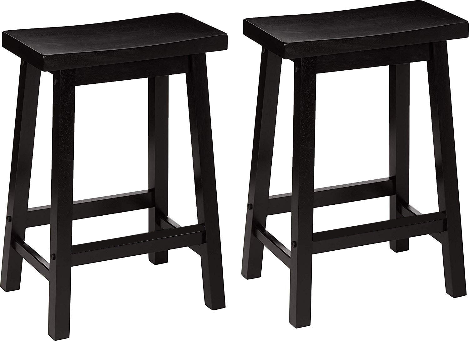 Mainstays Indoor Counter Height Backless Saddle Wood Stool Set of 2 In Black, set of two 24 inch counter height backless saddle stools can be stored under the counter table when cleaning your home bar. Easy to assemble, includes all necessary hardware and installation manual in the package. Comfort is key when it comes to any bar stool. You want one where you can sit for hours without any issues. These counter height chairs stand at 24 inches, and they’re the perfect complementary pieces to any counter height bar, table, or workspace. Counter height stools like these are quite durable. These contemporary gems hold up to 300 lbs. of even weight distribution. Made from solid wood, they’re well-constructed and very sturdy. They also contain four square legs, which are great for balance. Mainstays Indoor Counter Height Backless Saddle Wood Stool Set of 2 In Black recommended to use indoor. Mainstays Indoor Counter Height Backless Saddle Wood Stool Set of 2 In Black made up 100% solid rubberwood.