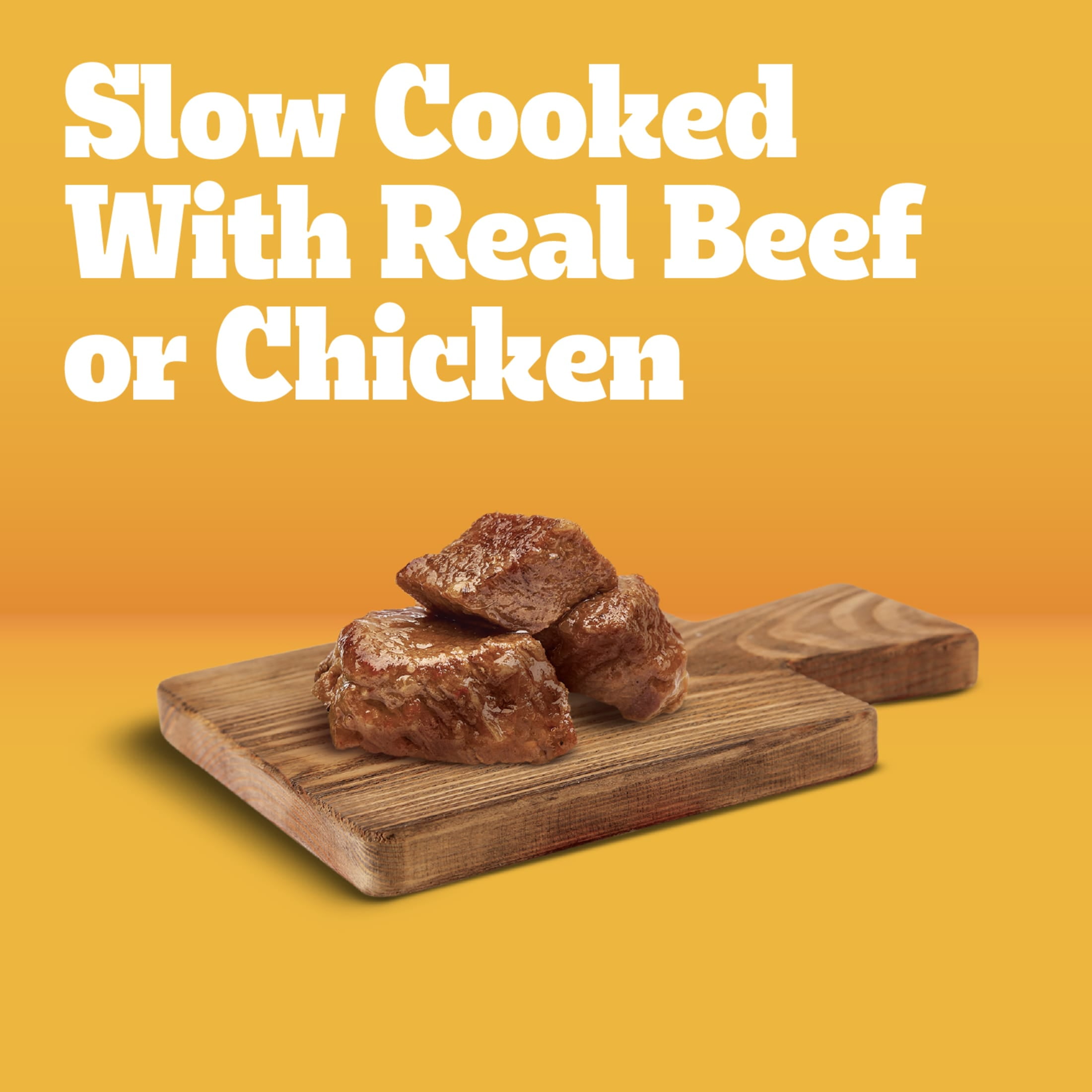 Made with real chicken or real beef, serving a flavor your dog will love. 100% complete and balanced food for adult dogs. Contains no added sugar, no high fructose corn syrup, and no artificial flavors. Can be served as a topper, mixed with dry dog food, or enjoyed as a complete meal. Made in factories committed to zero waste to landfill.