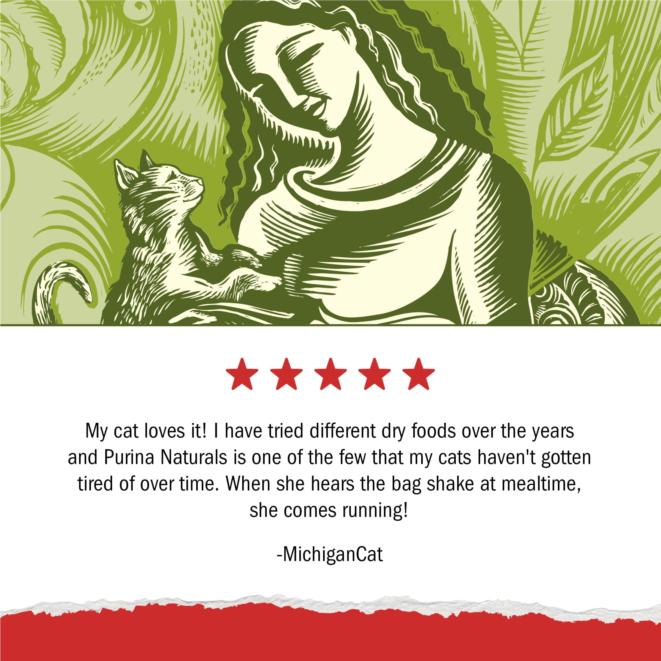 Purina Cat Chow Natural Dry Cat Food, Naturals Original, 18 lb. Bag Purina Cat Chow Naturals Original Dry Indoor Cat Food, Offer your cat a great tasting meal they’re sure to come running for with Purina Cat Chow Naturals Original With Added Vitamins, Minerals and Nutrients dry cat food Crafted with nutrition made with high-quality ingredients like real chicken as the #1 ingredient, this high-protein cat food recipe is also made with real salmon and whole grains, delivering nutrition both you and your cat can appreciate Each serving of this Purina Naturals cat food helps your feline maintain healthy skin and a shiny coat by providing them with wholesome nutrition and essential fatty acids, including omega-6 Backed by high-quality nutritional standards and food safety requirements Delivers 100 percent complete and balanced nutrition including omega-6 fatty acids for skin and coat health Backed by high-quality nutritional standards and food safety requirements