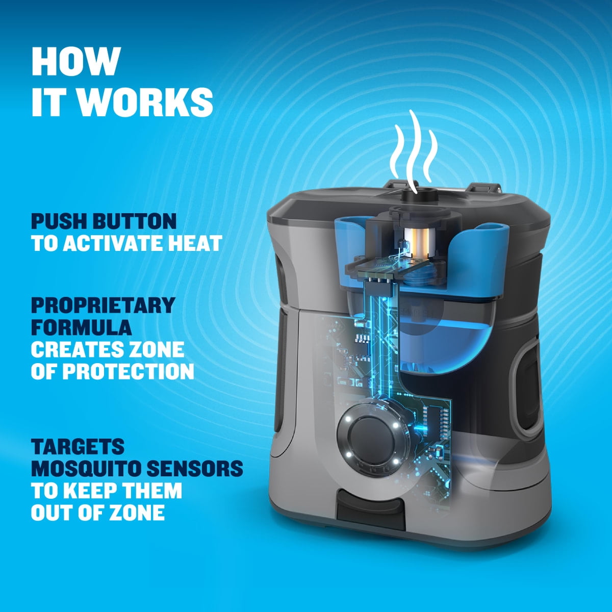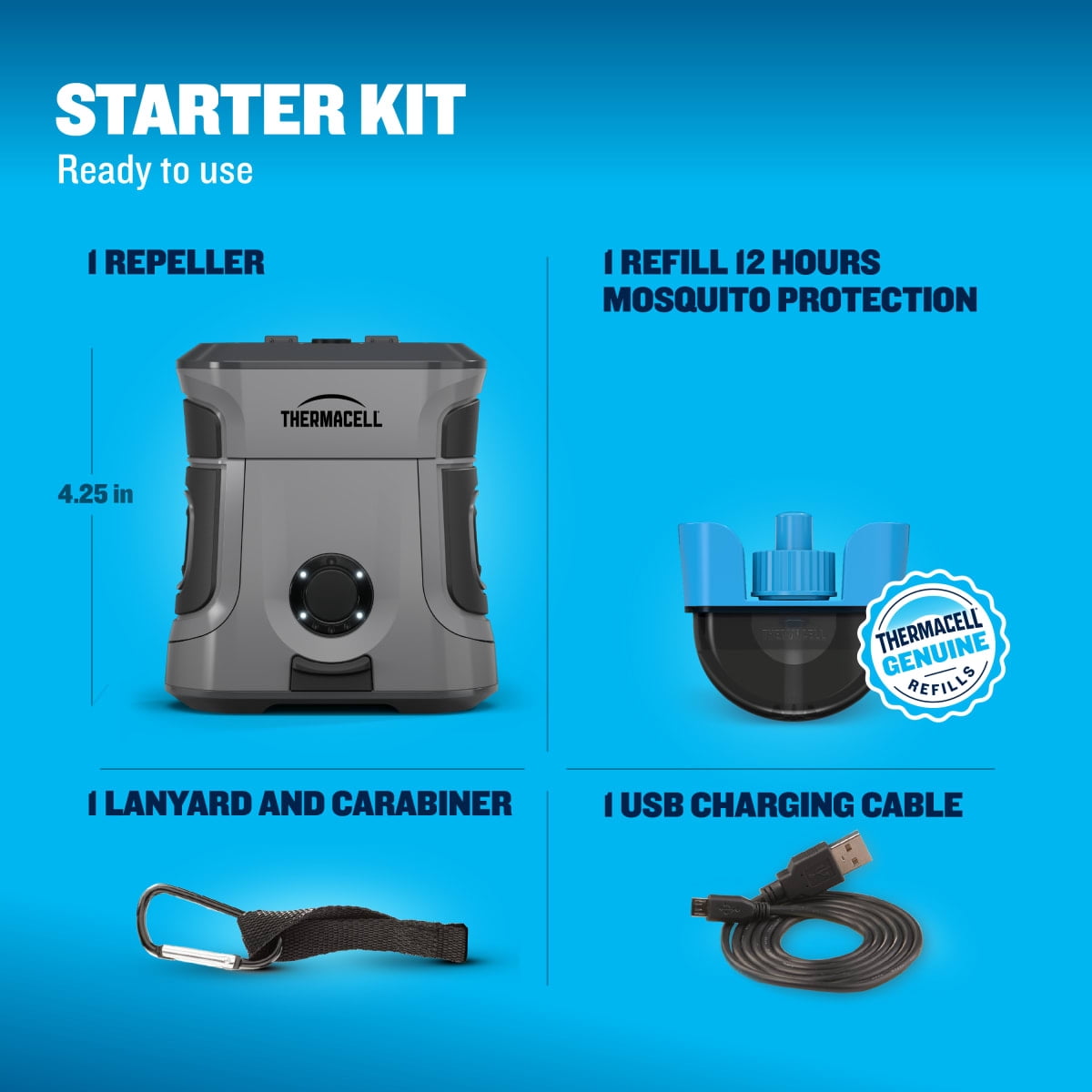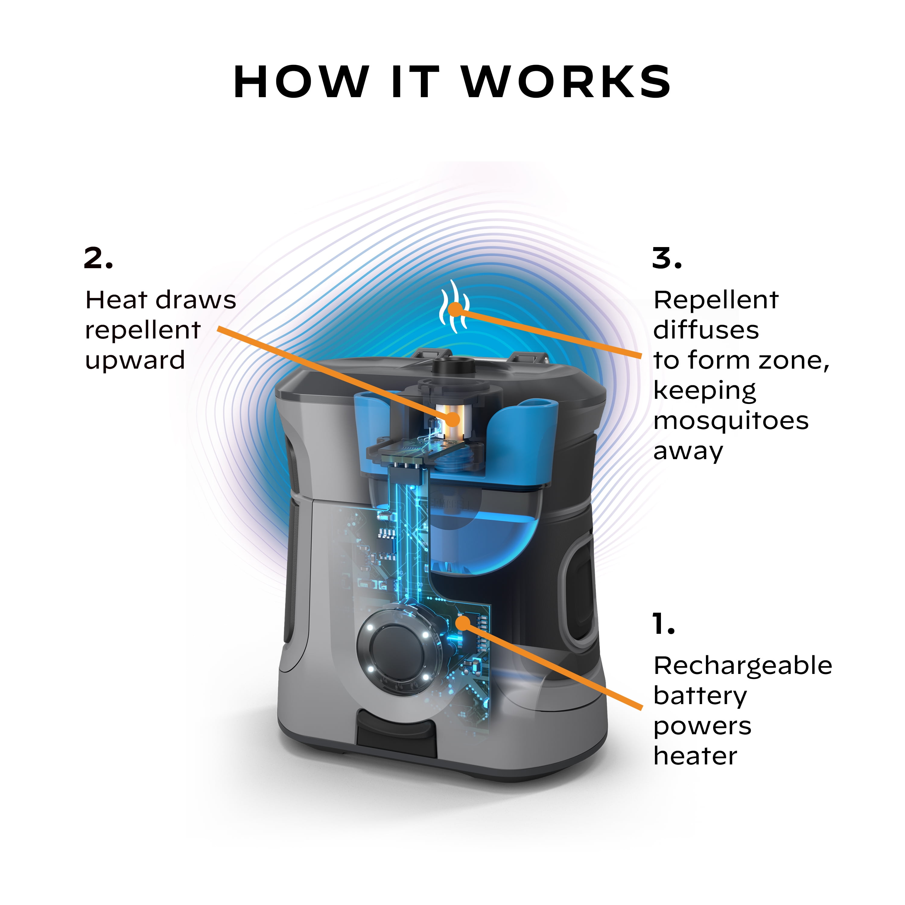 Creates a 20-foot zone of mosquito protection around you Ideal for backyard, poolside, patio, and beyond Easy to use, people and pet friendly Works fast, max protection in 15 minutes With a rechargeable lithium ion battery, protection works consistently for 5.5 hours without weakening over time Proprietary formula precisely targets mosquito sensors, driving them away Pack includes 1 repeller, 12 hours of repellent refill, USB-C charging cable Allowed to bring on airplanes