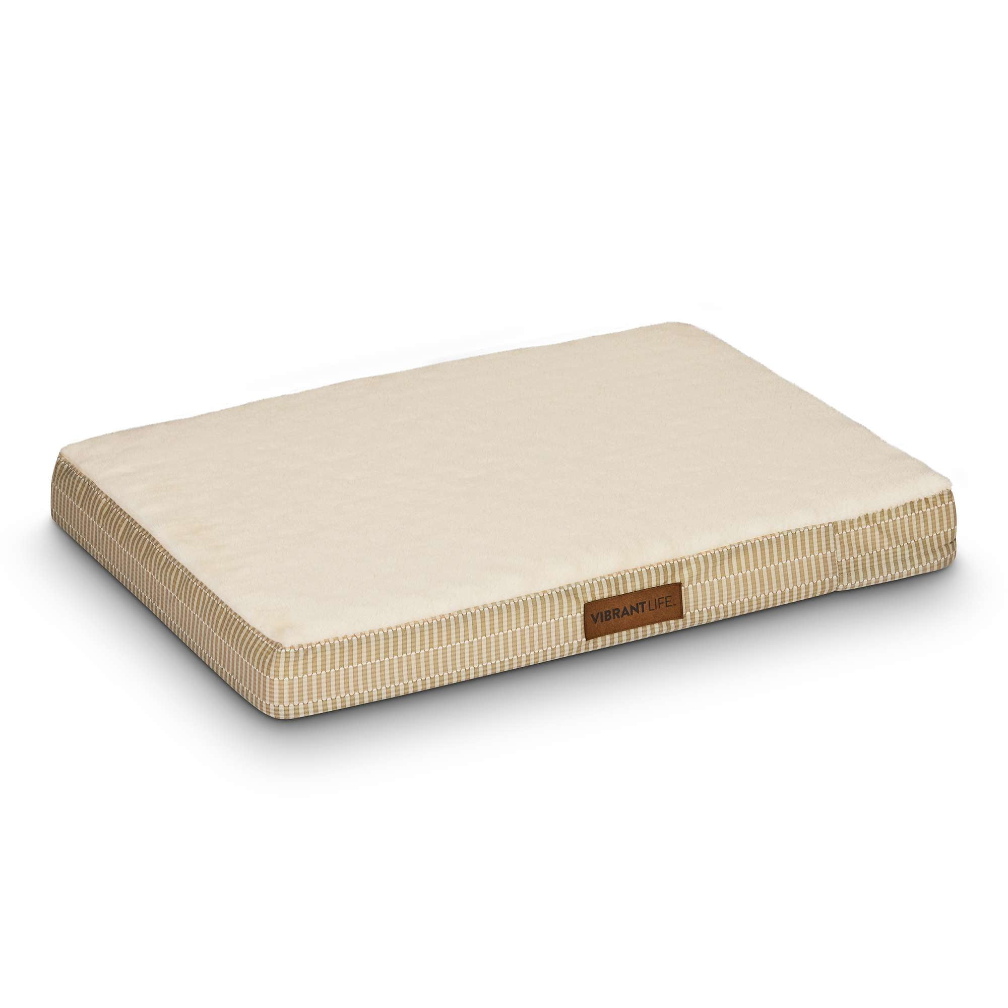 Vibrant Life Orthopedic Dog Bed, Medium, Tan 28″ x 20″ Dimensions: 28″ x 20″, suitable for medium-sized dogs Orthopedic foam for joint support Soft sleep surface for comfort Removable, machine-washable cover for easy care