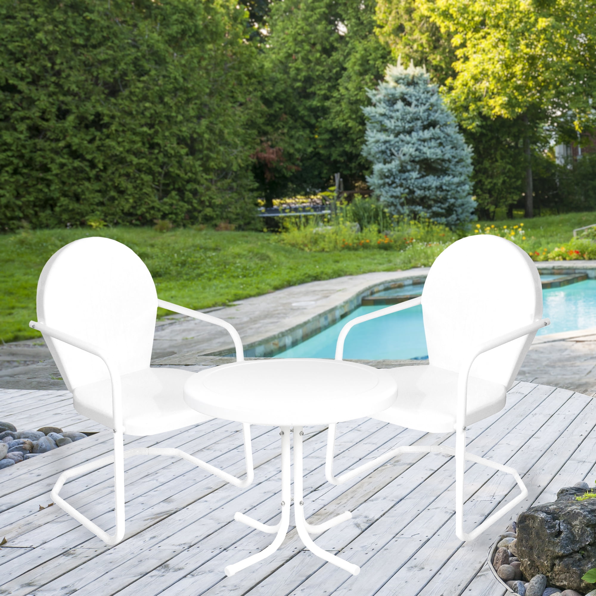 Just like those that your parents and grandparents had growing up. With its weather-resistant powder-coated finish you will have years to enjoy this classic set. Perfect for enjoying a glass of wine on the patio with family and friends or a good book by yourself.