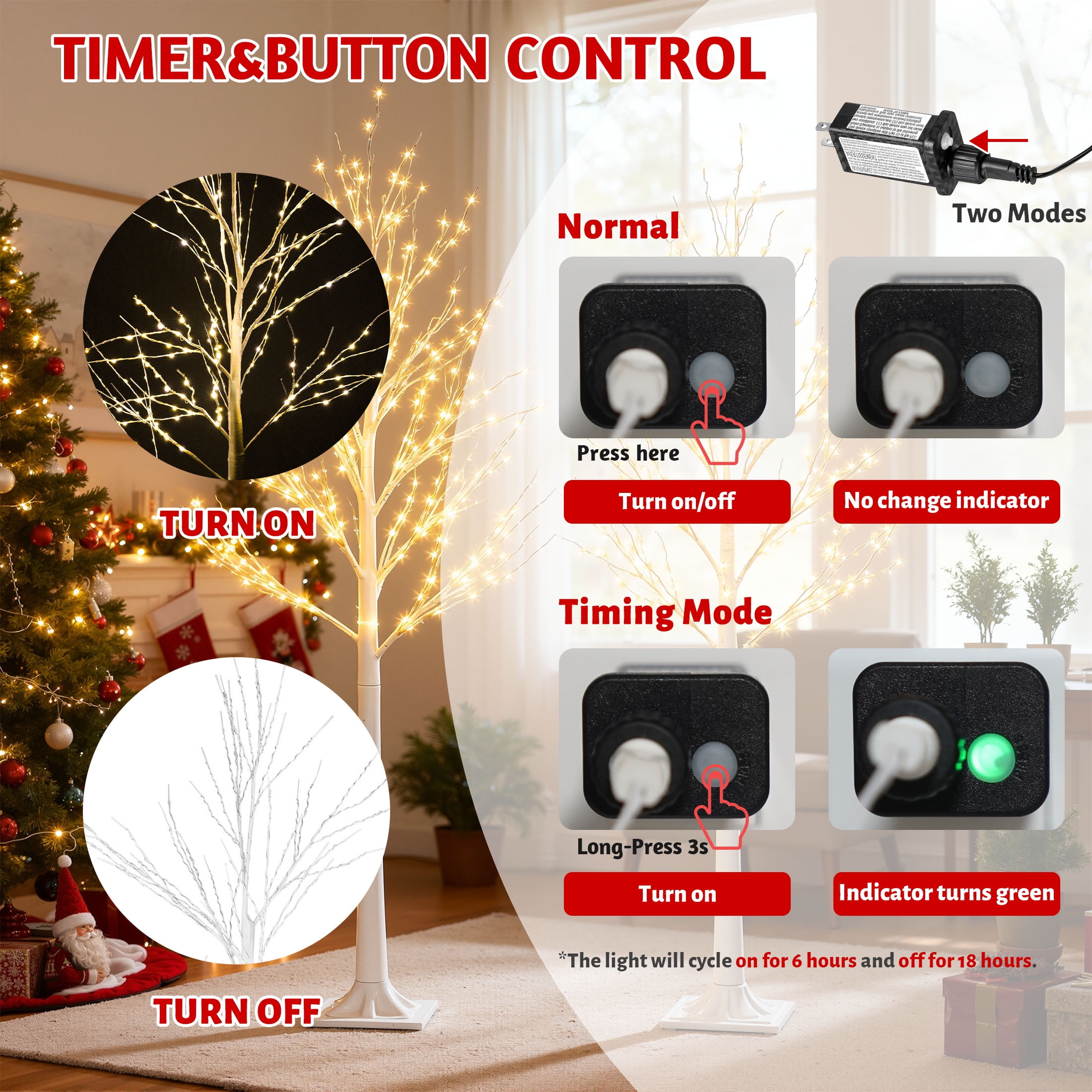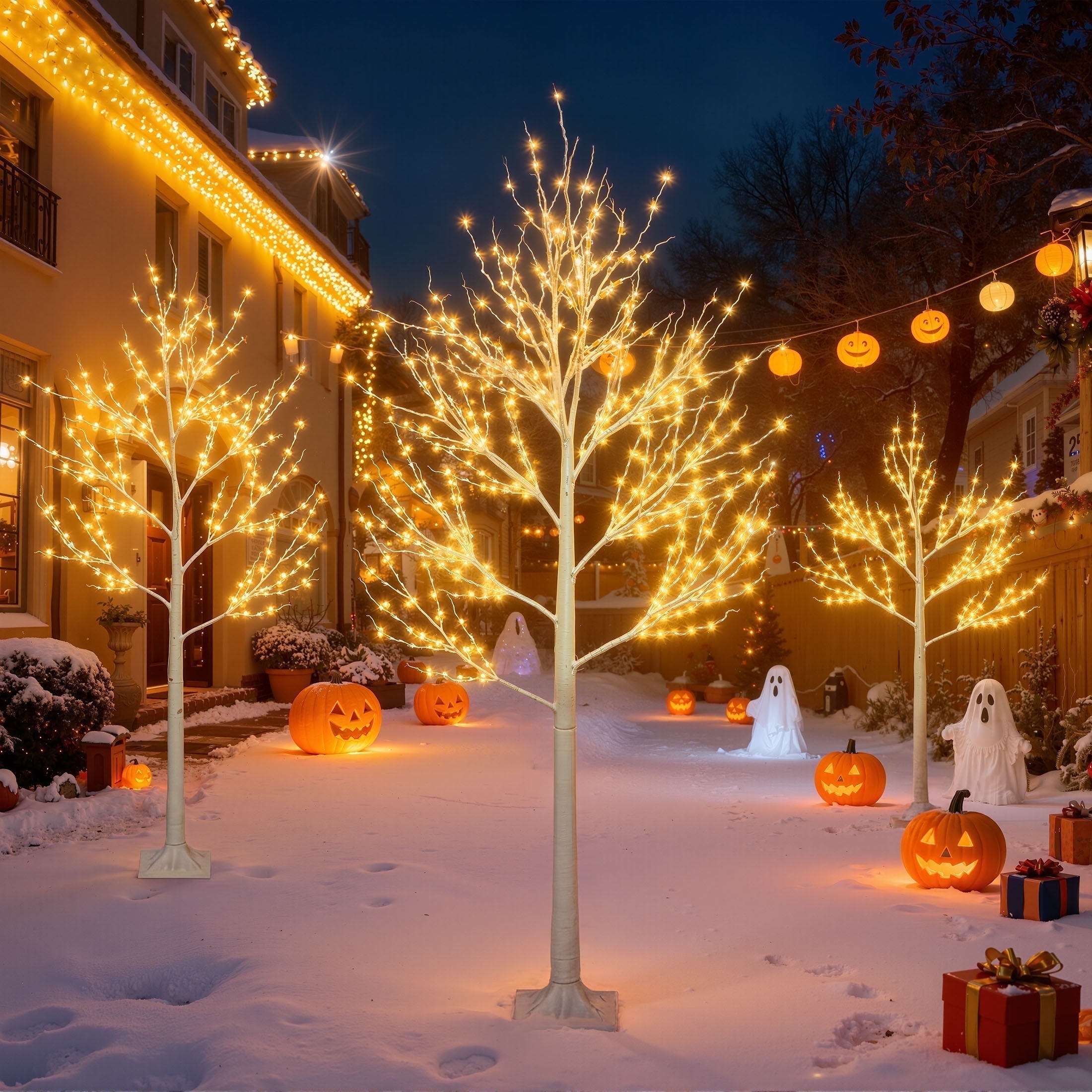 Includes 3 Pieces White Birch – Three suitable heights: 4ft, 5ft, and 6ft, perfect for various occasions such as Christmas, Easter, Valentine’s Day, weddings, and more. Suitable for both indoor and outdoor use Exquisite Design – Handcrafted with attention to detail, featuring a birch painting finish that showcases the beauty of nature and winter High-Quality Decoration – The LED birch trees are designed for year-round use, providing a charming light color and unique branch design Sturdy Branches – Durable branches can support various types of decorations, making it a classic alternative to traditional Christmas trees Energy Saving & Timer – Equipped with energy-efficient LED lights that last up to 25,000 hours, along with a timer function for convenience