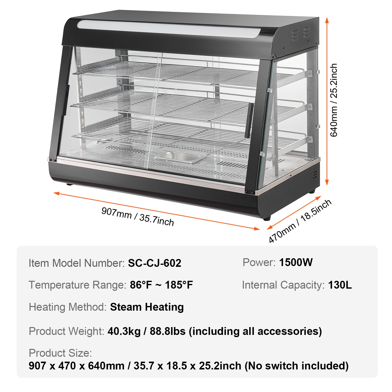 Commercial Food Warmer Display: A food warmer display that integrates insulation and display functions is essential for every restaurant; Choose VEVOR’s food warmer display to take your business to the next level;; [Package Content] 1 x Commercial Food Warmer; 4 x Black T-shape Handle; 1 x Hexagonal Tool; 8 x Glass Clip; 2 x Side Glass Panel; 4 x Sliding Glass Door; 1 x User Manual