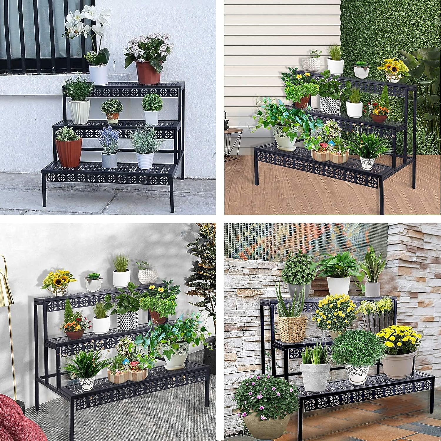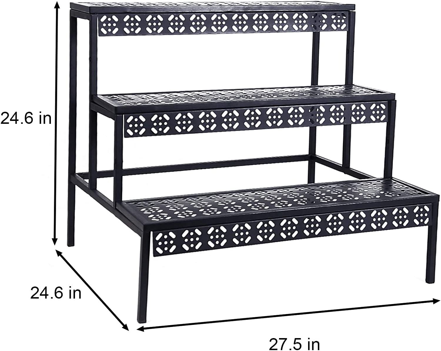 This is our brand new 3 tiers flower plant display stand. Made of durable steel construction with a sleek Black Finish, which can be placed indoors under window sills to absorb sunlight or outdoors in gardens and hallways. this 3 tier display rack complements any home decor and provides the perfect to display decorative items. You can place your favorite potted plants or your shoes handbags and other items on it. Each of its layers is made with a fine carving process.The modern style and the beautiful appearance will decorate your home, deck, or patio. Specification Material: Metal Color: Black Weight: 13.23 lb Dimensions: 27.6″L x 24.6″W x 24.6″H. 3 Tiers Functional Plant Stand Easily fit more plants with this solution This 3 tiers plant stand is attractive sturdy and multifunctional for you to organize plants You can use this plant rack on the balcony, in the living room, bedroom, office or wherever you need it. It is very stable and can also be used as a shoe rack. Whether placed indoors or outdoors, it is very beautiful and decorative.