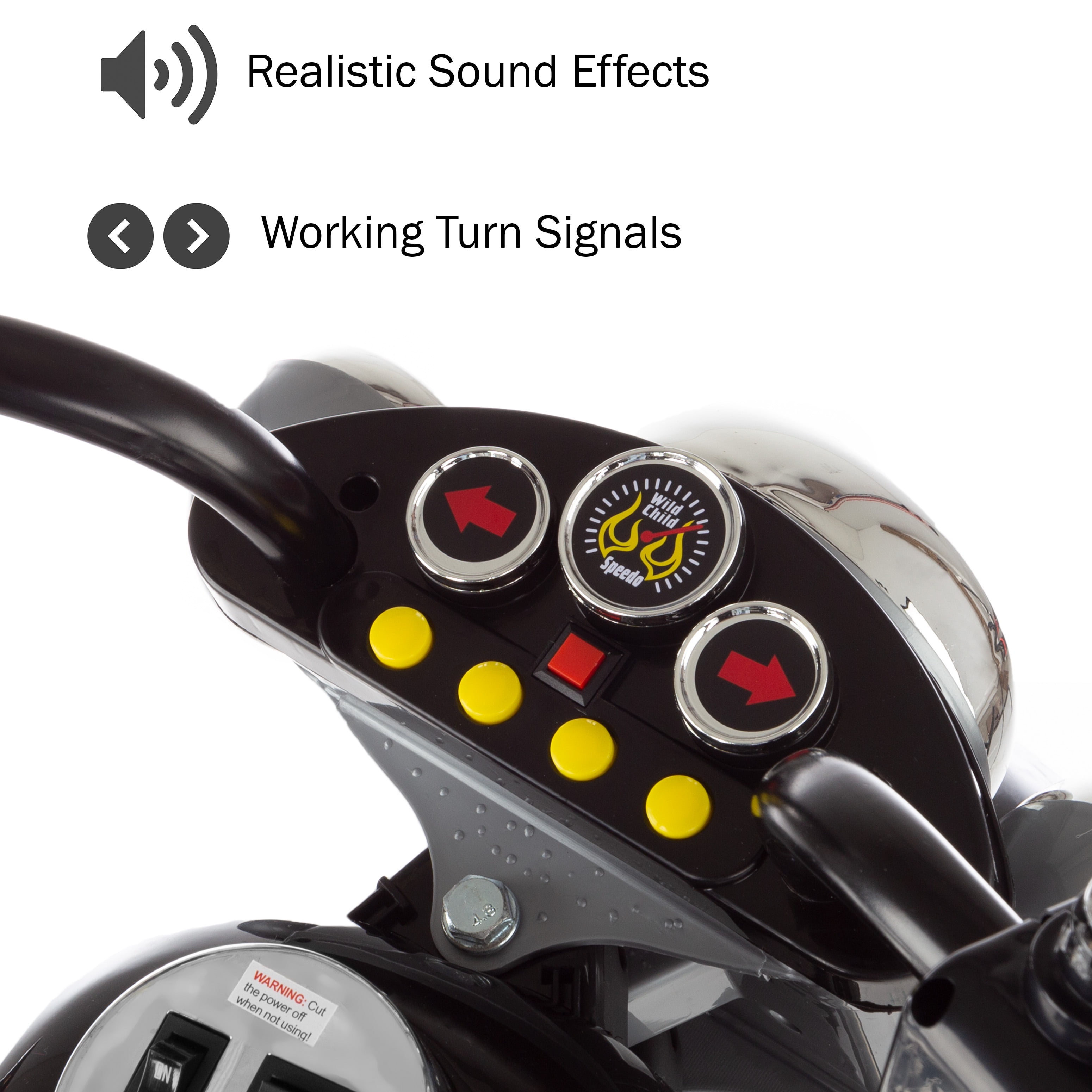 Enjoy the roads with this Rockin’ Rollers Road Warrior Motorcycle 6-Volt Battery-Powered 3-Wheel Ride-On. With its ultimate motorcycle-like style, chrome-color highlights and V-Twin styling, kids can experience the excitement of motorcycle riding in their own driveway. Give your kid the chance to be the envy of every kid on the block thanks to its sharp, colorful decorations. It will bring excitement to every kid’s playtime, while taking kids on a thrilling adventure with a top speed of 3 mph. This 6-volt battery powered ride on motorcycle has buttons for sound effects and a headlight that lights up for increased visibility in twilight hours. It’s also capable of going in reverse to help avoid collisions. The Rockin’ Rollers Road Warrior 3-Wheel Ride-On is easy for adults to put together and includes the battery and charger needed for operation. This ride-on is capable of supporting most children who weigh up to 55 lbs.