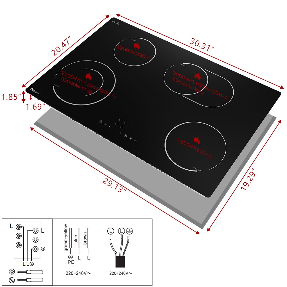 30-in 4 burners Smooth Surface (Radiant) Black Electric Cooktop with Bridge Element