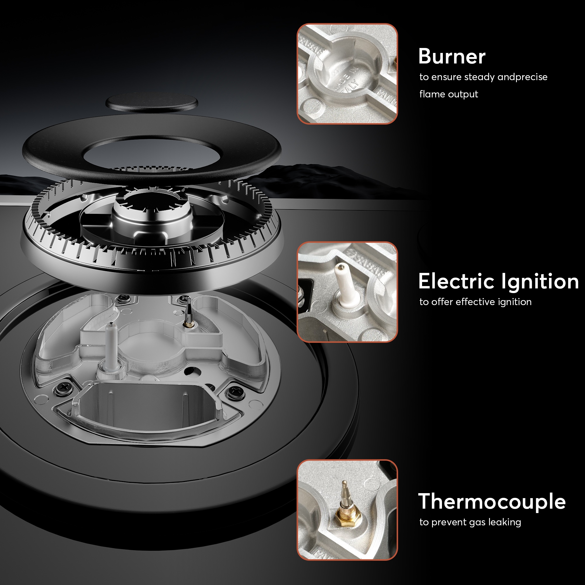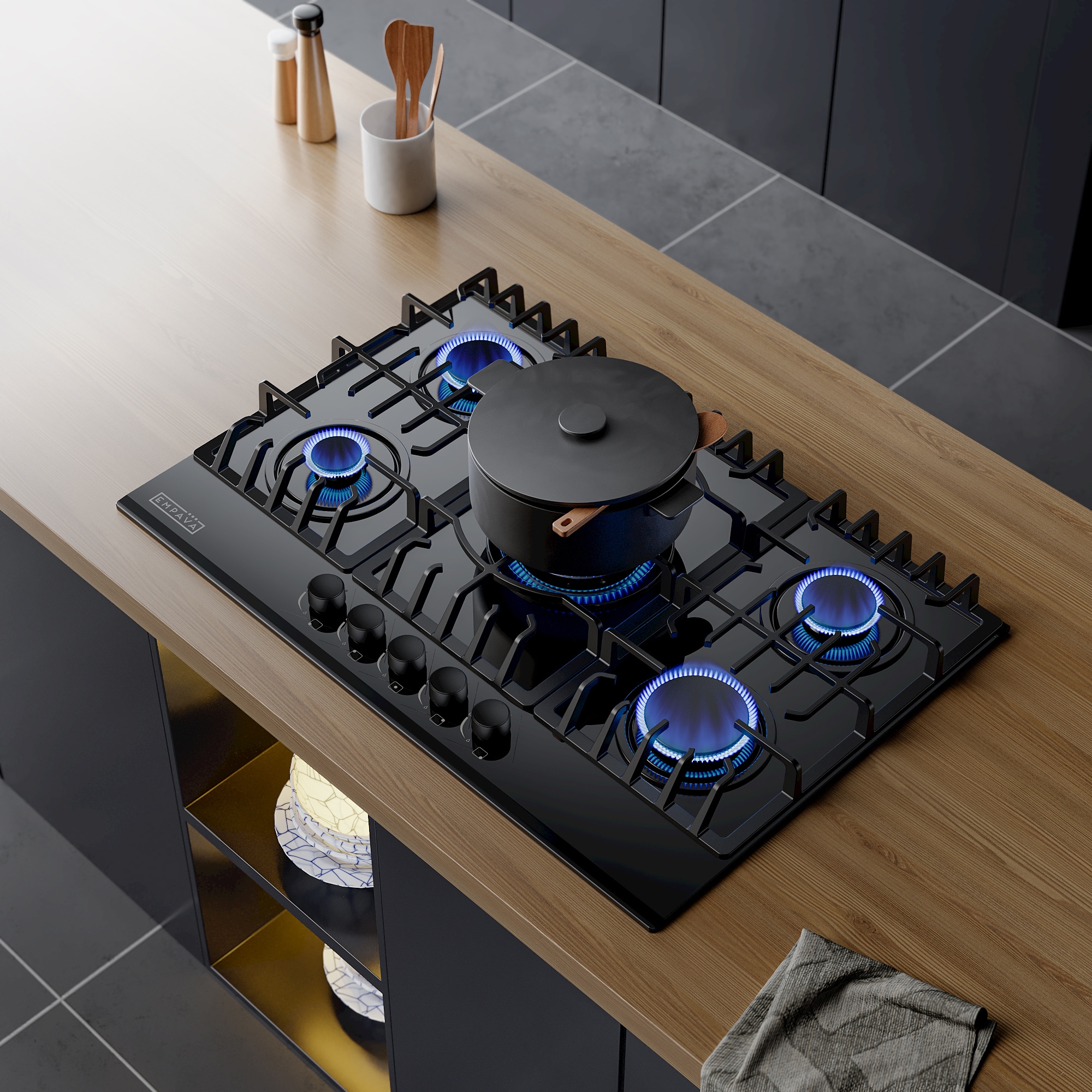 The Empava 30-inch gas cooktops with the CSA certified is a perfect combination of style and practicality. Constructed with tempered glass to prevent dents and scratches for long lasting use in your busy kitchen. The gas cooktops feature commercial-grade components (1x 13000-BTU burner, 1x 10200-BTU burner, 2x 6000-BTU burners and 1x 3800-BTU burner), the power burner designed to reach maximum temperatures quickly as well as a simmer burner for more delicate, controlled heat. The metal constructed knobs and the heavy-duty cast iron grates can be cleaned in the dishwasher. During the past years, gas cooktops by Empava appliances have been a very popular choice for kitchen upgrades and new builds, allowing you to cook restaurant quality meals from the comfort of your own home.
