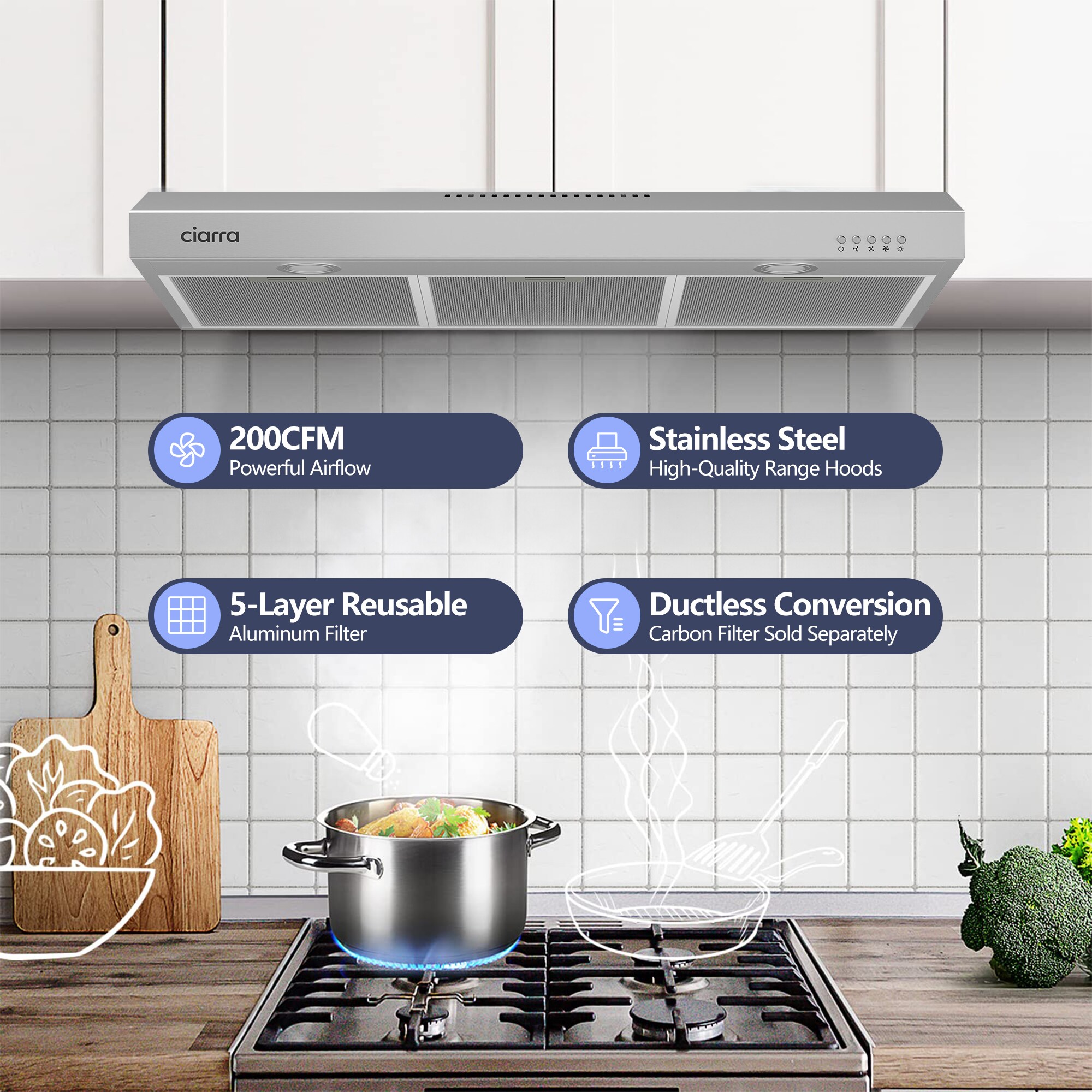 30 inch Convertible 200-CFM Stainless steel Under Cabinet Range Hood