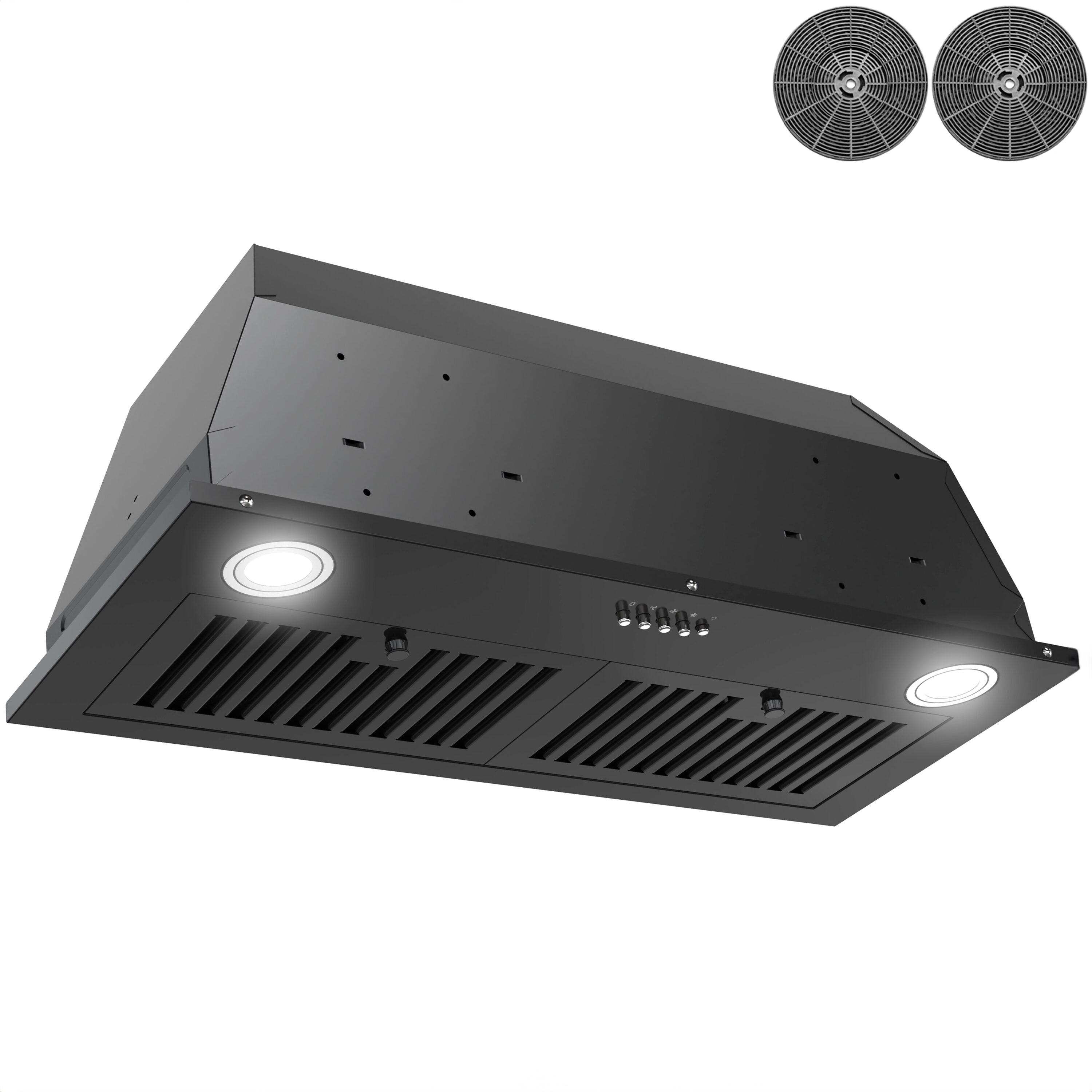 Transform your kitchen’s ambiance with the AKDY 30-inch Insert Range Hood. Its unique design adds a modern flair, complementing your space effortlessly. Effortlessly manage fan speeds through the intuitive Push Button Control, delivering a powerful 319 CFM to combat kitchen odors. Experience culinary brilliance under the radiance of 1.5-watt LED lights and keep your environment pristine with easily maintainable grease filters. Designed for convenience, it includes the carbon filter kit CF0011 for ductless installation, making clean air and contemporary style accessible.