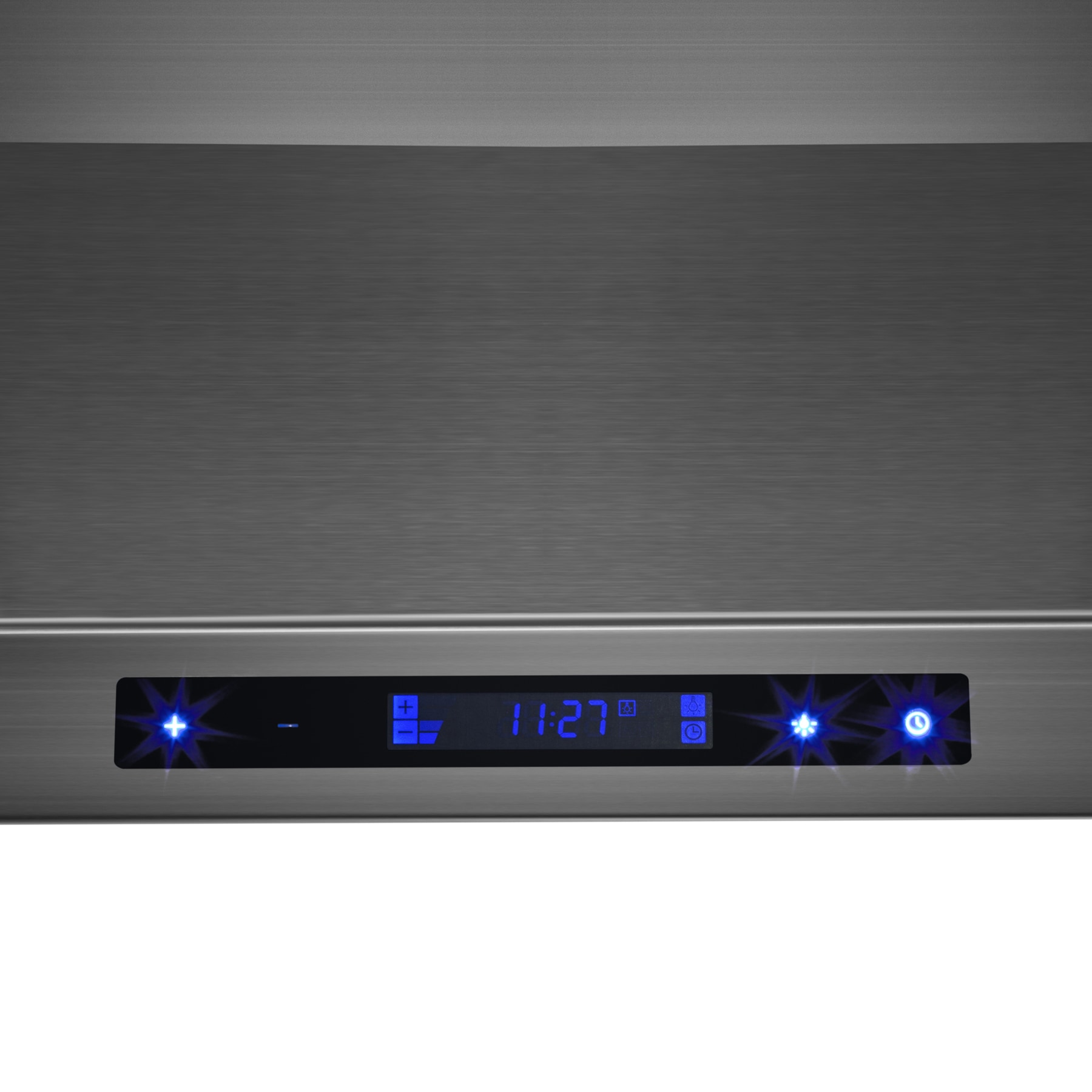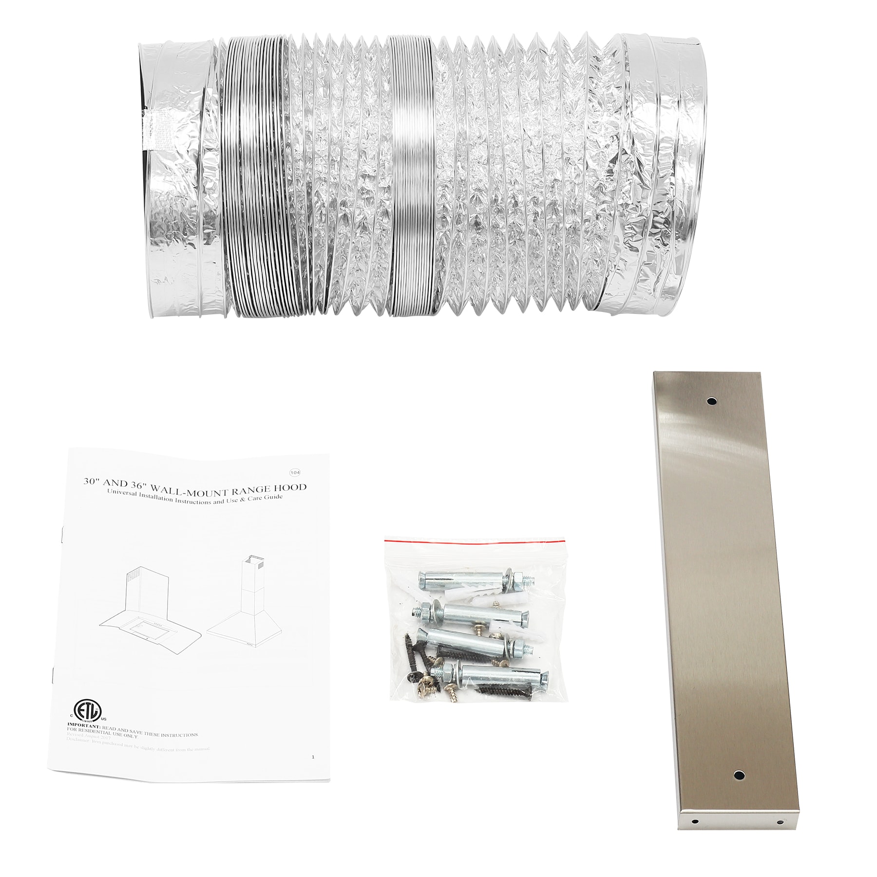 Bold: Contemporary Style and Powerful Performance Experience a modern and stylish touch in your kitchen with the AKDY RH0017CFL, a 30-inch Wall-Mount convertible range hood. Its unique design brings a contemporary feel that effortlessly enhances the aesthetic of your cooking space. With easy-to-use Touch Control, you can effortlessly adjust the fan speed to three different variants, ensuring optimal ventilation. At top speed, this range hood delivers a powerful 343 CFM, effectively keeping your kitchen fresh and free from unwanted odors and smells. With a noise level of less than 60 dB, it operates quietly, allowing you to enjoy a peaceful cooking experience. The 1.5-watt LED lights provide optimum illumination, brightening up your cooking area and ensuring clear visibility while you prepare your favorite dishes. Removable grease filters that trap oil particles and can be hand-washed. For ductless recirculating installation, you can opt for the separately sold carbon filter kit CF0015. The range hood also includes a decorative chimney that is compatible with ceiling heights ranging from 8 ft to 8-1/2 ft, adding a touch of elegance to your kitchen.