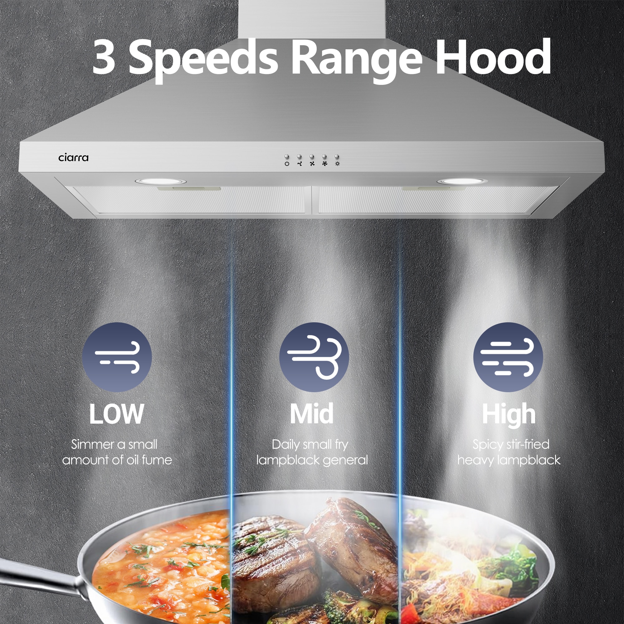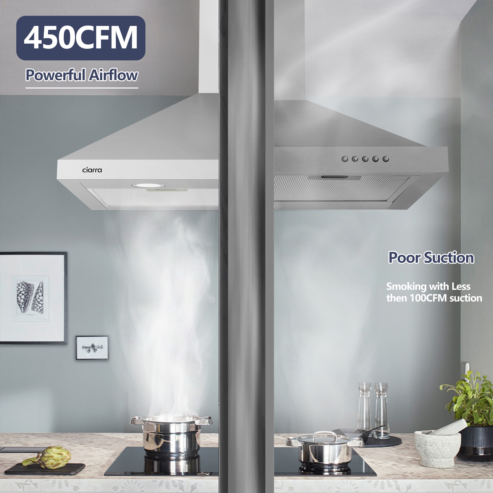 30 inch Ducted 450-CFM Stainless steel Wall-Mounted Range Hood