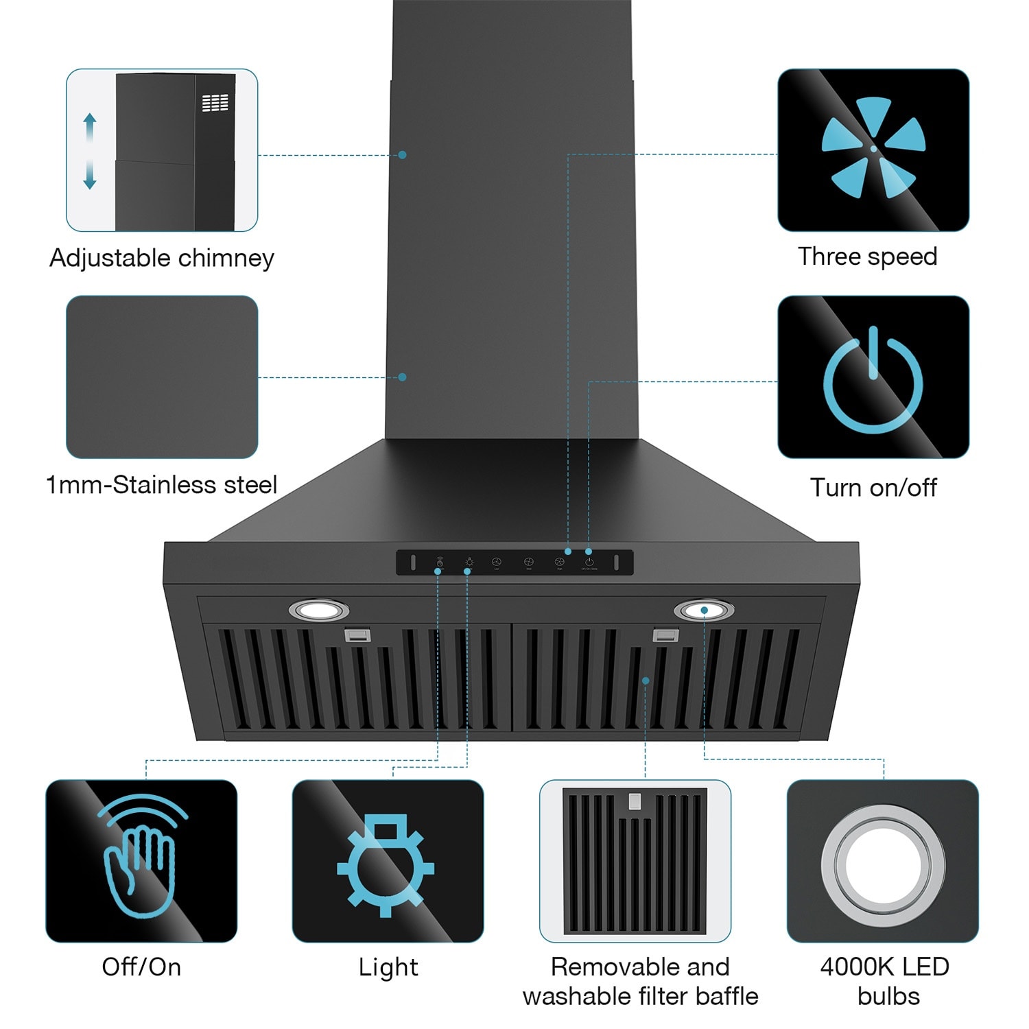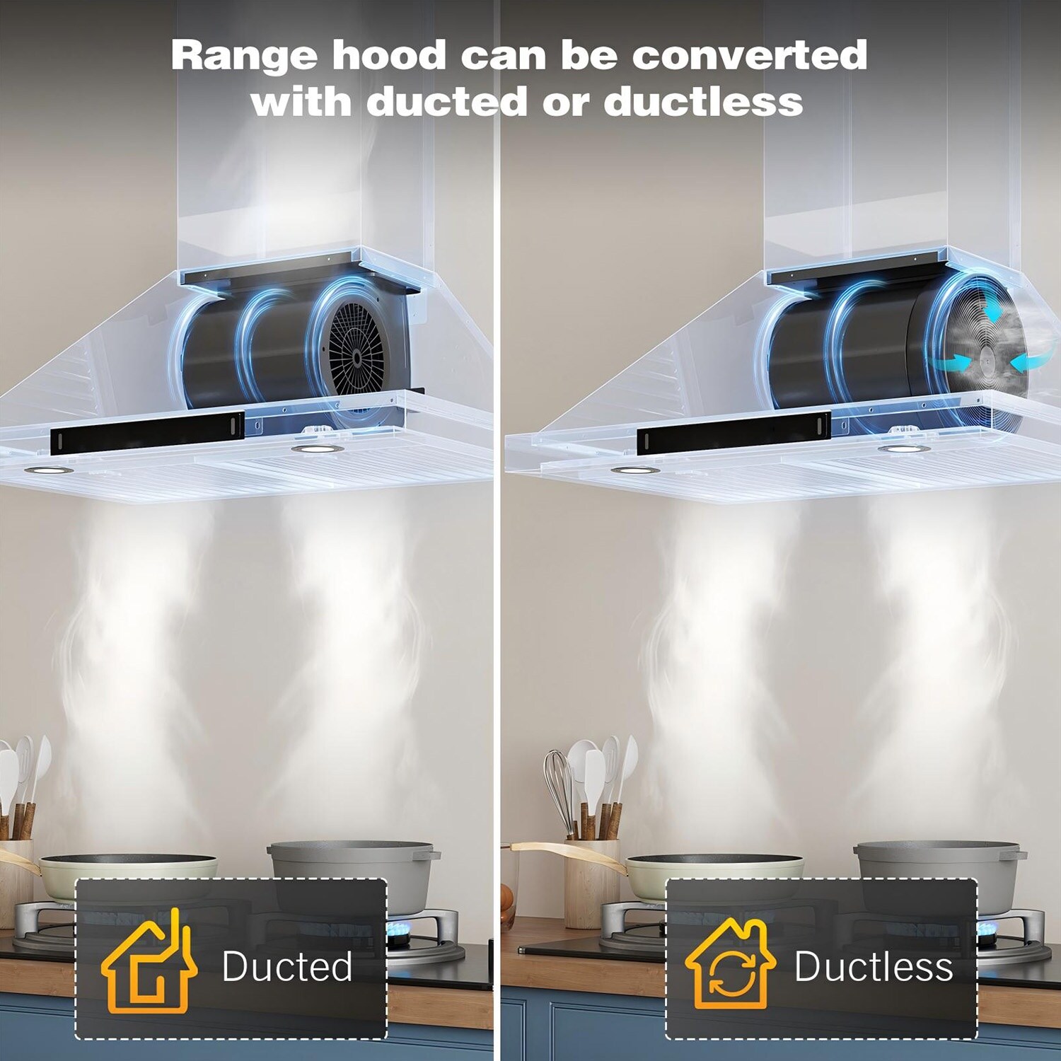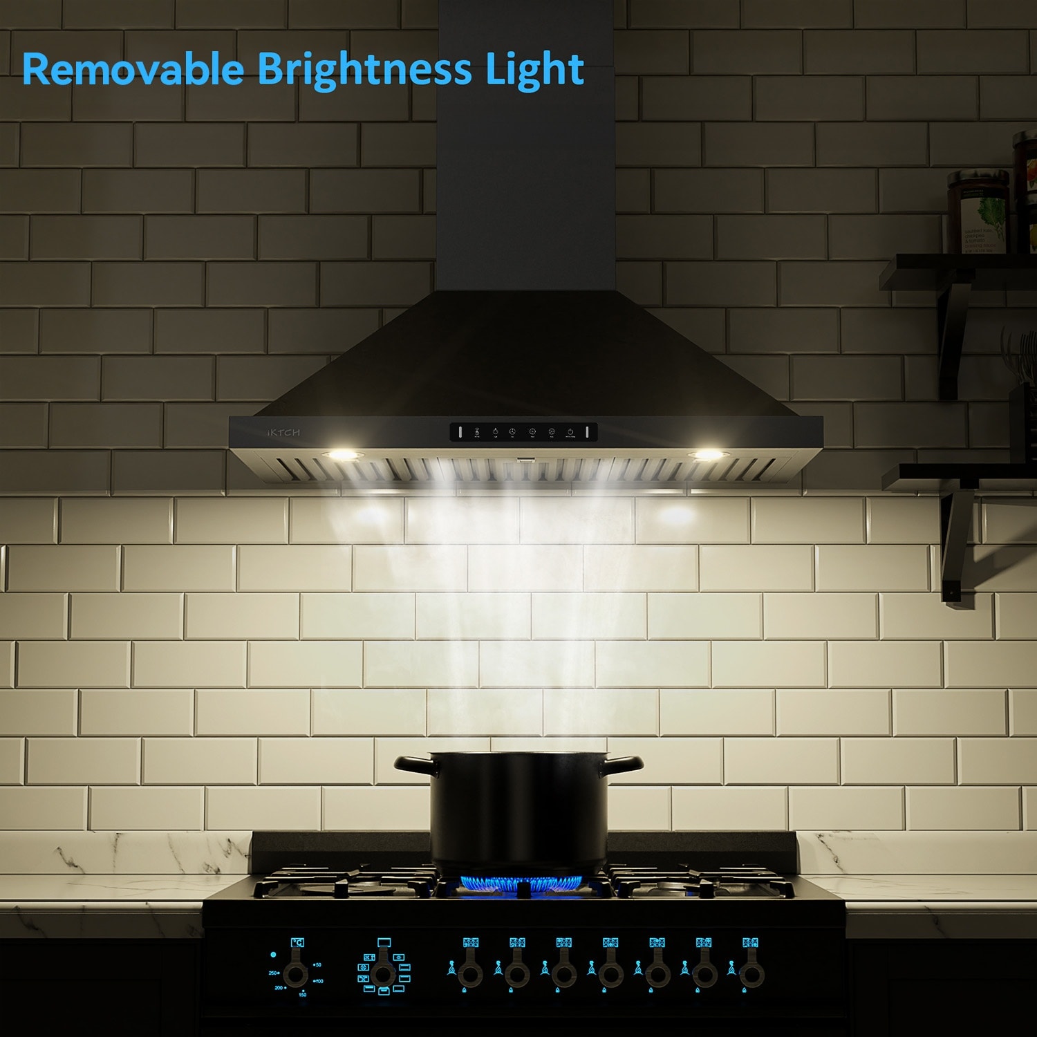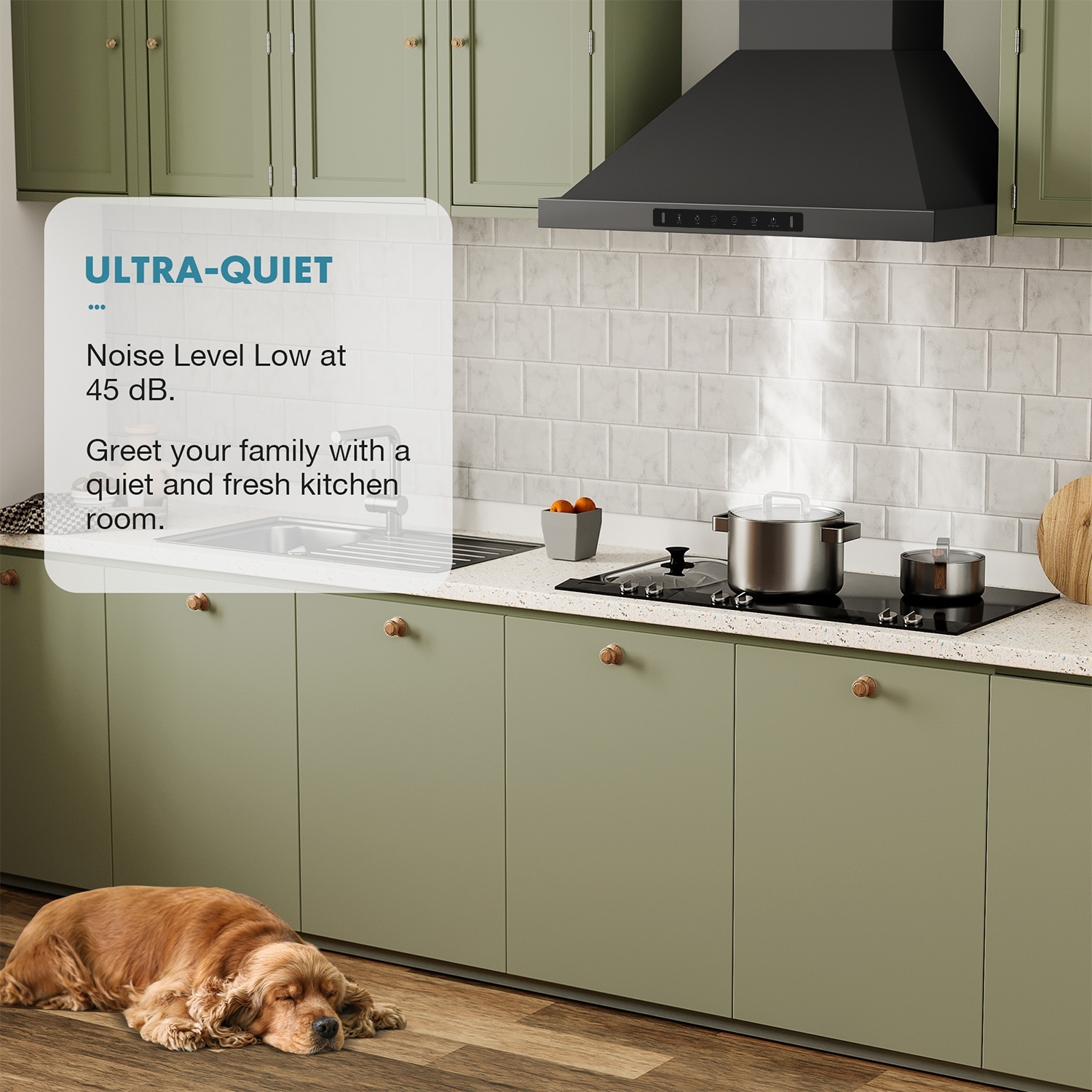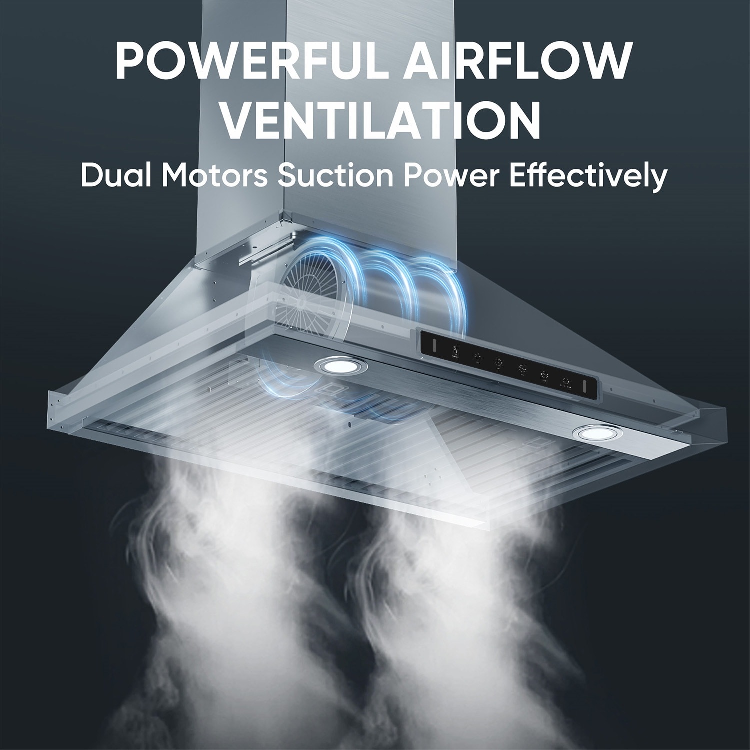 Upgrade your kitchen with this 30-inch wall-mounted range hood that combines power, precision, and peace of mind. Featuring a durable stainless steel body and ETL certification, it’s built for long-term performance and safety. With a 900 CFM high airflow, it handles everything from stir-fries to smoky grills, while staying whisper-quiet at just 50 dB—perfect for open kitchens and family moments. Enjoy touchless control for a cleaner, more hygienic experience, and cook confidently with standard GU10 LED lighting. The extra-large stainless steel filter panel delivers 30% more air intake, resists warping under heat, and is dishwasher-safe for easy cleanup. Plus, with delayed shut-off and a design that’s easy to install, your kitchen stays fresher, longer—with less hassle.