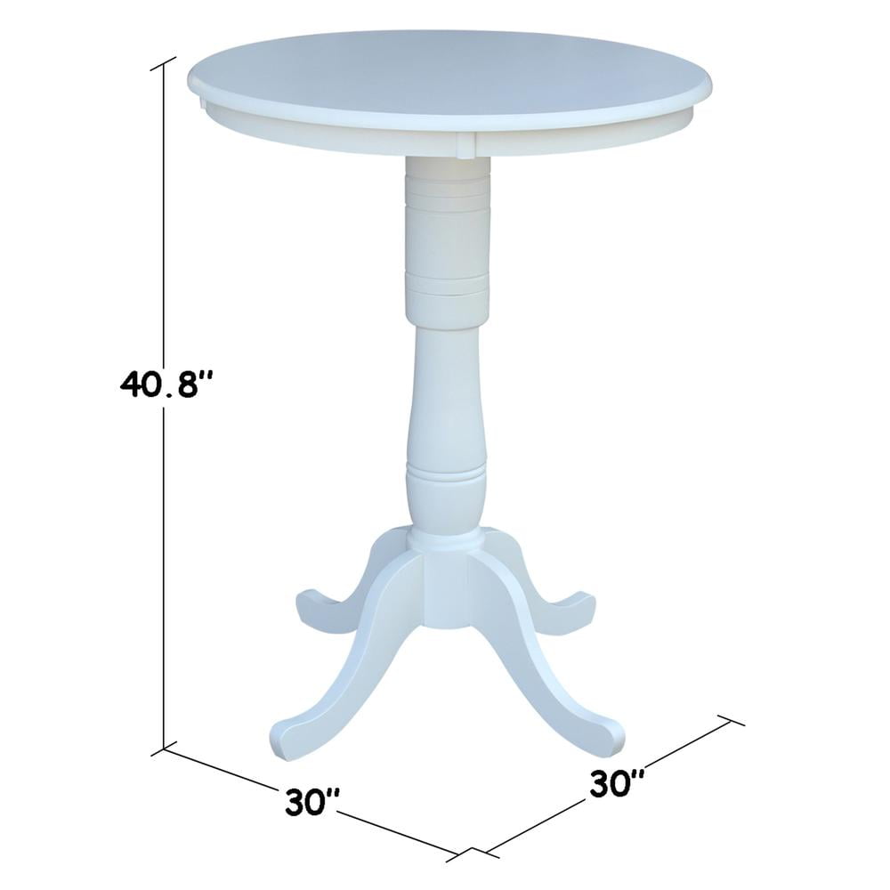 Table Dimensions: 30″W x 30″D x 40.9″H For use with bar height stools – 30″seat height Made from solid wood Ready to assemble