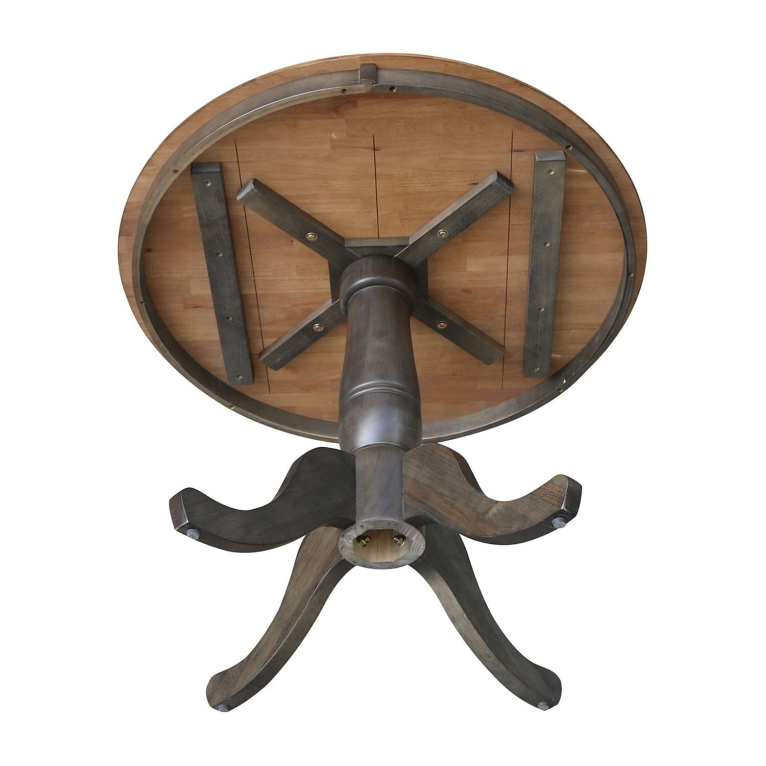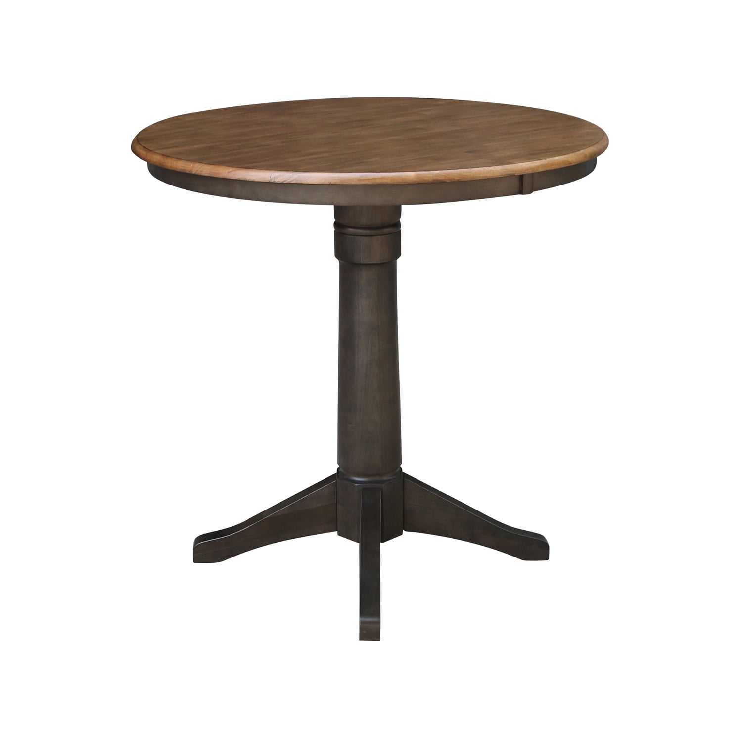 30″ Round Top Solid Wood Pedestal Table in Hickory/Washed Coal – Counter Height