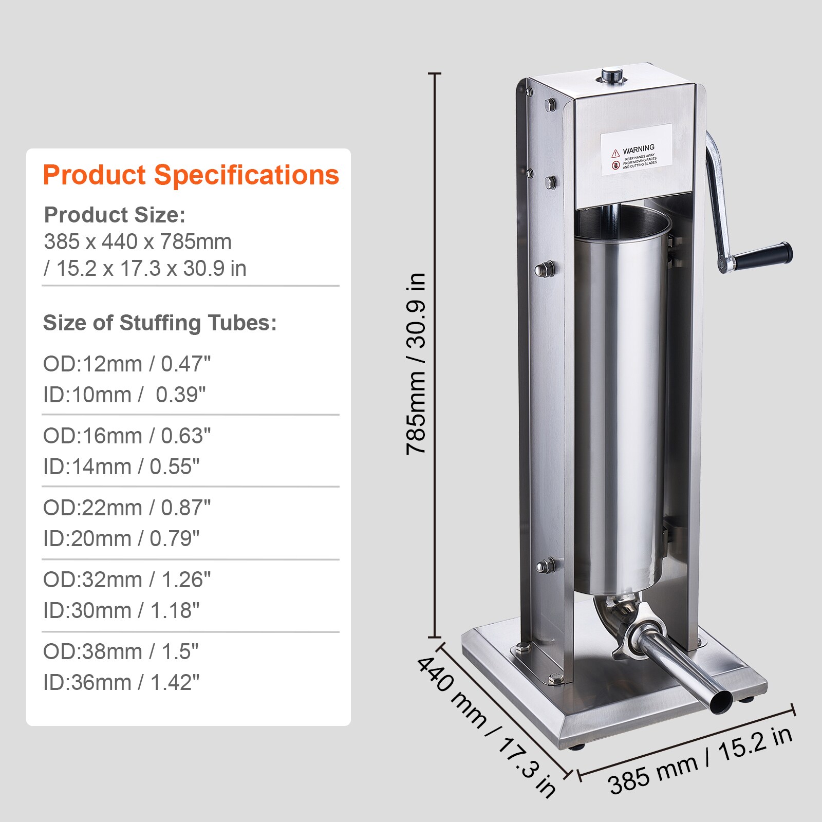 Commercial Sausage Stuffer Machine: This 7 L / 15 lbs sausage stuffer features an air release valve, producing sausages that are tightly packed with minimal air bubbles; During sausage stuffing, you can adjust the speed to fast or slow for efficient operation; It is ideal for commercial use in supermarkets, restaurants, and more;; [Package Content] 1 x Sausage Stuffer; 5 x Stuffing Tube; 1 x Handle; 1 x Instruction Manual