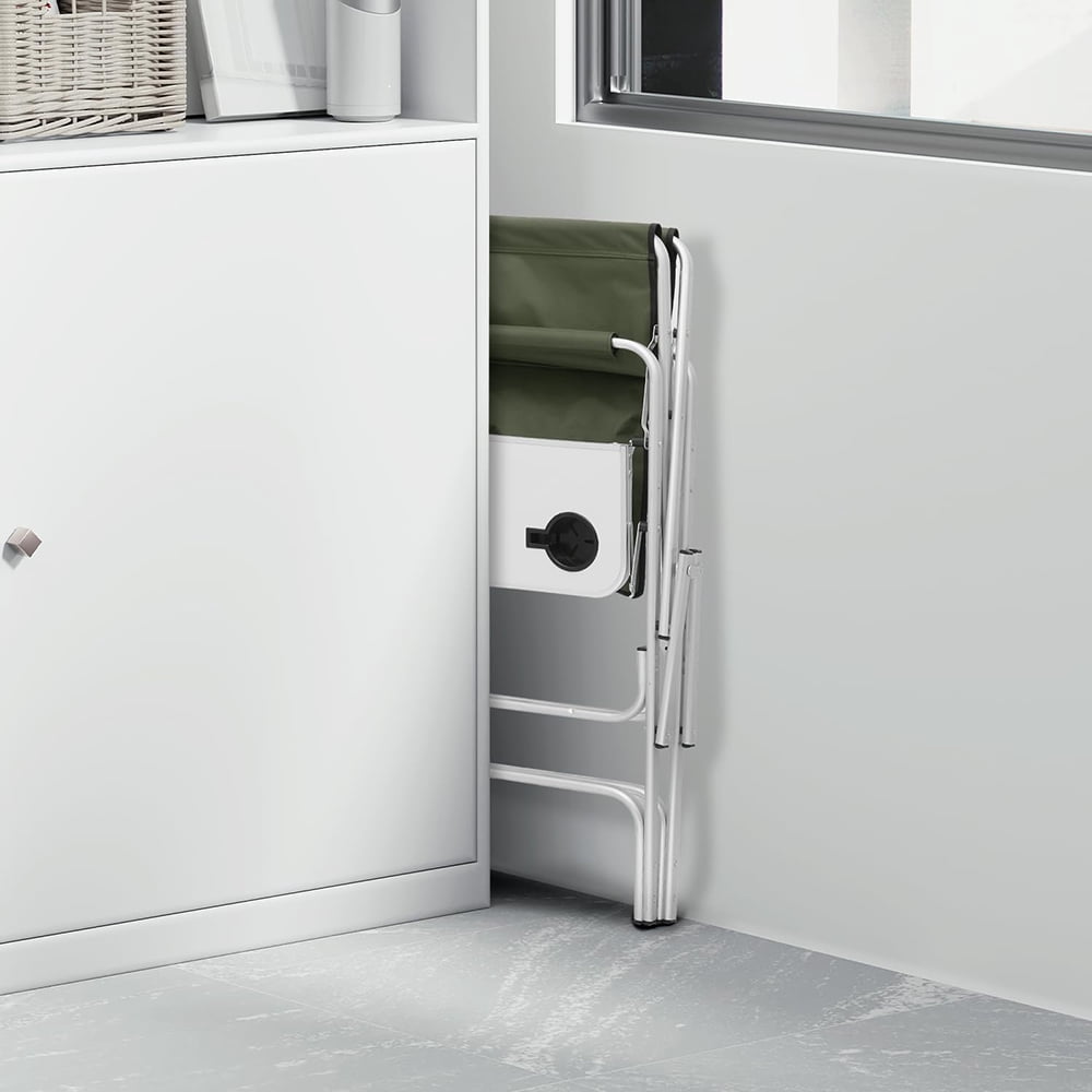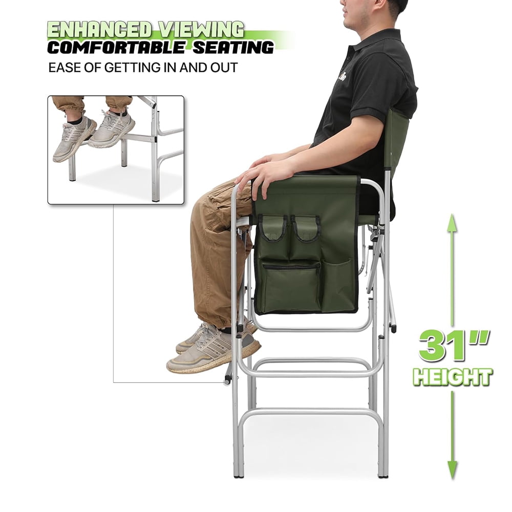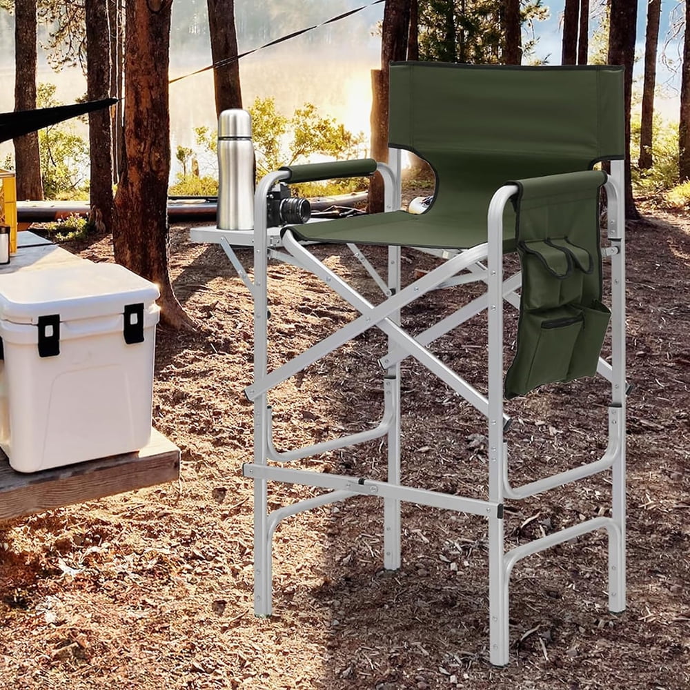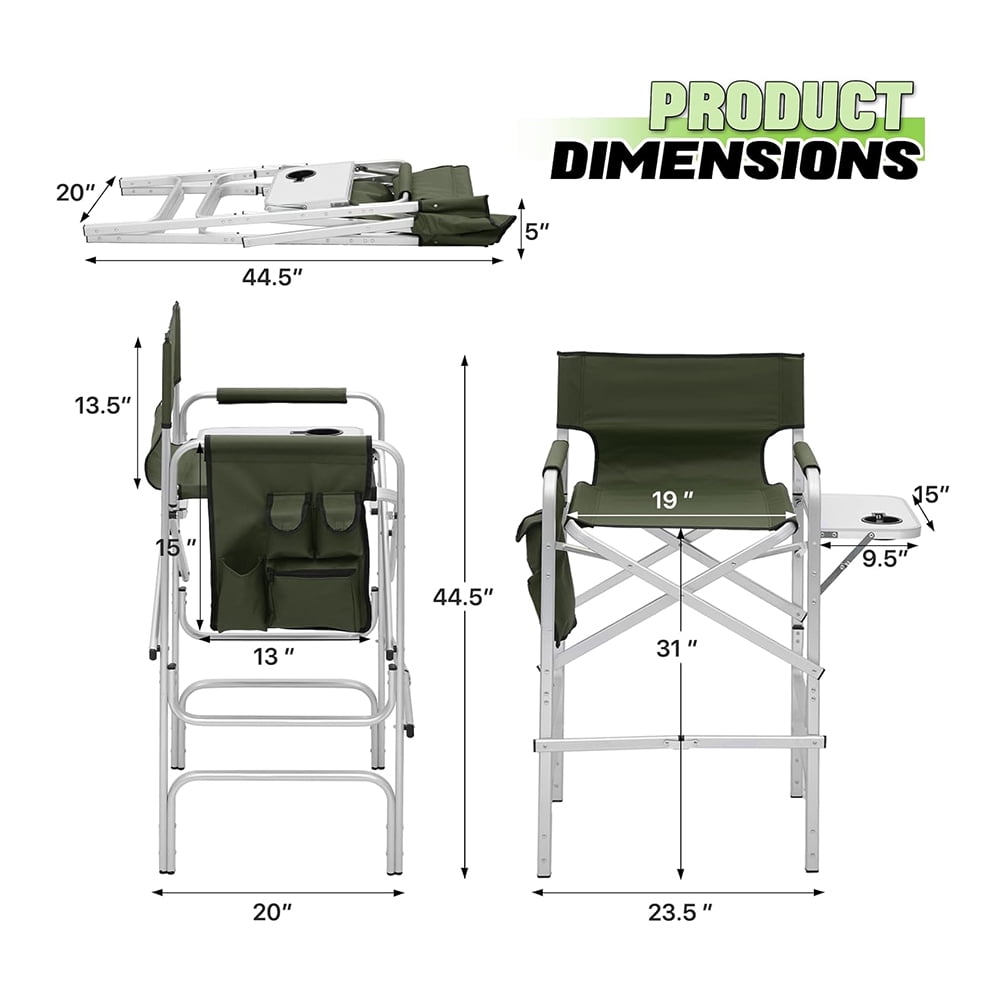 31-Inch Height Folding Camping Tall Directors Chair with Side Table Foldable Portable Makeup Artist Chair, Dark Green