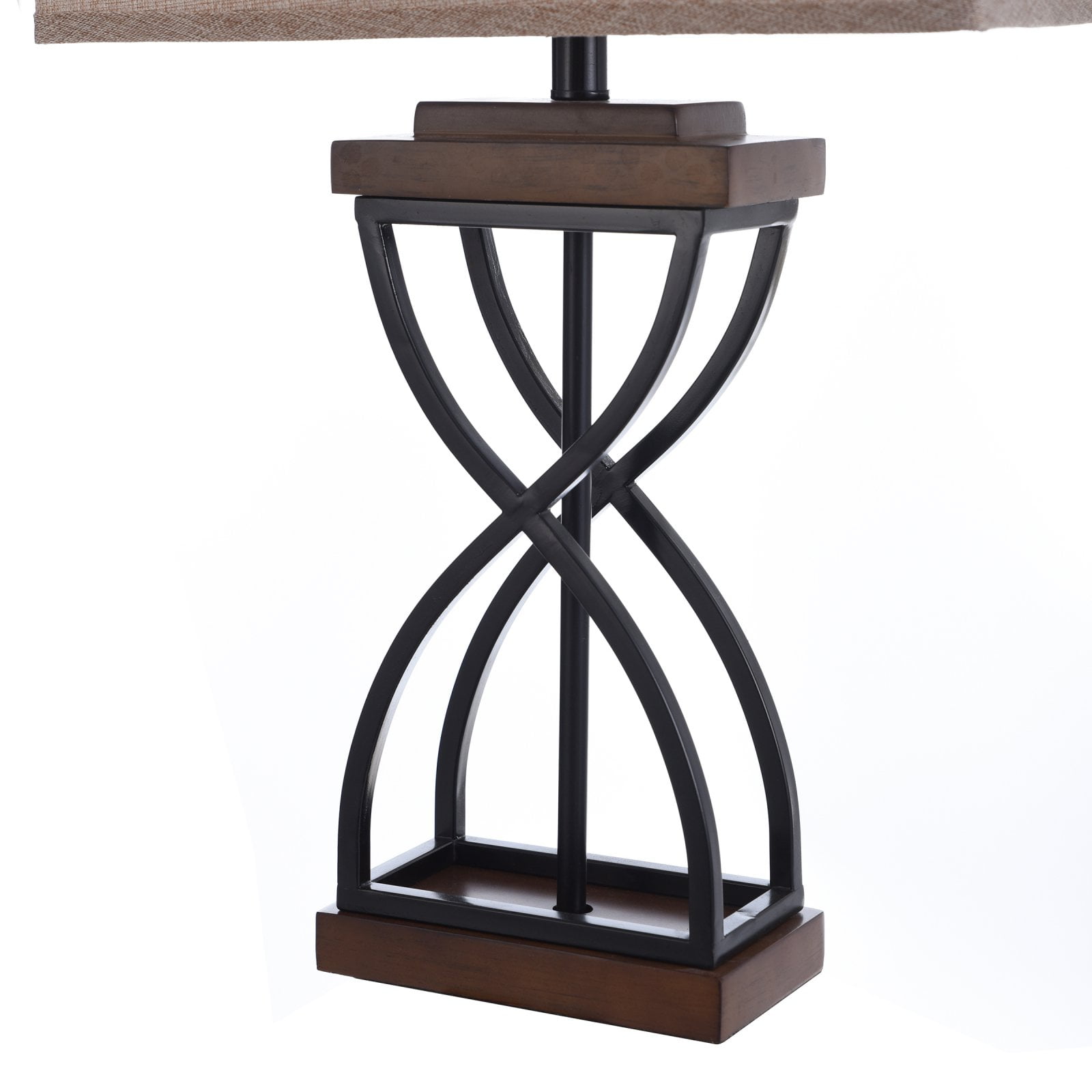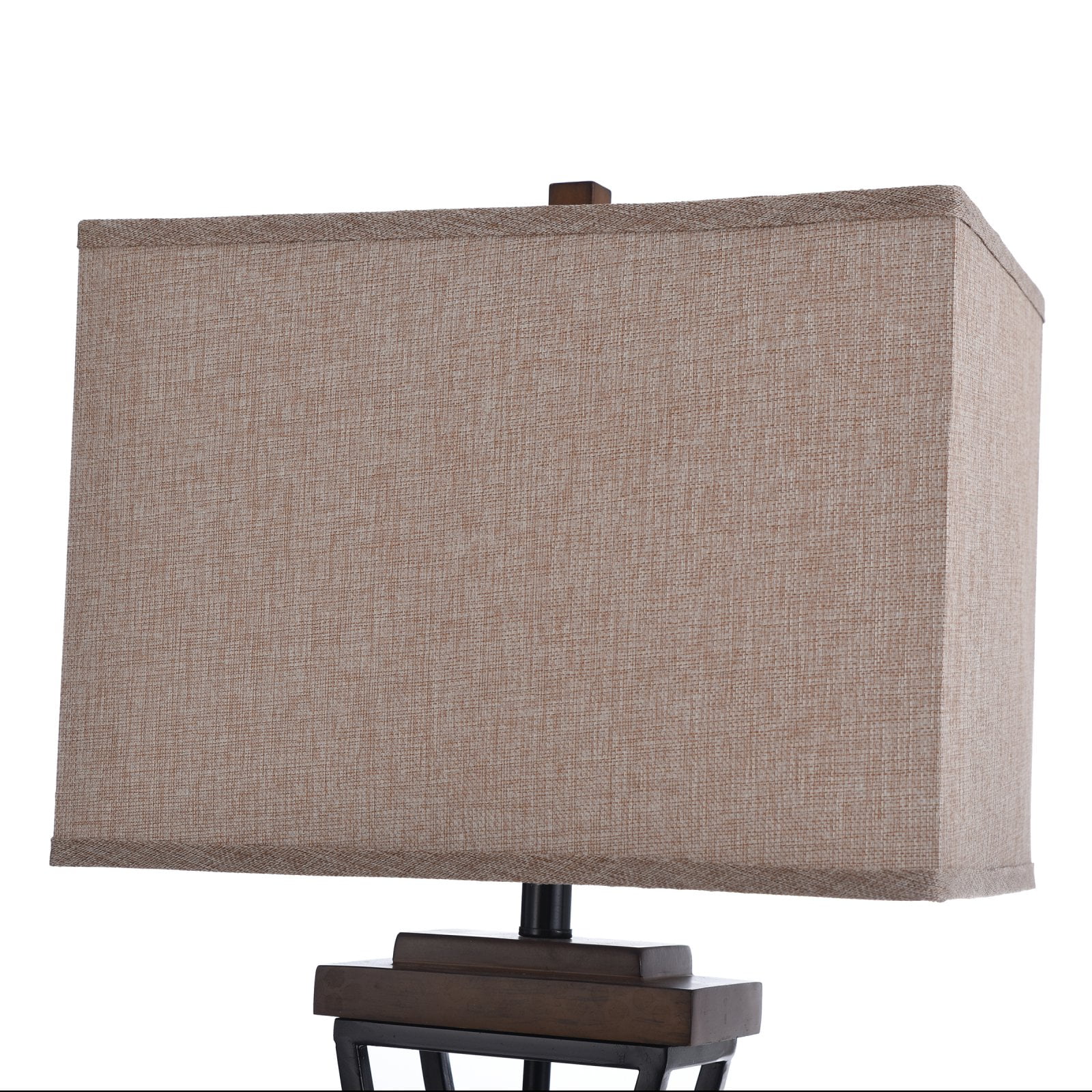 31″ Table Lamp – Black Wood Finish – Beige Hardback Fabric Shade