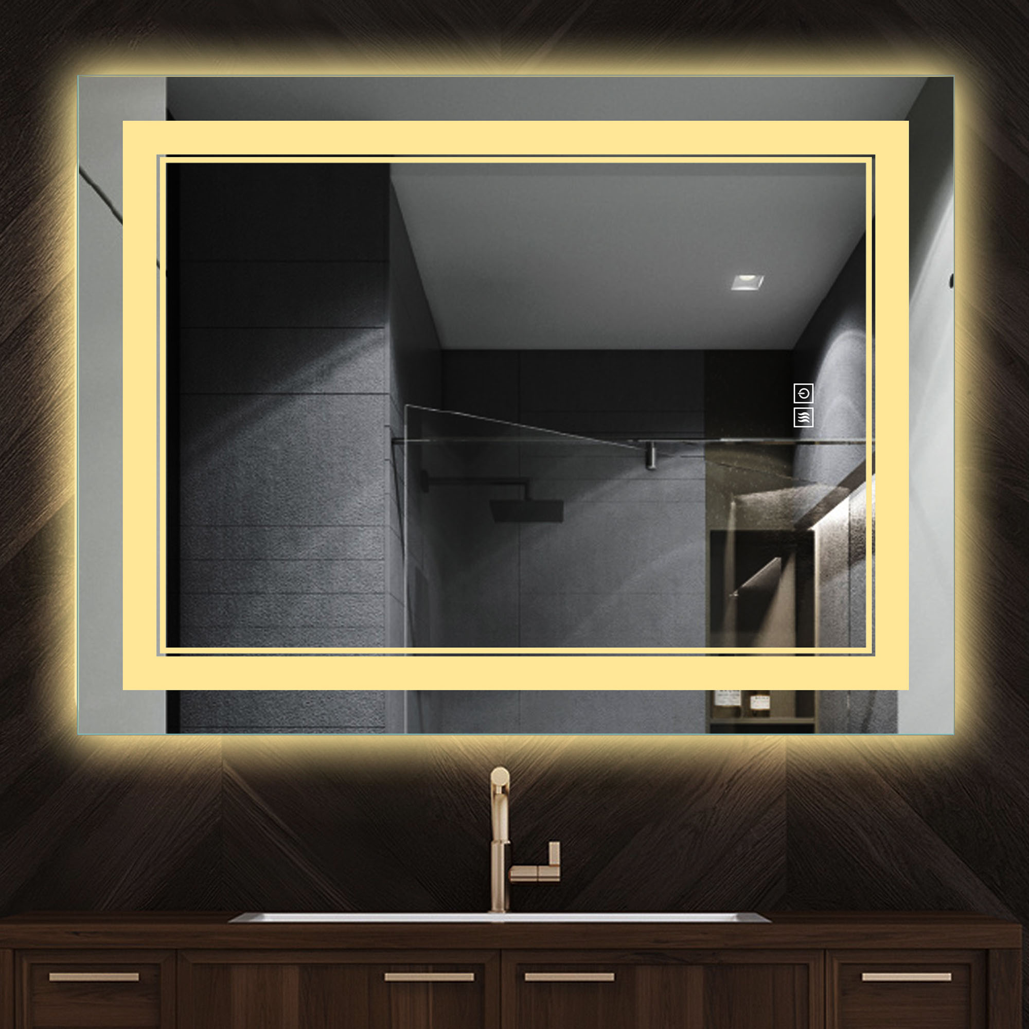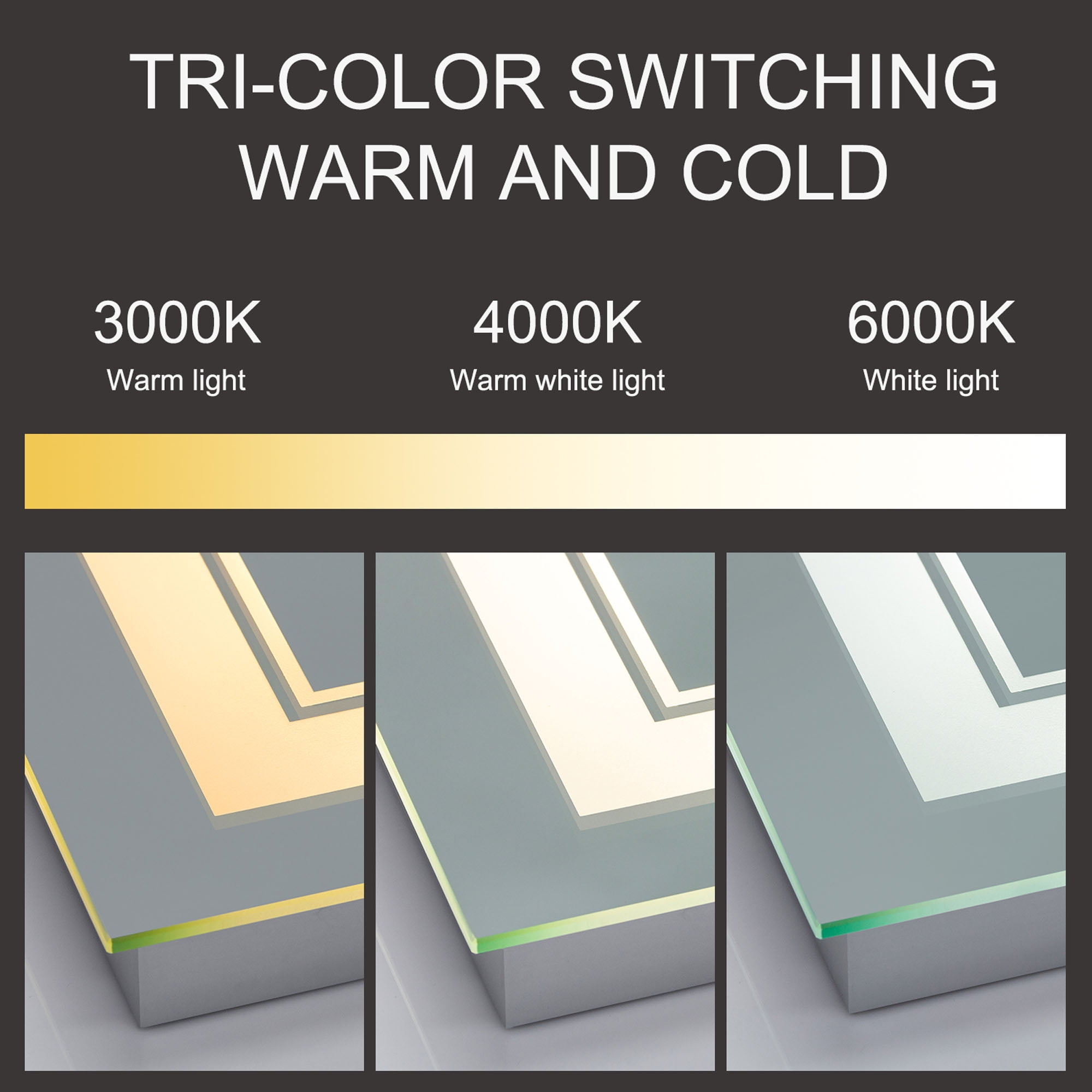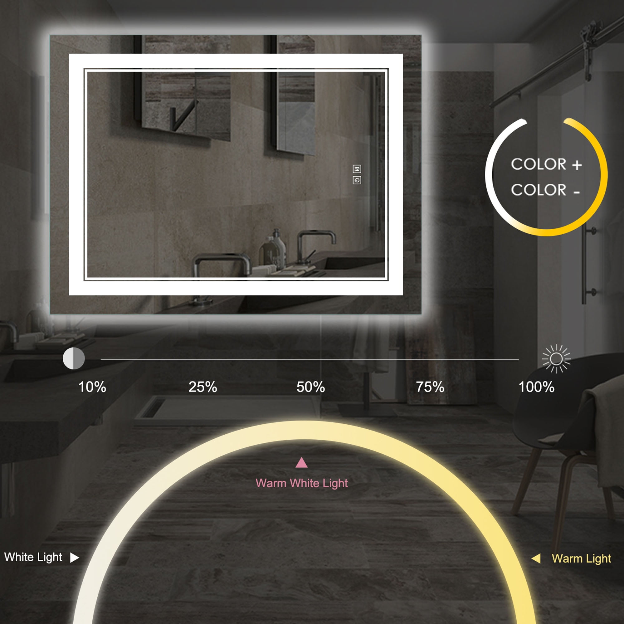 ELEGANT DESIGN: Our wall-mounted mirrors can be hung horizontally or a vertically as a wall mirror. We provide you with detailed easy to understand instructions to make your install a pain free process, installed in the bathroom can beautify the environment and add warmth! ADJUSTABLE LIGHT: The light brightness of the wall-mounted bathroom mirror is adjustable and you can adjust the color temperature between 3000K and 6500K. This mirror light has 3 kinds of lights: cool white light, warm light, warm yellowish light. Simply touch the button to change light color. You can control the mirror using the ON/OFF control. ANTI-FOG AND WATERPROOF: Our wall-mounted mirror has anti-fog function., When your bathroom has fog, you can turn on the anti-fogging function, anti-fogging function can keep a clear reflection image.IP44 waterproof rating provides environmentally friendly and safe lighting, no need to worry about using in wet environment. EASY TO INSTALL: The LED mirror uses a standard plug, it is easy to use it. The vanity mirror with lighting offers a clear view and lighting. This LED bathroom mirror comes with a standard plug, but you can cut off the plug to connect to the cord. LONG SRVICE LIFE: This bathroom mirror with led light has a life span of over 50,000 hours and is made of copper-free eco-friendly material.
