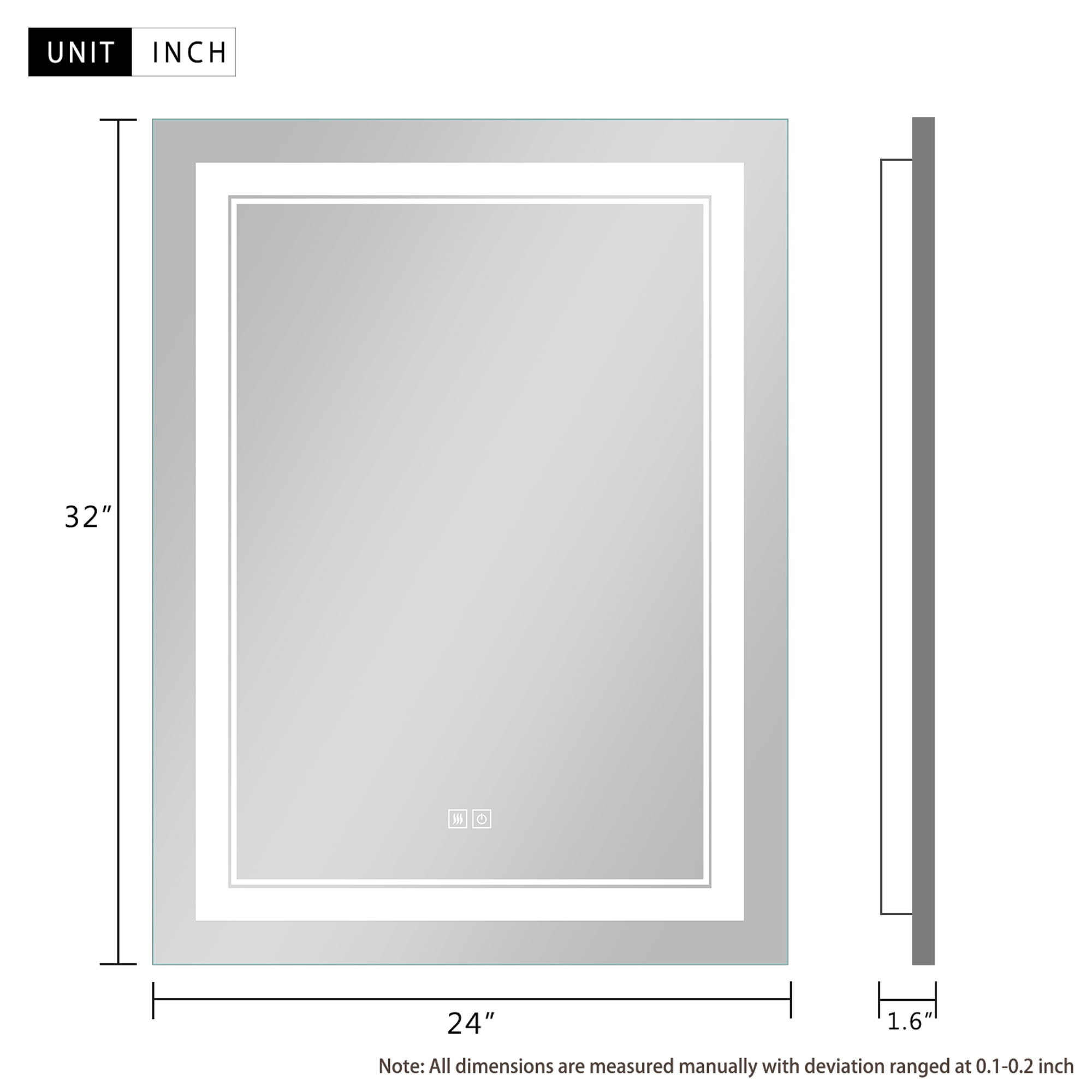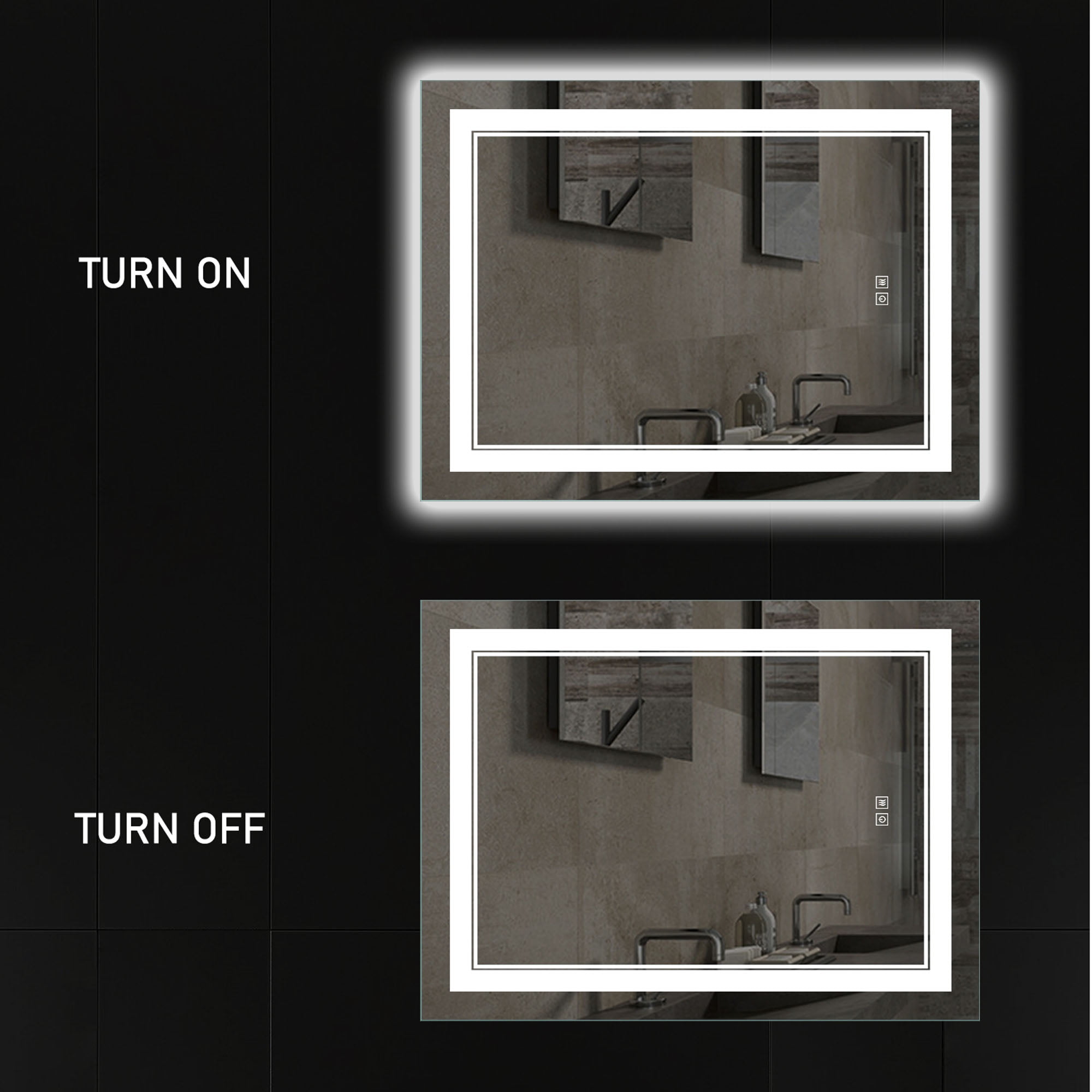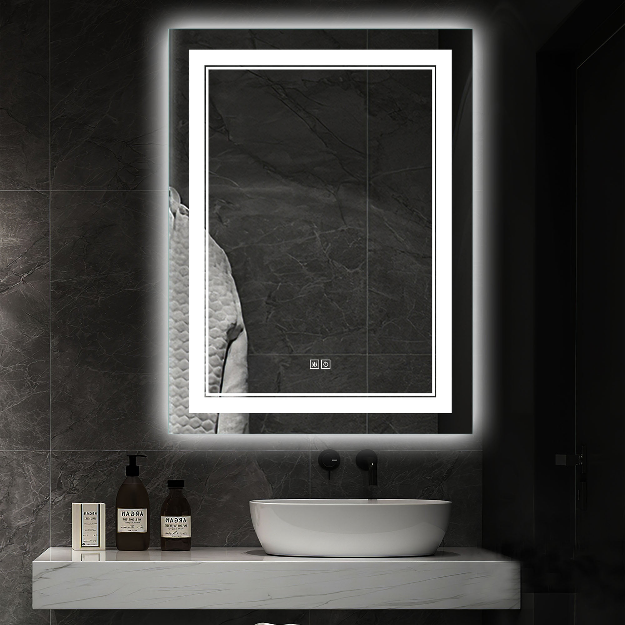 ELEGANT DESIGN: Our wall-mounted mirrors can be hung horizontally or a vertically as a wall mirror. We provide you with detailed easy to understand instructions to make your install a pain free process, installed in the bathroom can beautify the environment and add warmth! ADJUSTABLE LIGHT: The light brightness of the wall-mounted bathroom mirror is adjustable and you can adjust the color temperature between 3000K and 6500K. This mirror light has 3 kinds of lights: cool white light, warm light, warm yellowish light. Simply touch the button to change light color. You can control the mirror using the ON/OFF control. ANTI-FOG AND WATERPROOF: Our wall-mounted mirror has anti-fog function., When your bathroom has fog, you can turn on the anti-fogging function, anti-fogging function can keep a clear reflection image.IP44 waterproof rating provides environmentally friendly and safe lighting, no need to worry about using in wet environment. EASY TO INSTALL: The LED mirror uses a standard plug, it is easy to use it. The vanity mirror with lighting offers a clear view and lighting. This LED bathroom mirror comes with a standard plug, but you can cut off the plug to connect to the cord. LONG SRVICE LIFE: This bathroom mirror with led light has a life span of over 50,000 hours and is made of copper-free eco-friendly material.